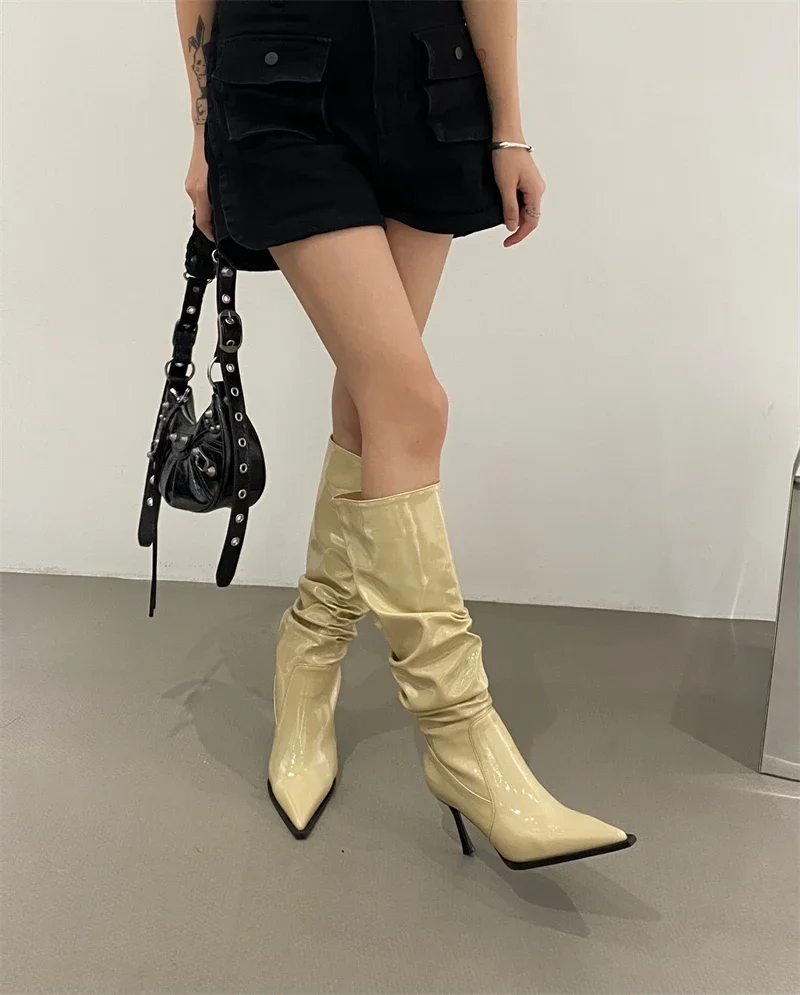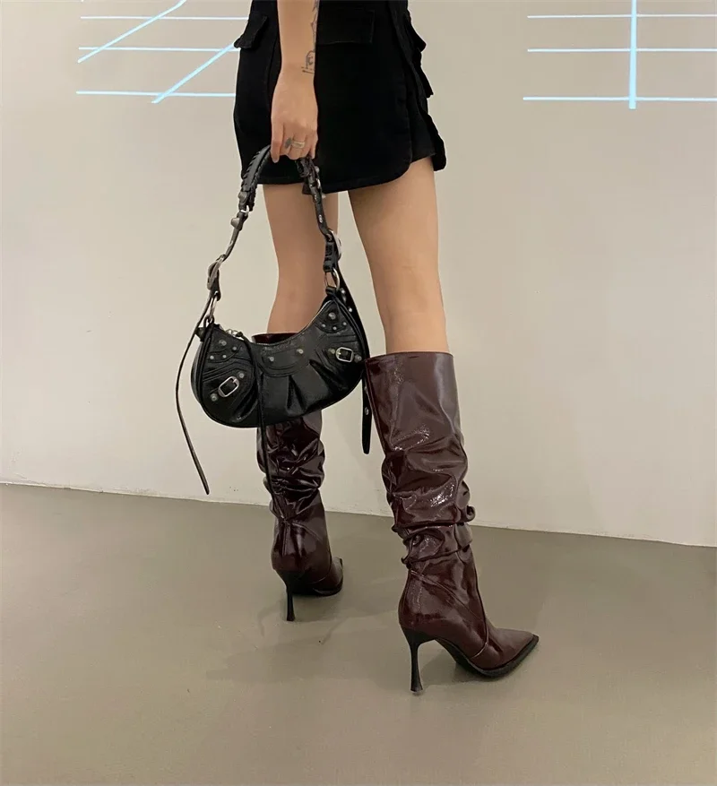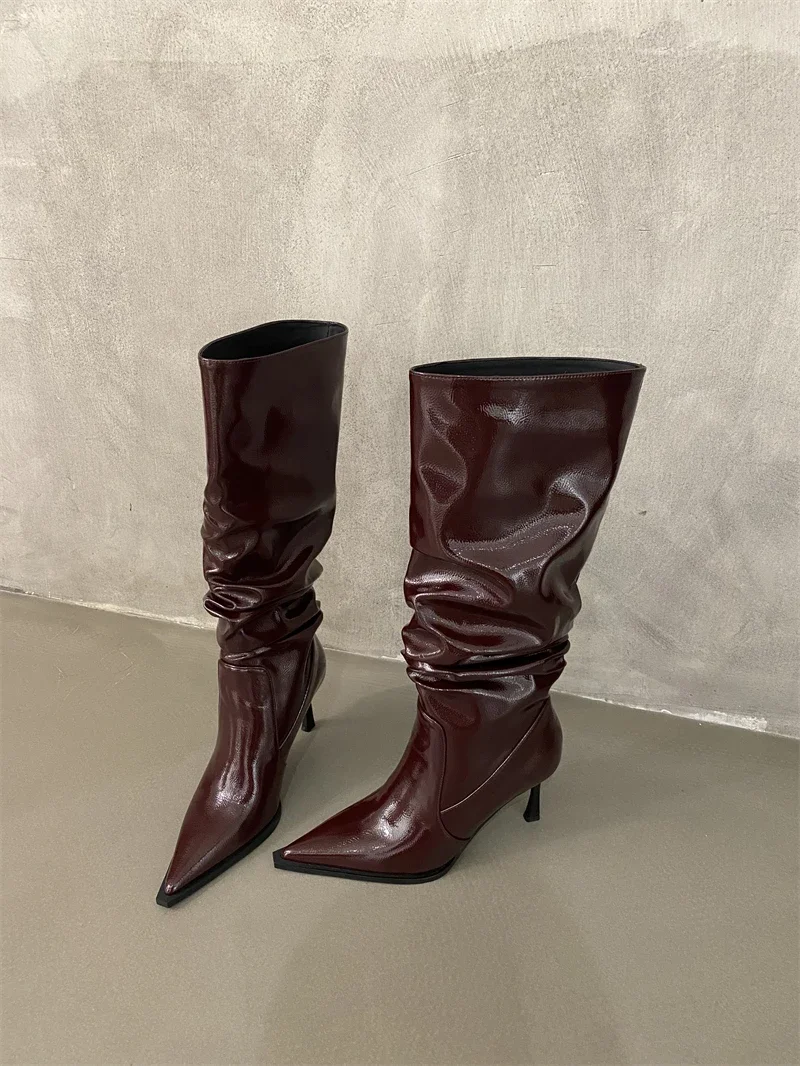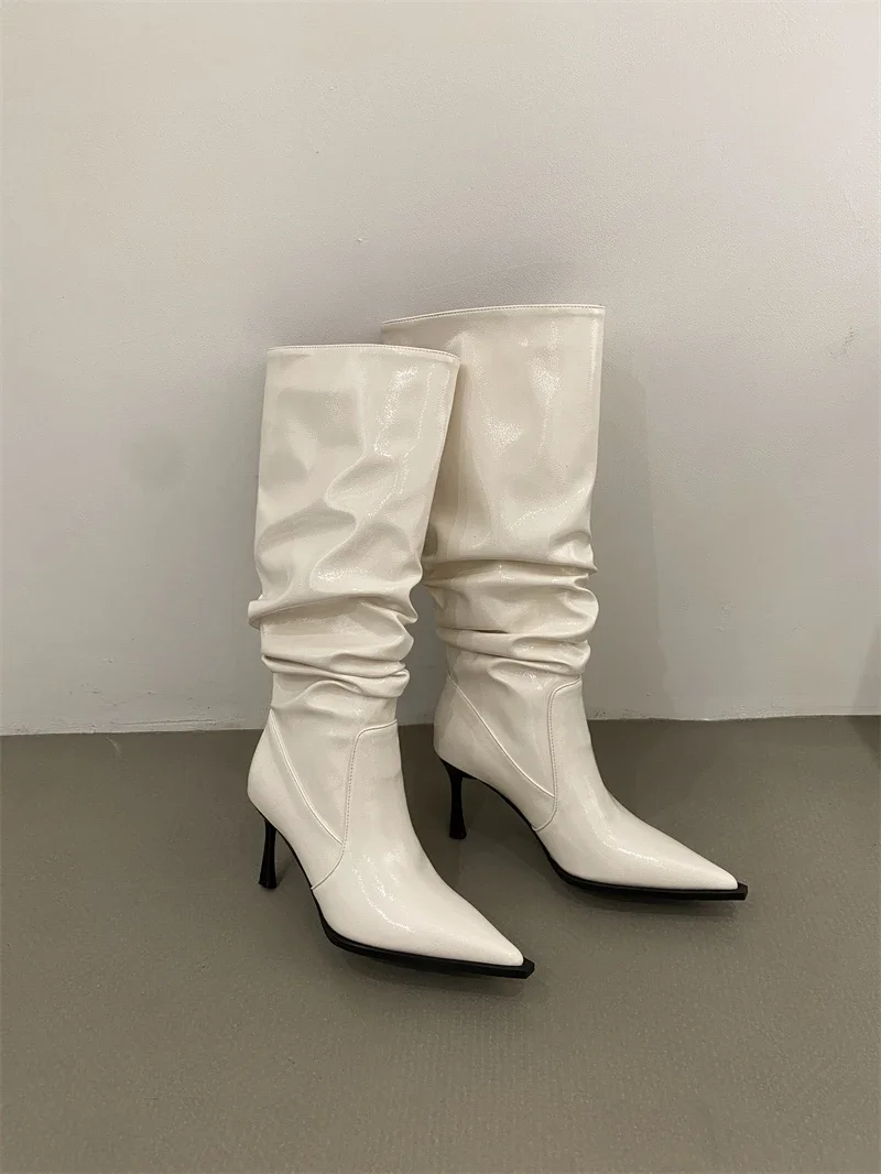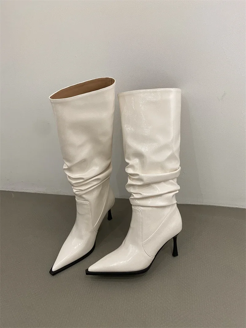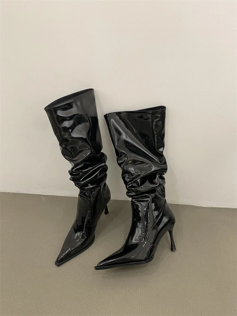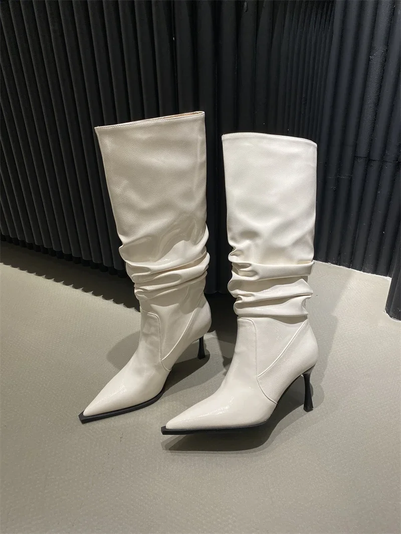 Botas altas de cuero para Mujer, zapatos sexis de tacón alto con punta puntiaguda, Botas Chelsea de fiesta a la moda para Mujer, Botas de nieve nuevas para Mujer