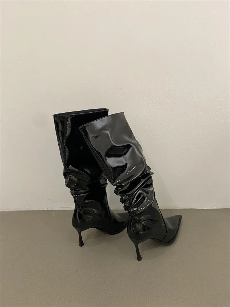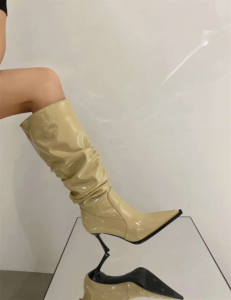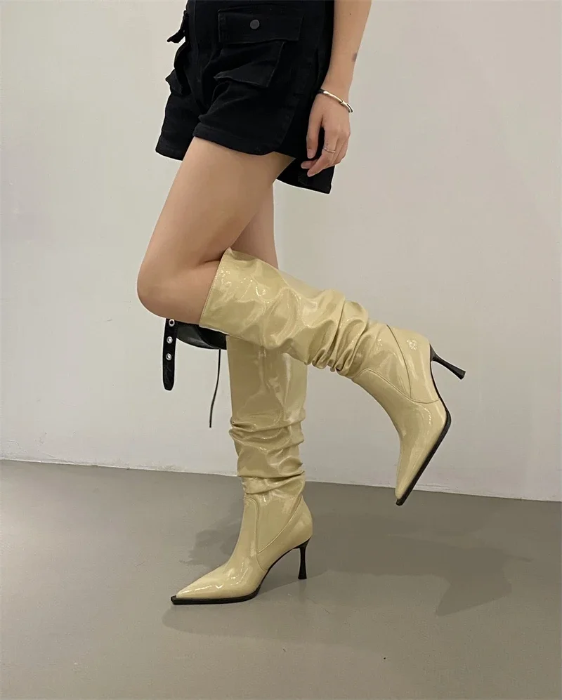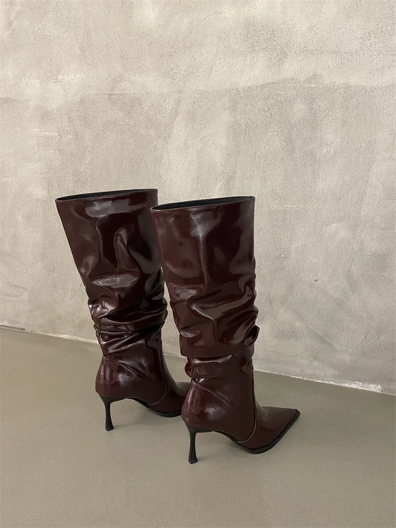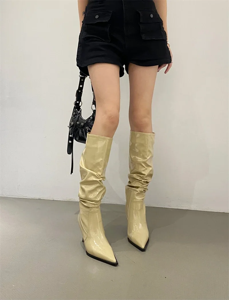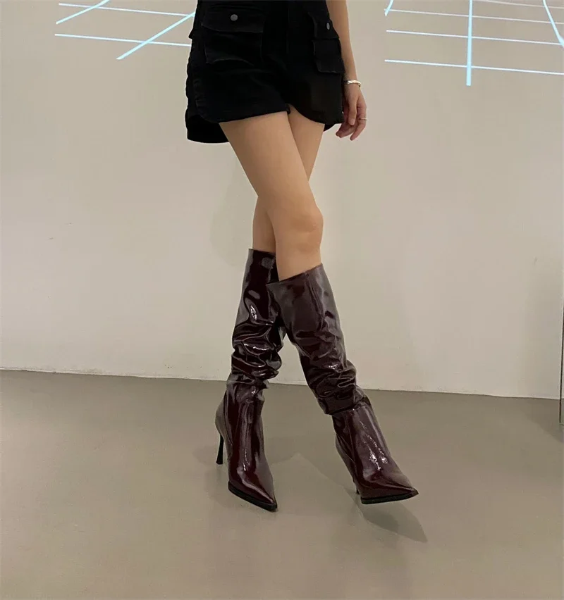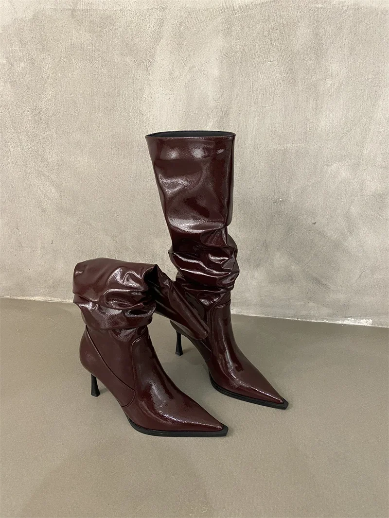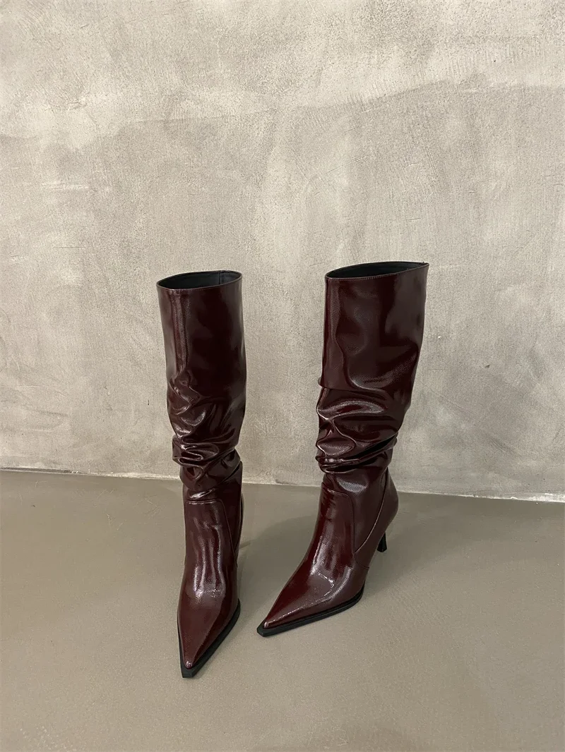 Botas altas de cuero para Mujer, zapatos sexis de tacón alto con punta puntiaguda, Botas Chelsea de fiesta a la moda para Mujer, Botas de nieve nuevas para Mujer