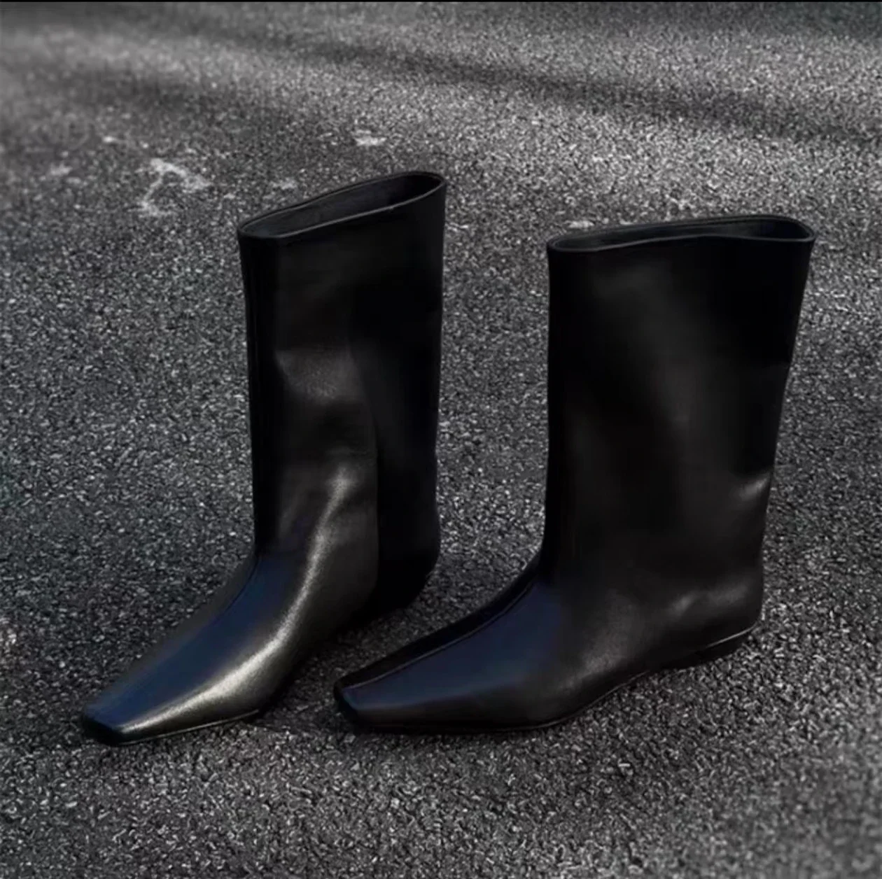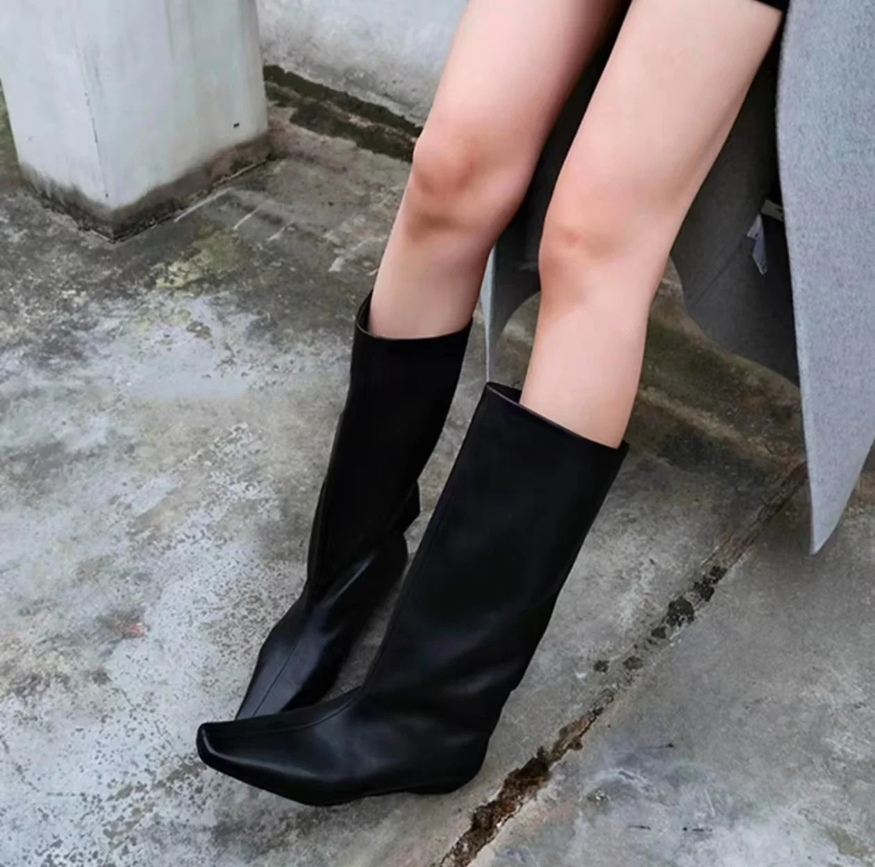 Botas altas De diseñador para Mujer, zapatos planos hasta la rodilla con punta estrecha, botas Chelsea De otoño 2021, nueva tendencia gótica para caminar, Zapatillas para Mujer