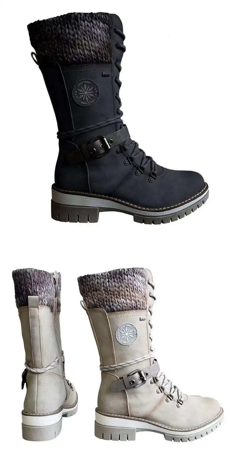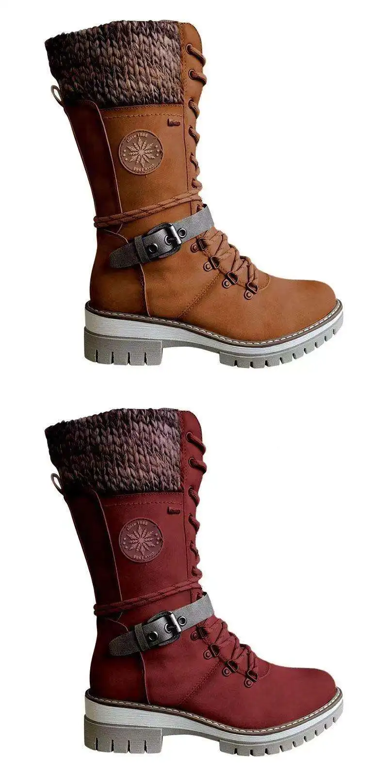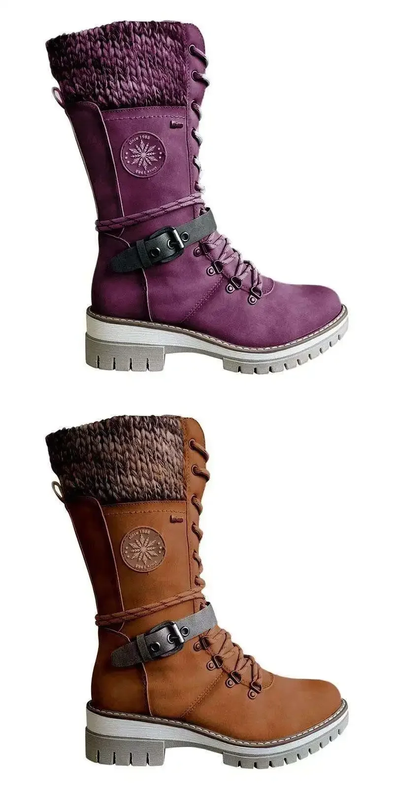 Botas altas para mujer Botas largas de lana con cinturón y nudo Otoño Invierno Botas de tubo ortopédicas de gran tamaño