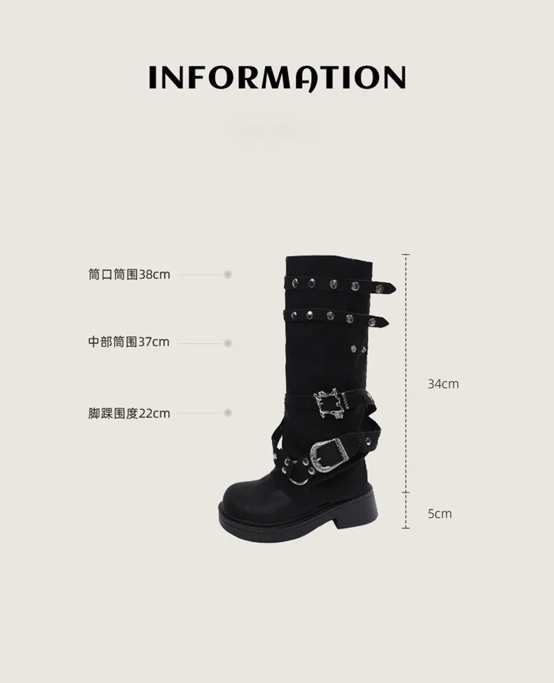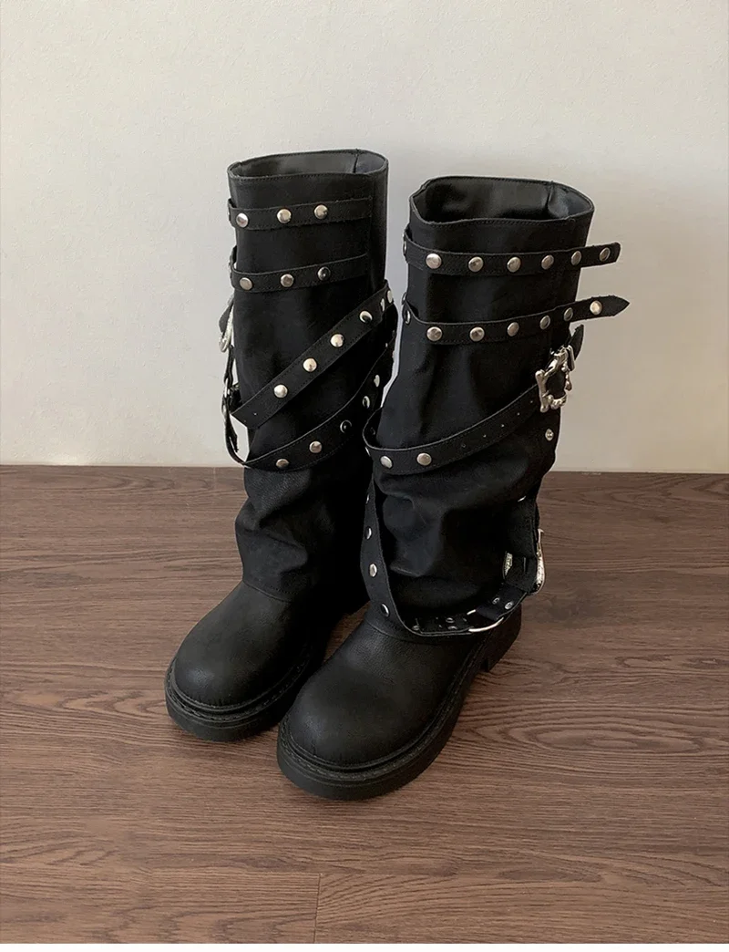 Botas altas con remaches de diseñador para mujer, zapatos de estilo Punk a la moda, botines largos de caballero de tacón grueso para otoño e invierno