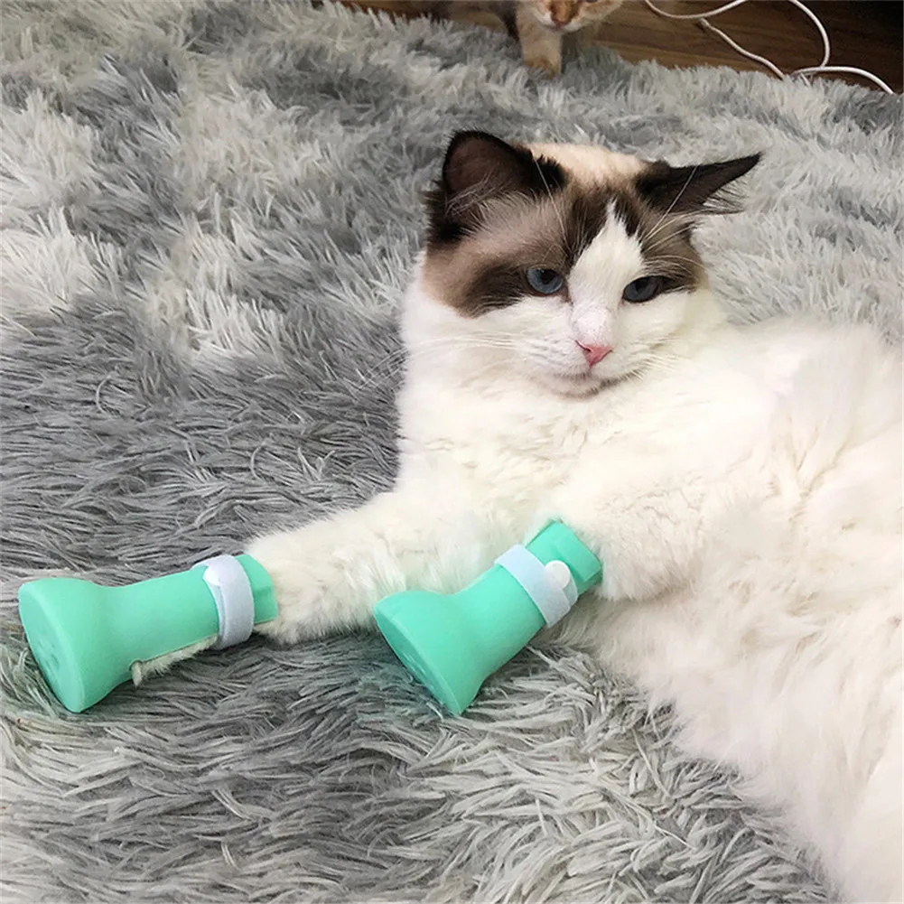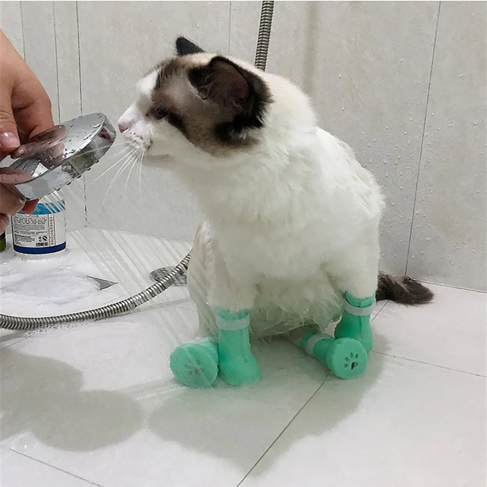 Botas Antiarañazos para Gato, Protector DE LA Cubierta del Pie, Zapatos Suaves de Silicona, Ajustable, Lavado de Baño