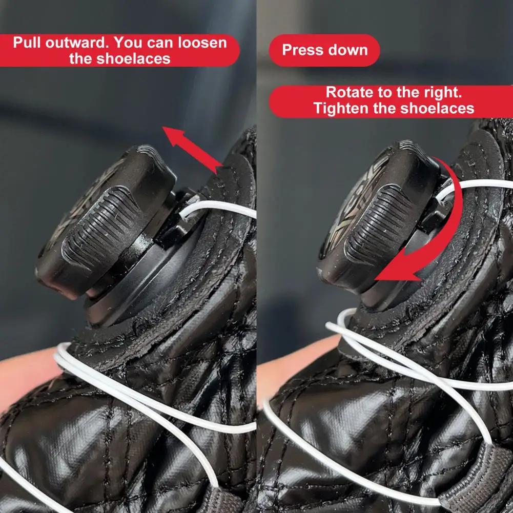 Perilla ajustable para un ajuste seguro: cada bota para perros cuenta con una innovadora perilla ajustable que aprieta o afloja los cordones elásticos, asegurando un ajuste cómodo y seguro adaptado al tamaño de la pata de su mascota.Este mecanismo evita resbalones durante el juego activo o los paseos, proporcionando un agarre suave personalizado para perros grandes, medianos y pequeños por igual.