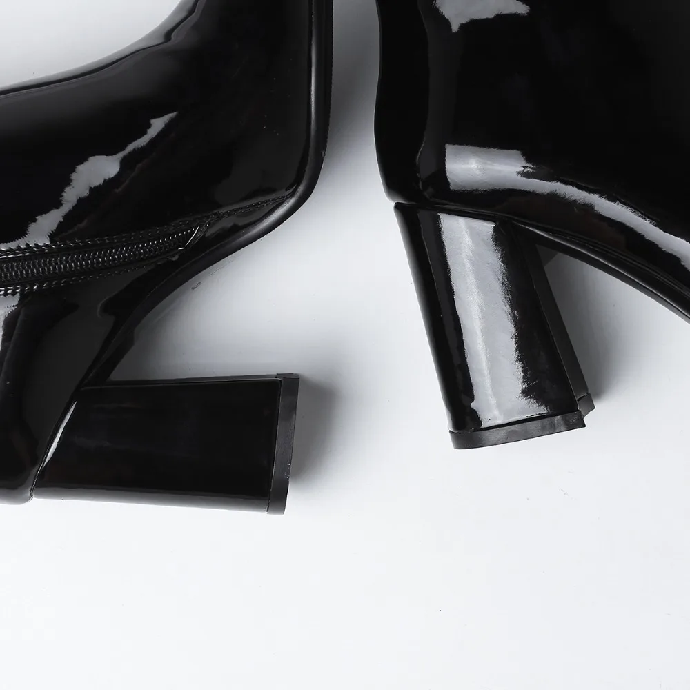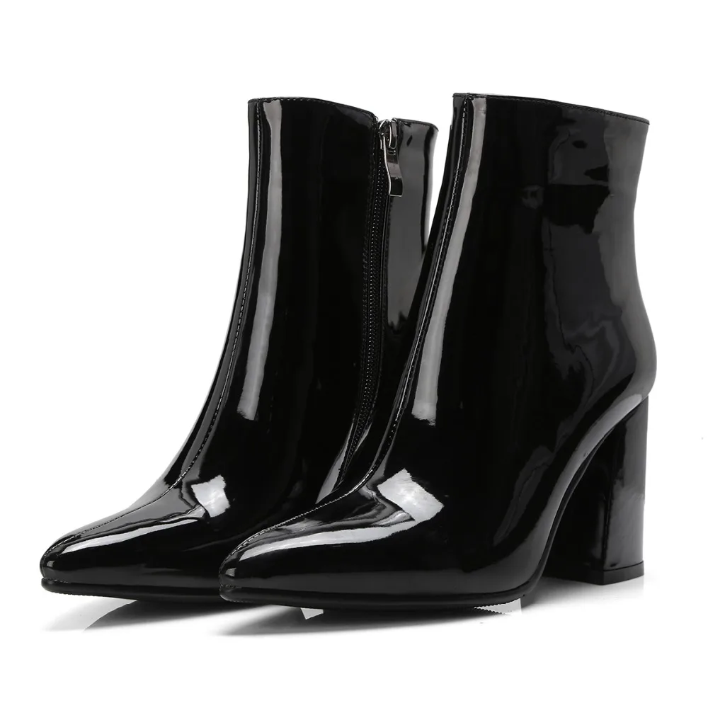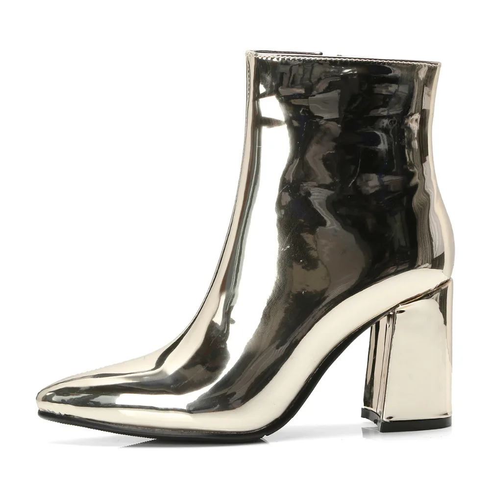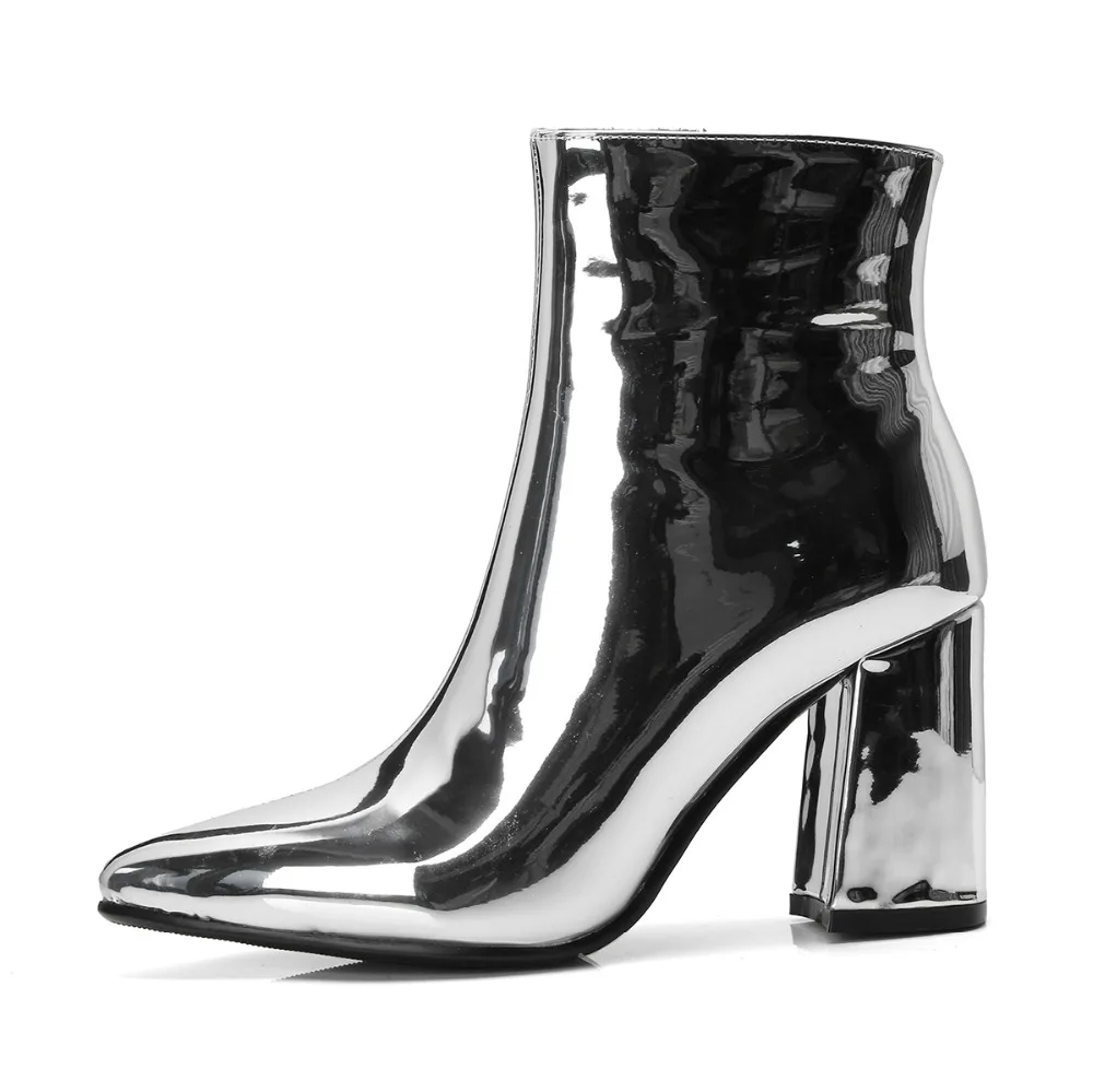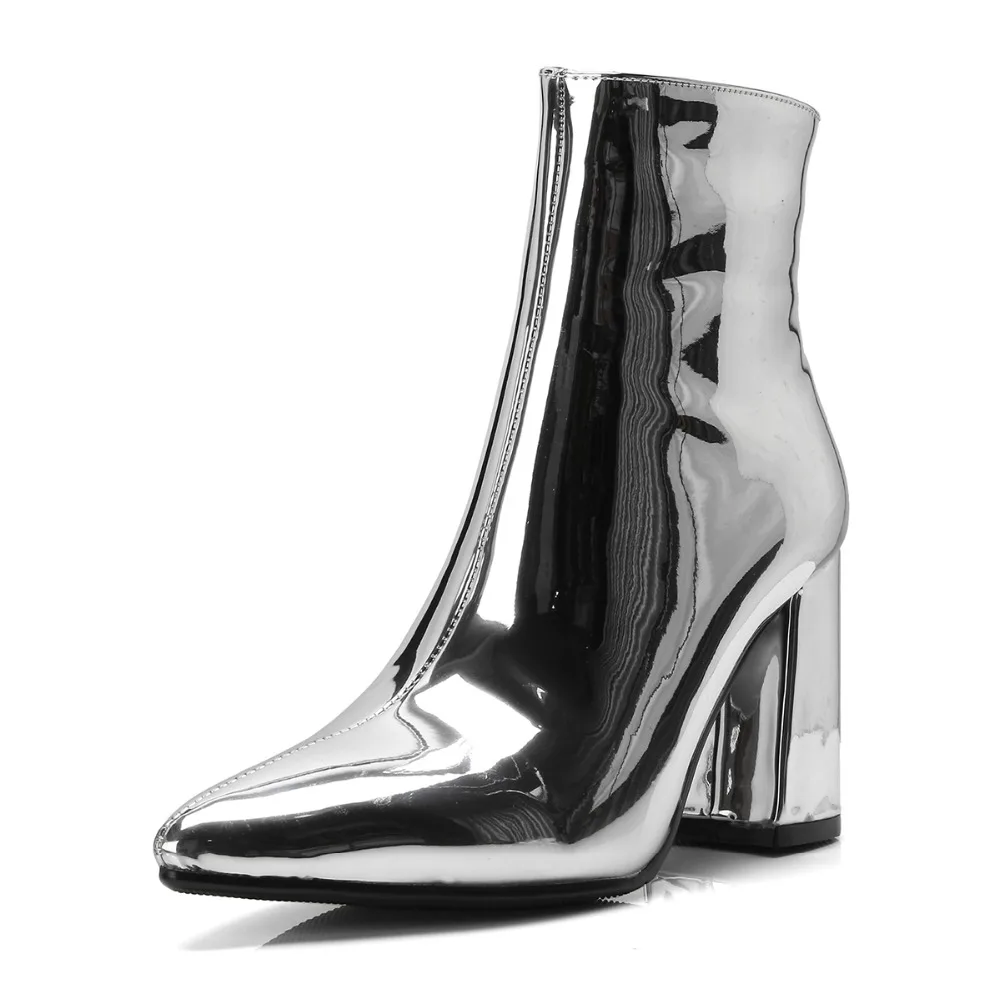 Botas Chelsea de tacón bajo con cremallera para mujer, botines de punta redonda y Tacón cuadrado con lentejuelas, novedad de invierno, 2019