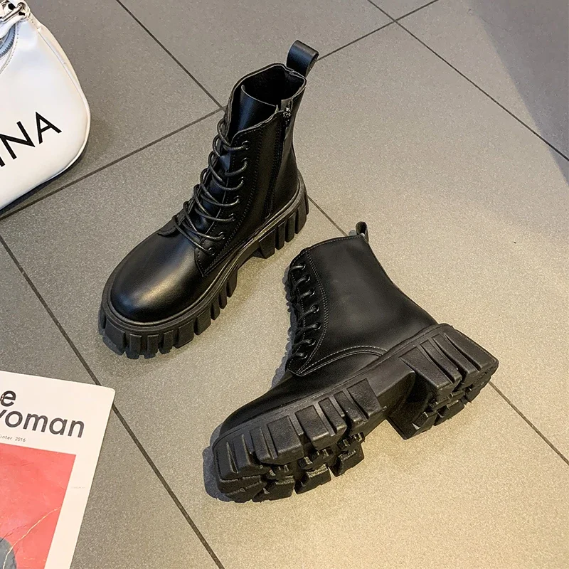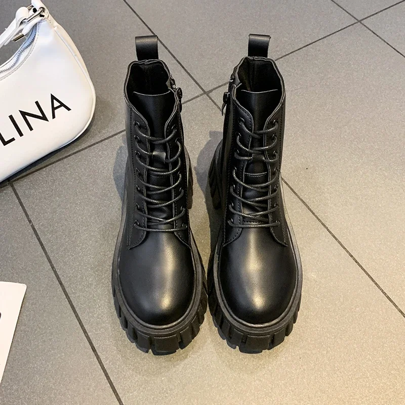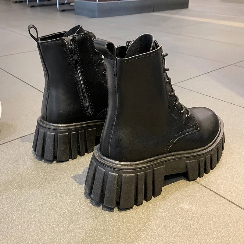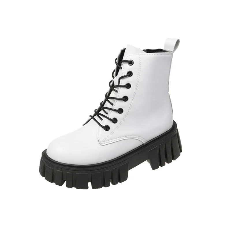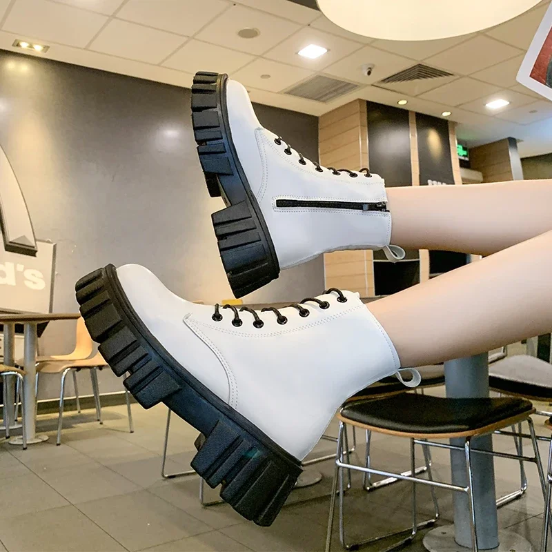 Botas de combate de plataforma gruesa blanca para Mujer, botines de cuero Pu con cremallera trasera, Botas de motocicleta con parte inferior gruesa Punk para Mujer