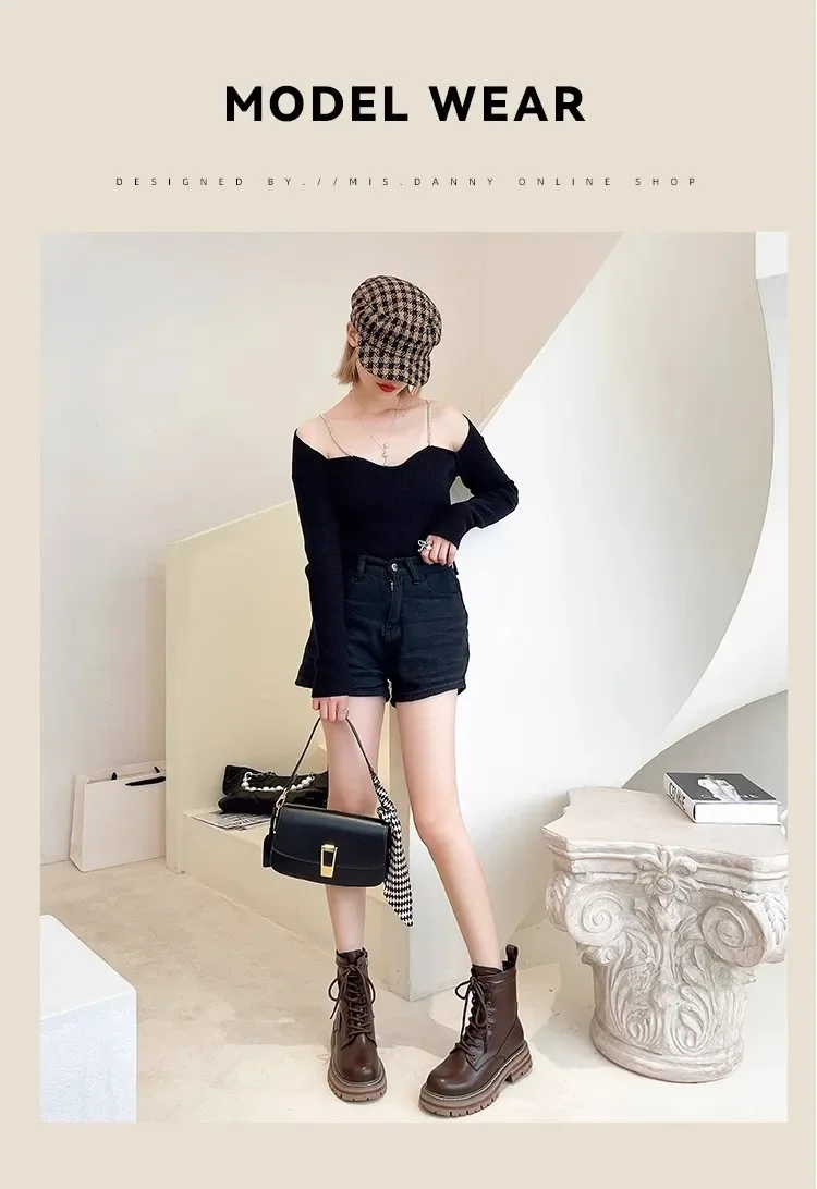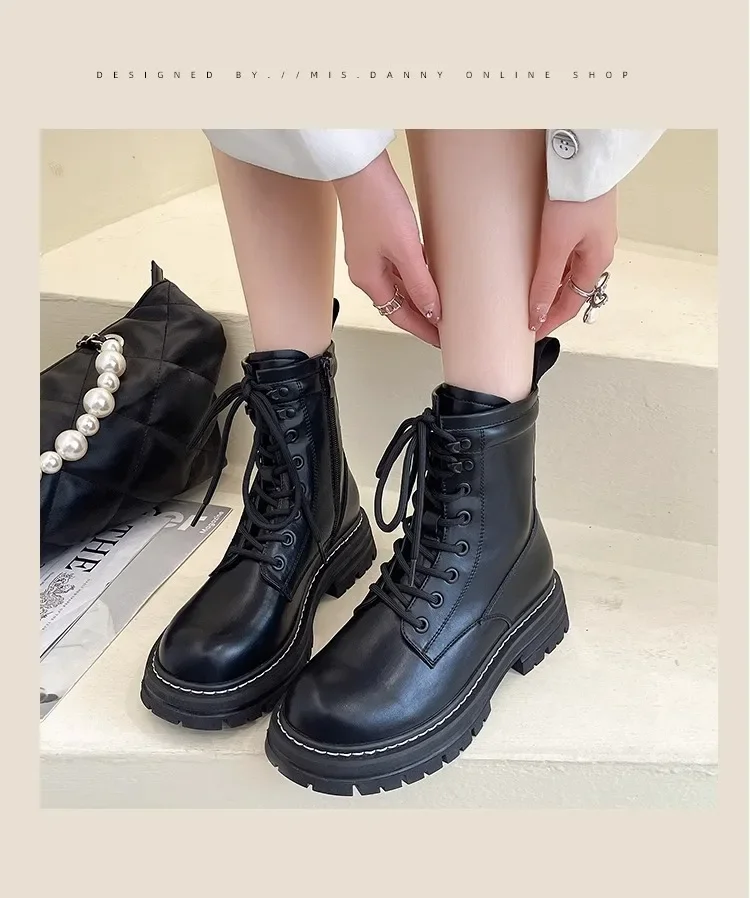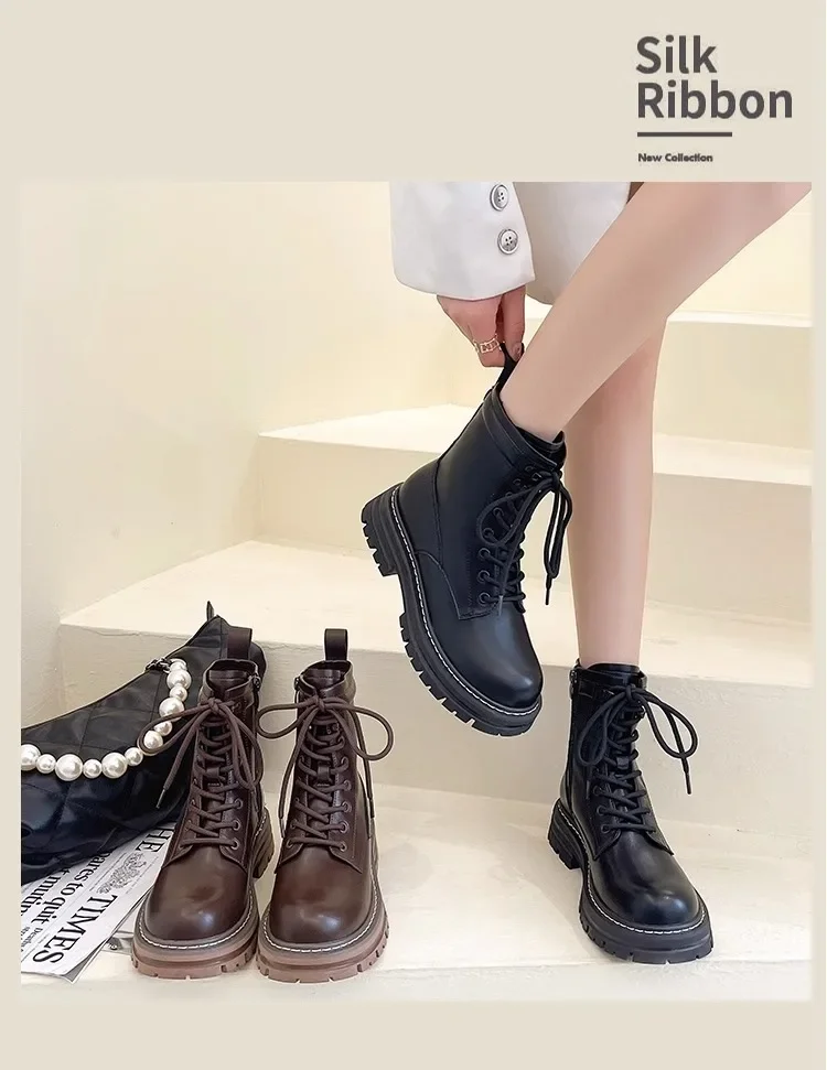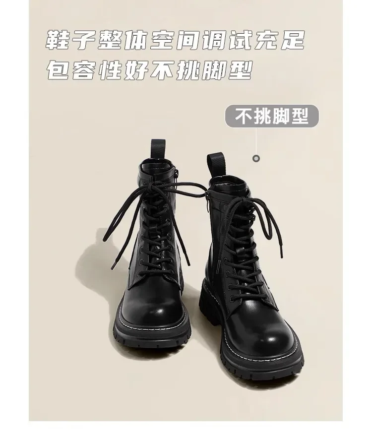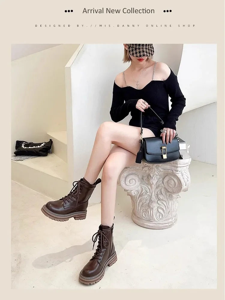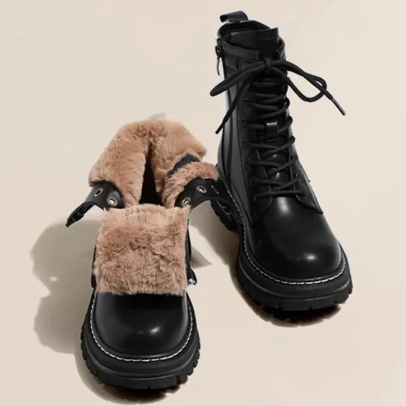 Botas cortas de nieve para mujer, Botines de piel negra y marrón, zapatos acolchados de algodón, fondo grueso cálido, otoño e invierno, novedad