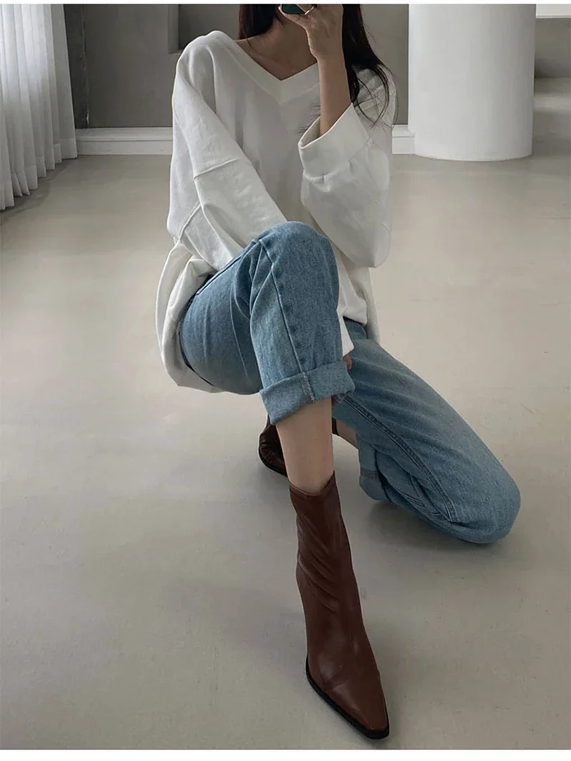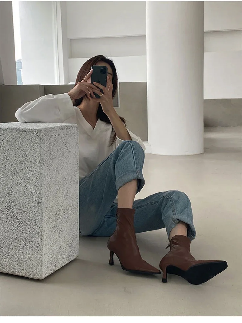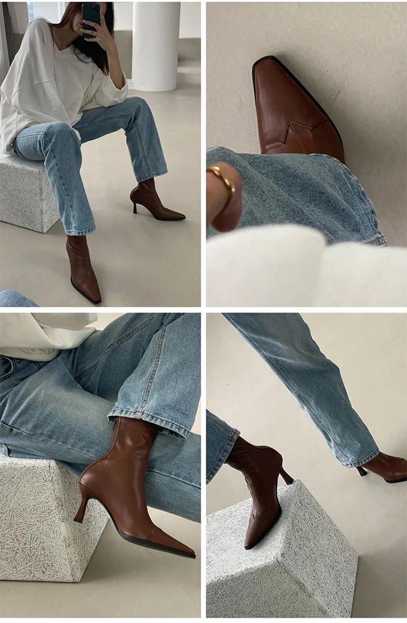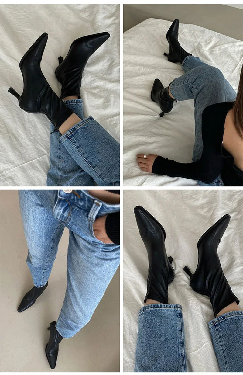 Botas cortas de punta estrecha para mujer, botines ajustados con cremallera, tacón alto grueso, zapatos de otoño e invierno