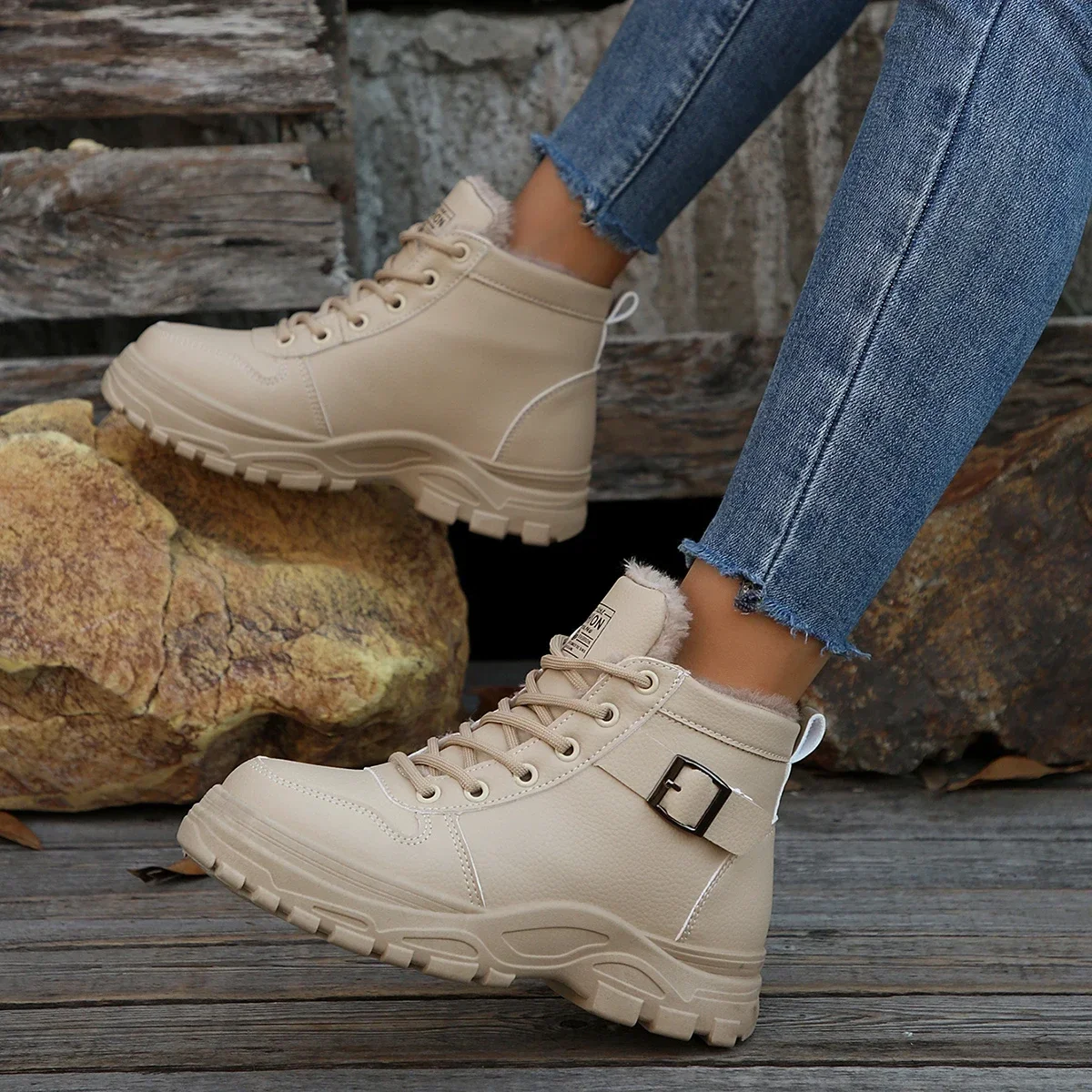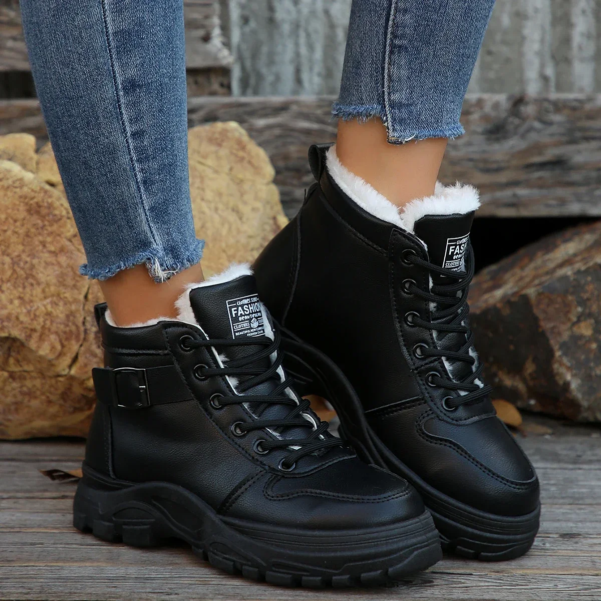 Botas deportivas cálidas para mujer, botines cortos de felpa, zapatos de plataforma a la moda versátiles, zapatillas ligeras, invierno, 2024