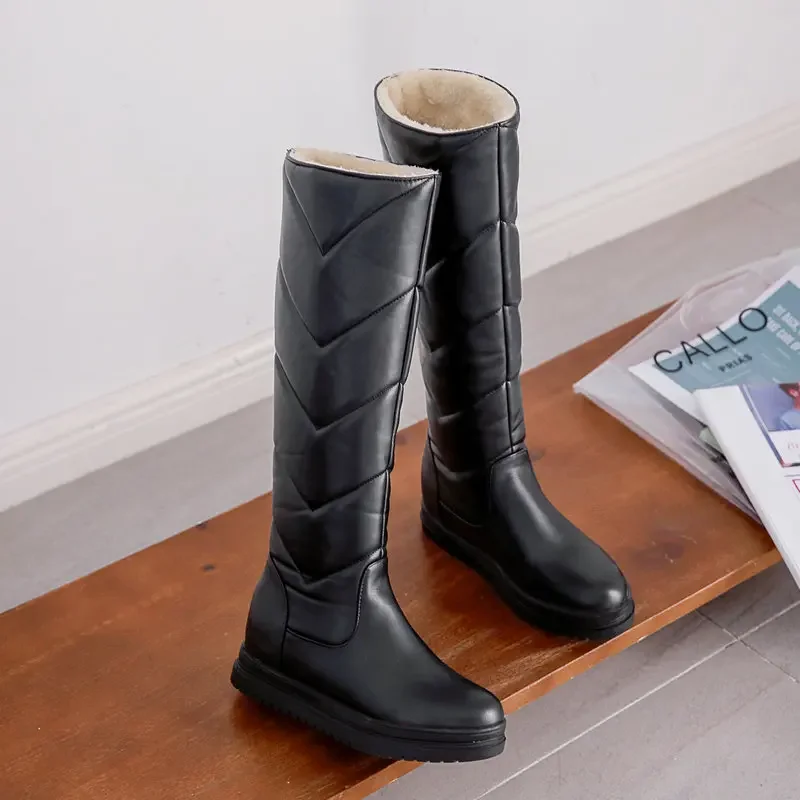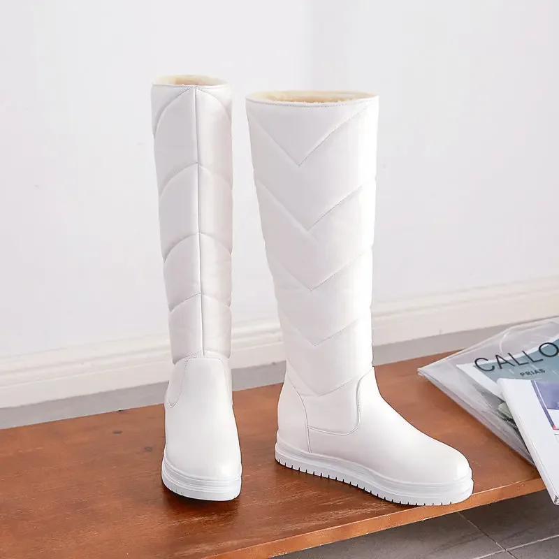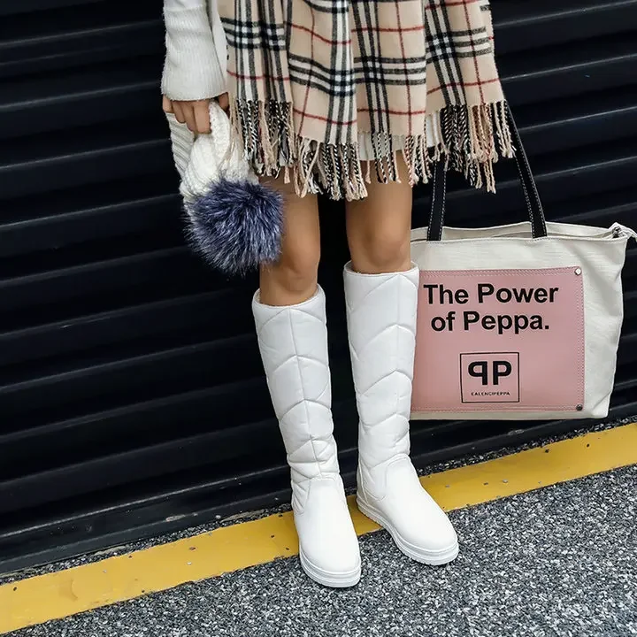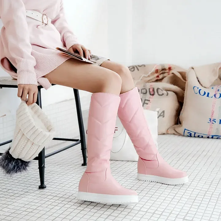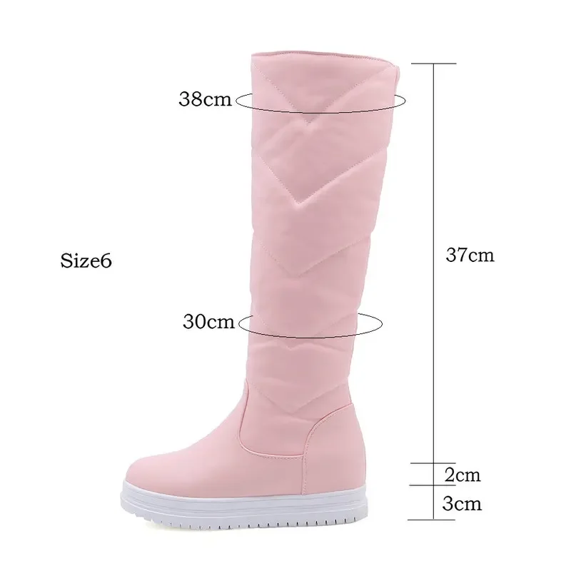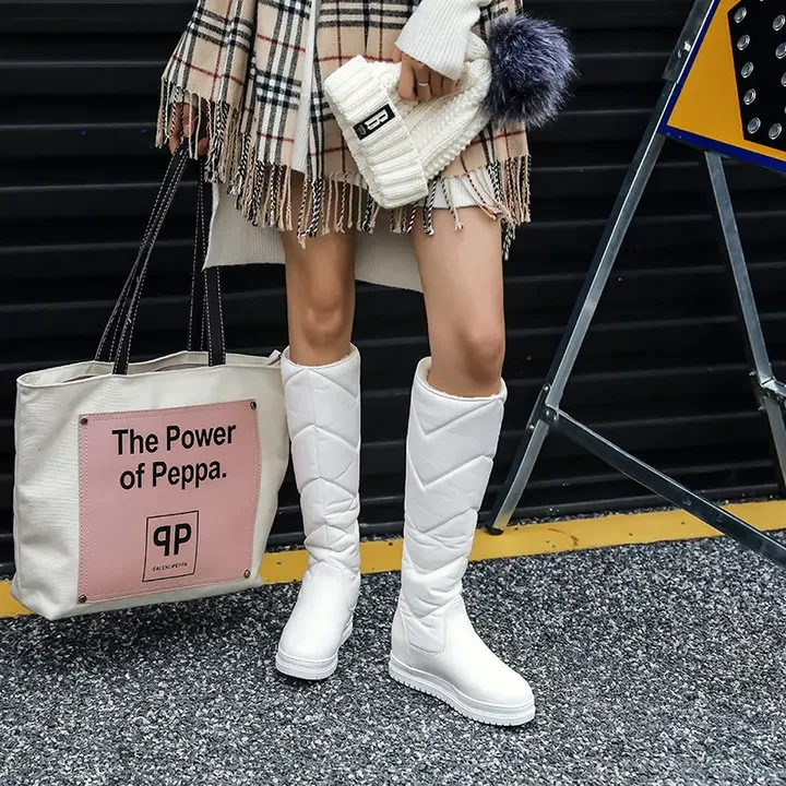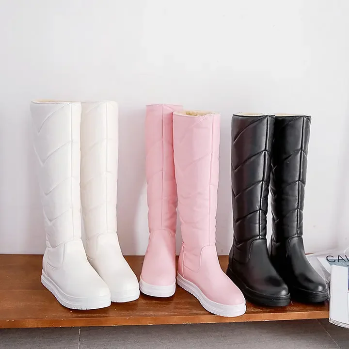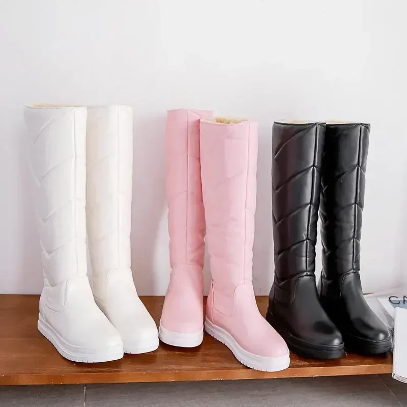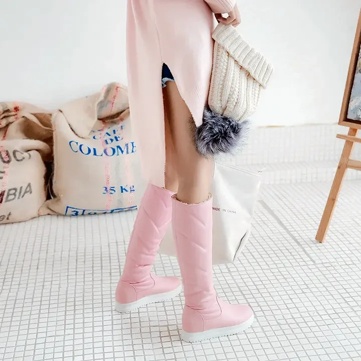 Botas hasta la rodilla de felpa cálidas para mujer, cómodas botas de nieve de tacón plano, sin cordones, con plataforma, Botas Largas, color negro, rosa y blanco, invierno, 2022