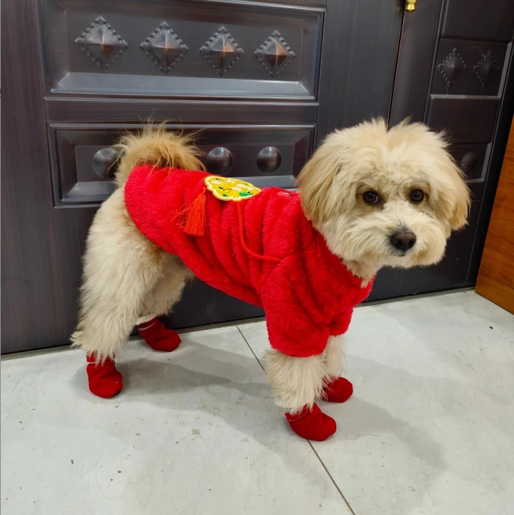Botas impermeables para perros de invierno, zapatos de nieve antideslizantes gruesos y cálidos para perros y gatos pequeños y medianos, forro de felpa con suelas antideslizantes, 4 Uds.