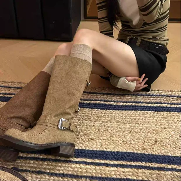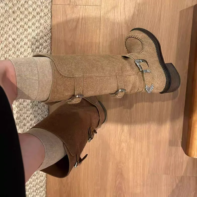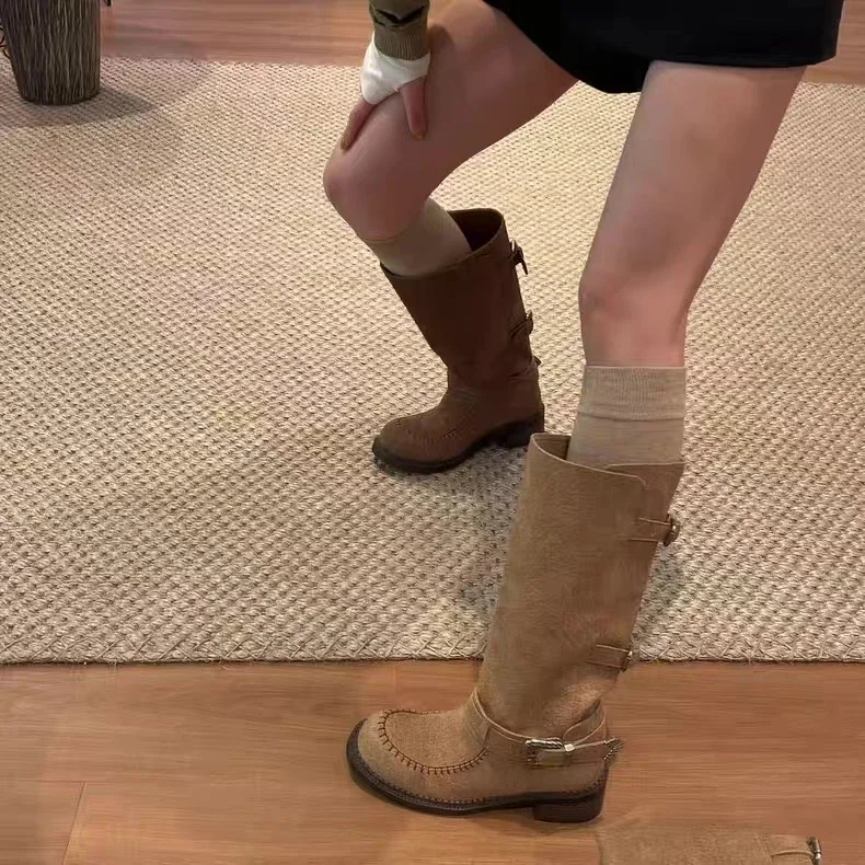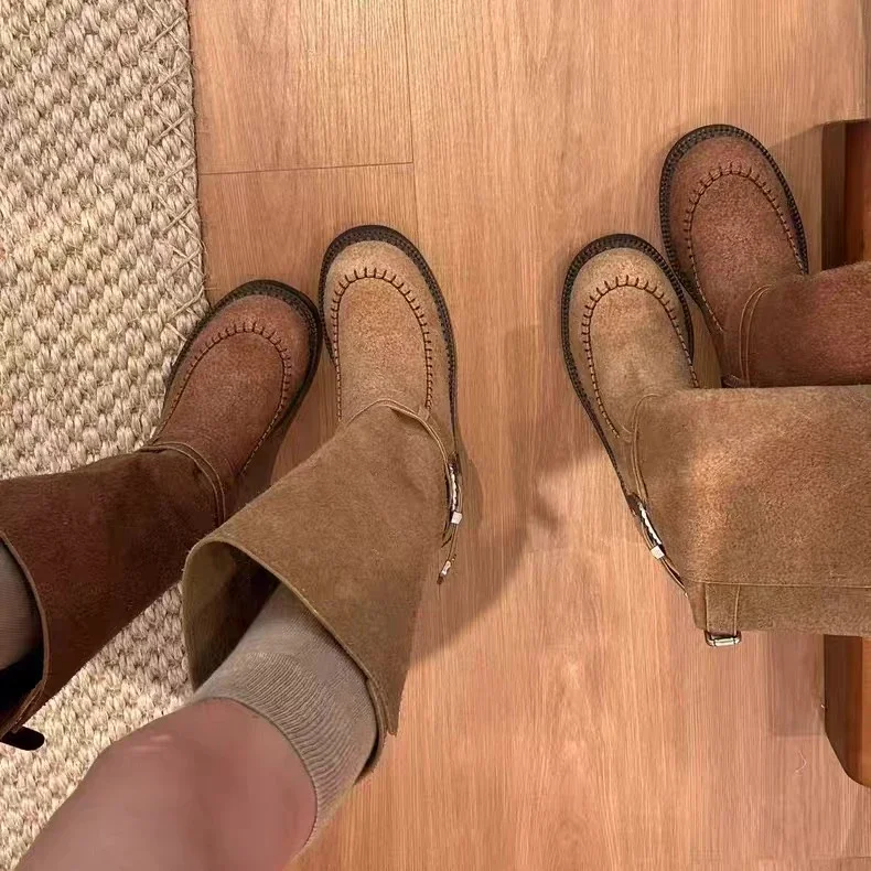 Botas Largas para Mujer, zapatos De tacón medio De diseñador, Botas Chelsea gruesas De invierno, Botas góticas para caminar, nueva tendencia, Botas para Mujer