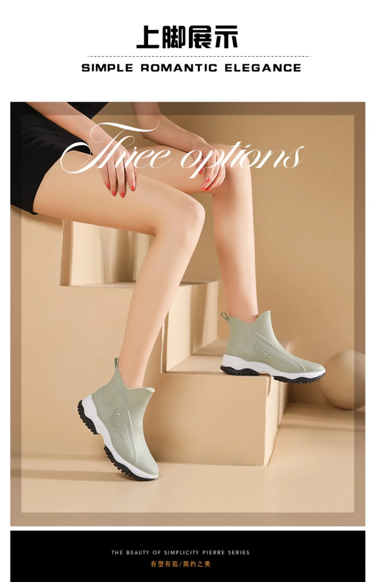 Botas De lluvia con plataforma para Mujer, zapatos De trabajo impermeables, antideslizantes, gruesos, a la moda, para jardín y cocina