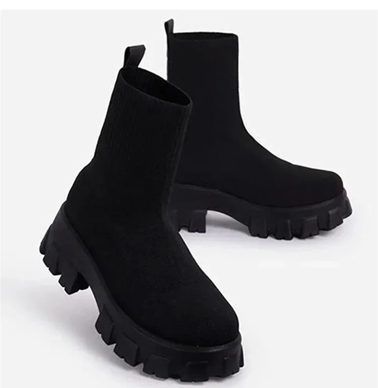 Botas de Mujer, Botas cortas de plataforma de punto, zapatos de Otoño Invierno para Mujer, botines con tacones, Botas blancas de invierno, zapatos informales para Mujer