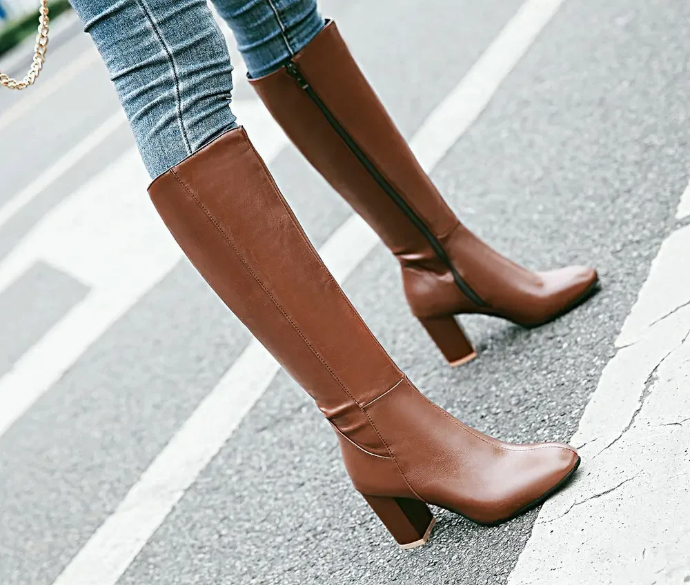 Botas de mujer tacón de bloque, tacón alto versatilidad de moda, botas cálidas y cómodas, zapatos de mujer botas altas