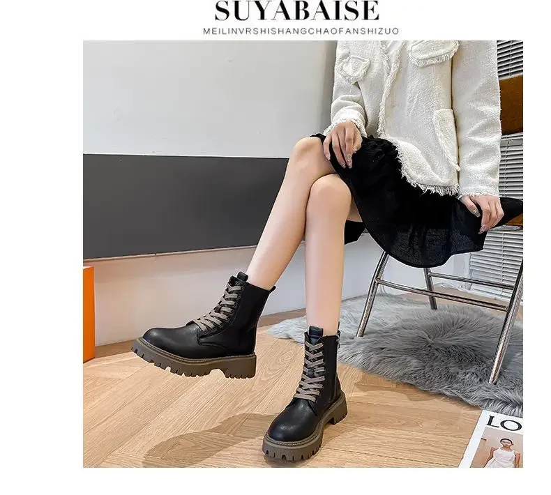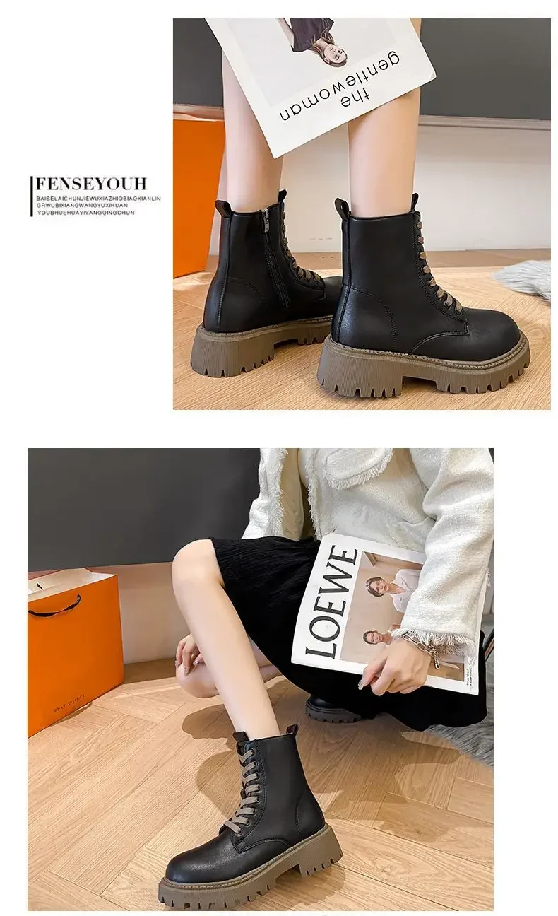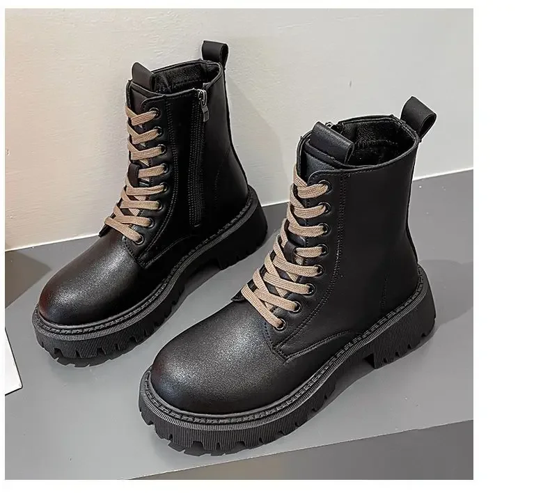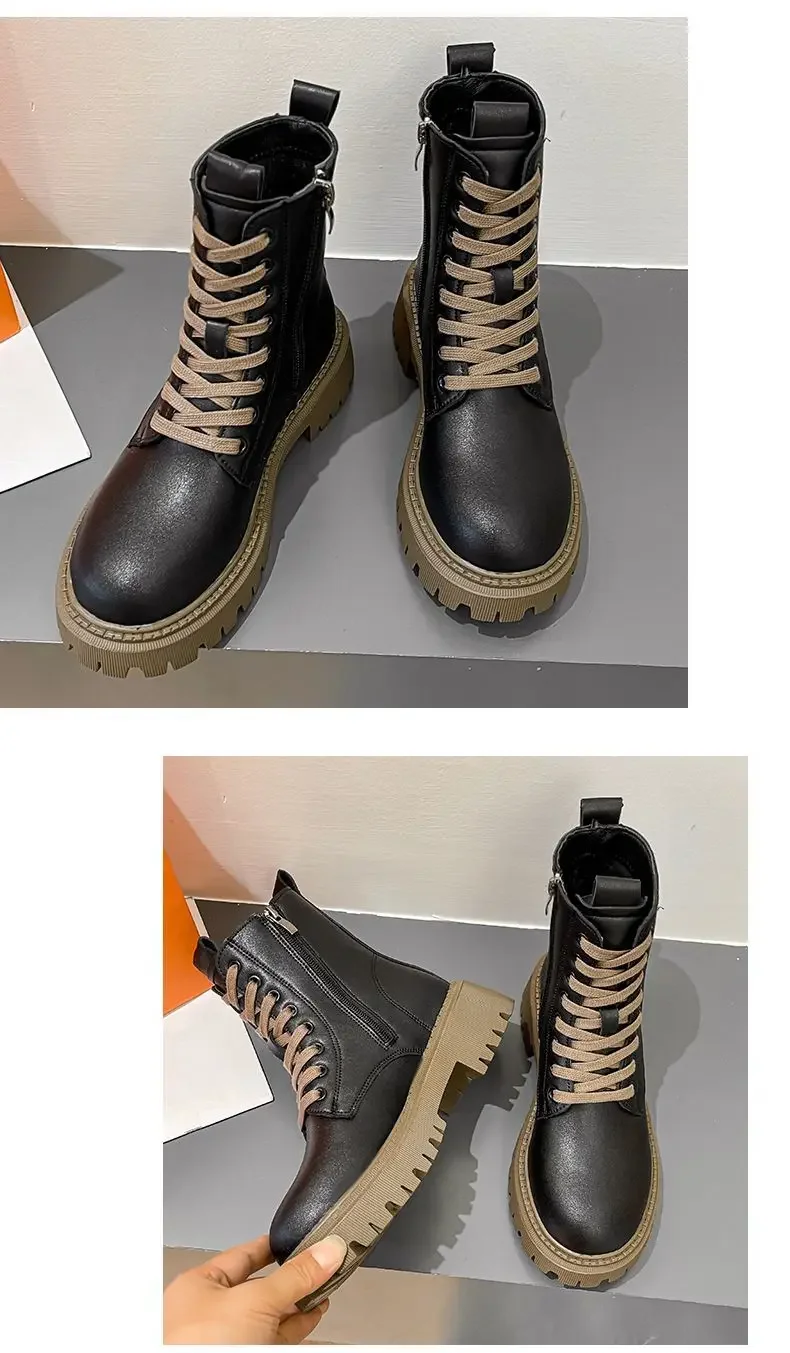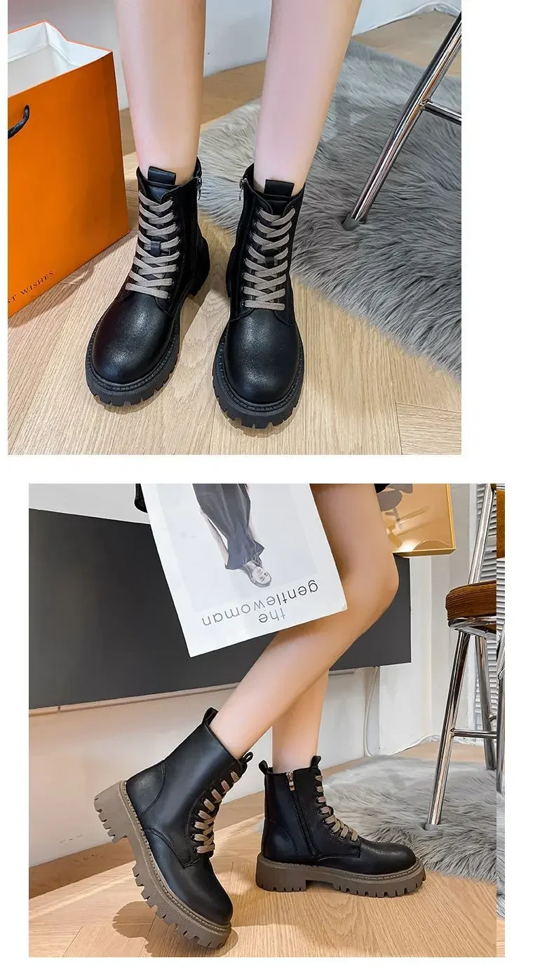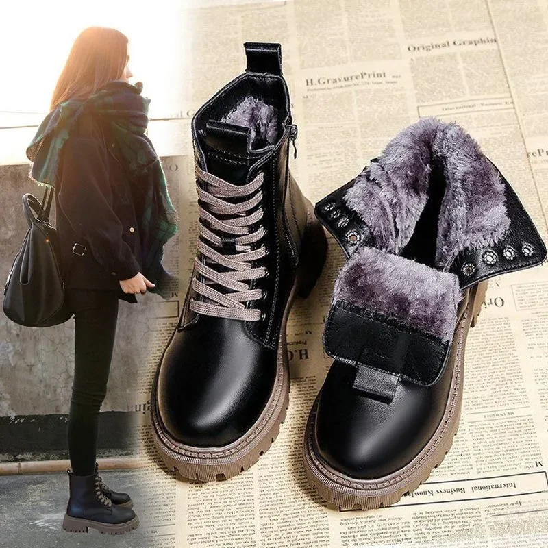 Botas de nieve de cuero para mujer, zapatos de algodón grueso de felpa, botas cortas cálidas, antideslizantes, invierno, 2024