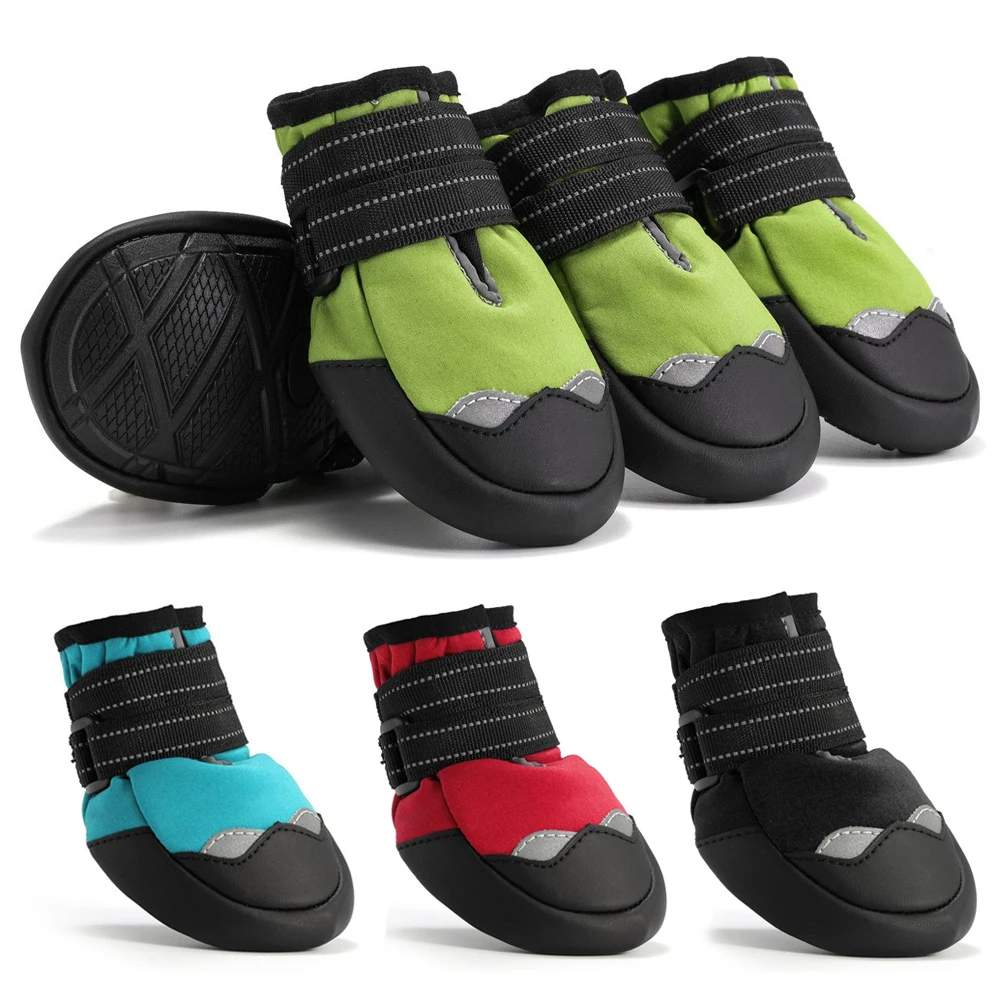 Botas de nieve impermeables para perros pequeños, botines de invierno para cachorros con rayas reflectantes, antideslizantes, con suela de goma, para senderismo