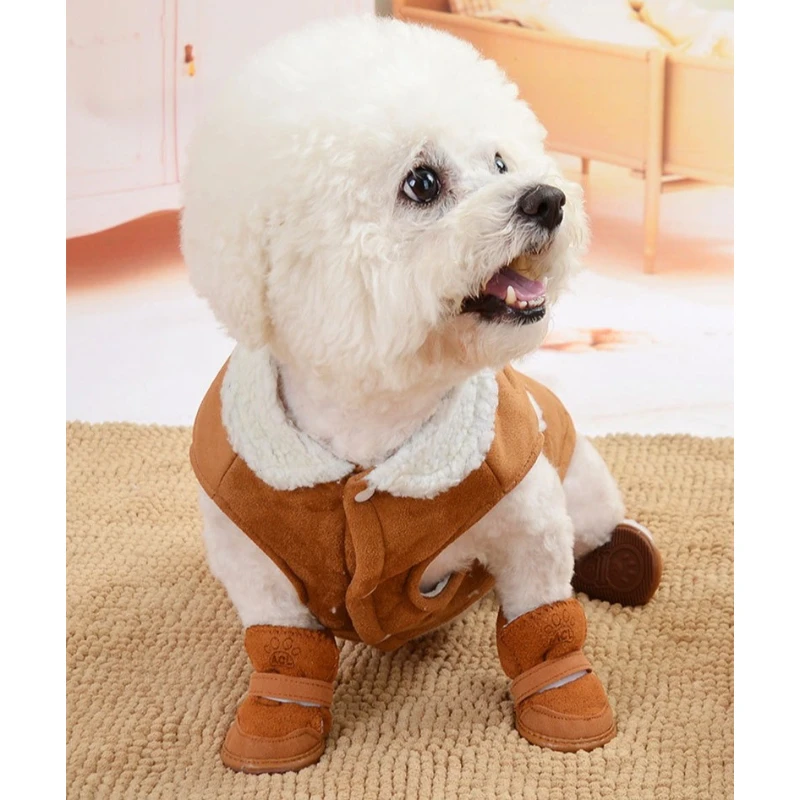 ❄️ Calidez y comodidad superiores:Todo el interior está forrado con forro polar de cordero de felpa y acogedor.que retiene el calor, manteniendo las patas de su mascota calientes y protegidas del suelo helado y los duros elementos invernales.