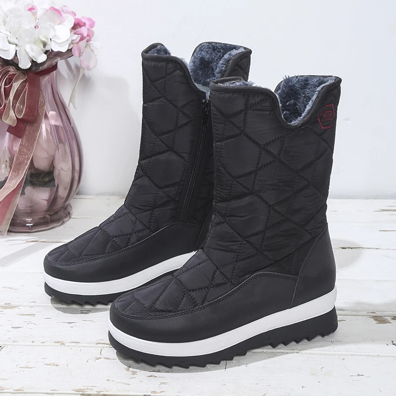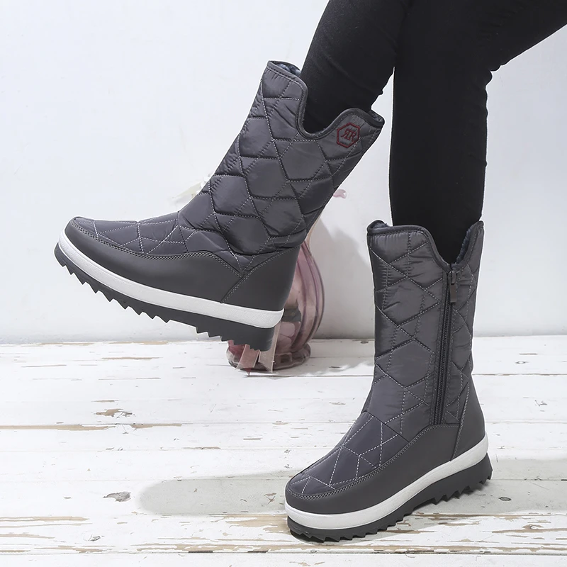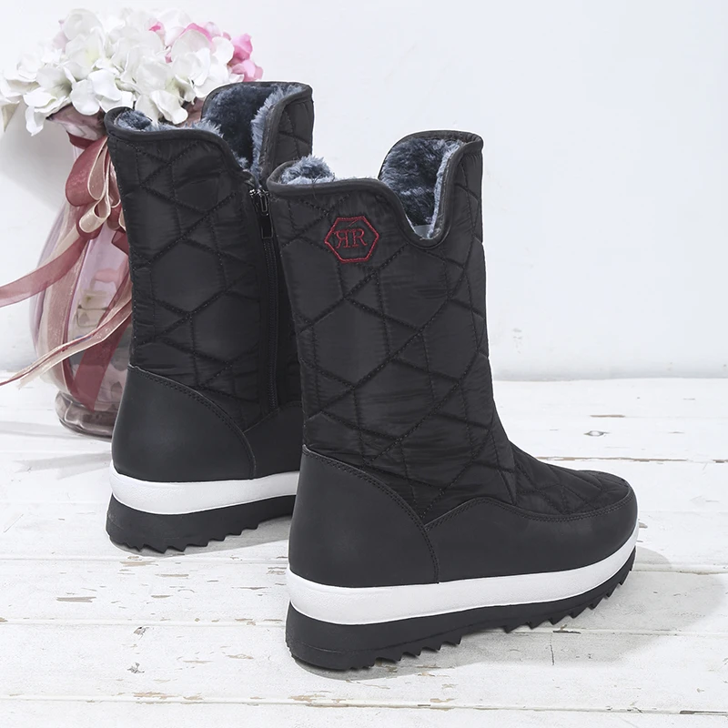 Botas de nieve de media pantorrilla para mujer, botines impermeables cómodos con cordones, mantiene el calor, Invierno