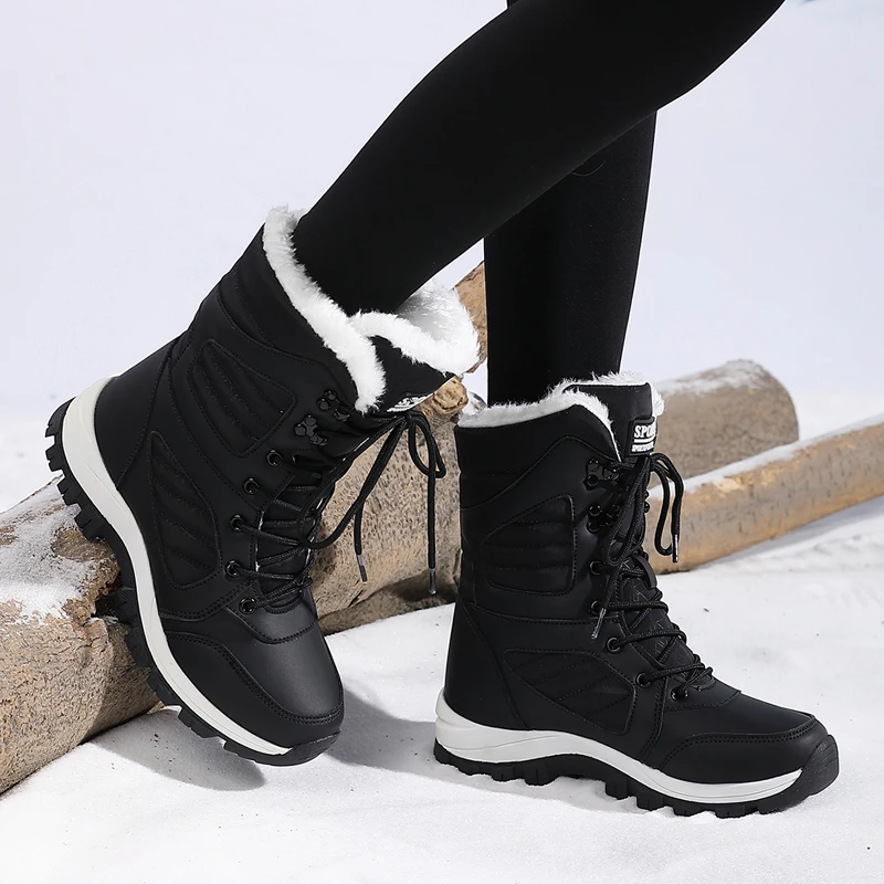 Botas de nieve a la moda para mujer, diseño de Color sólido, punta redonda, capa exterior de fibra ultrafina, forro de tela, suela de goma