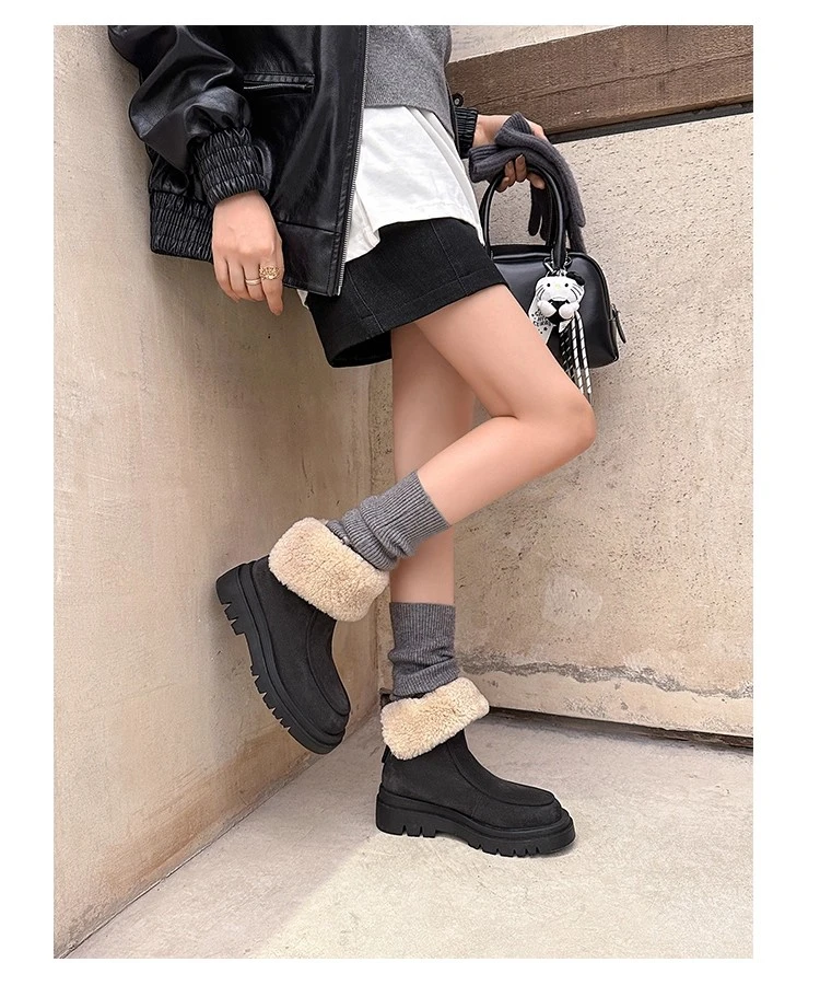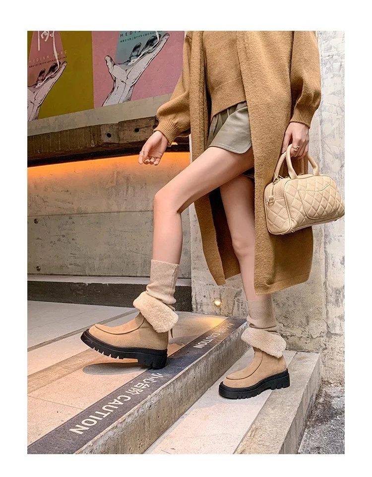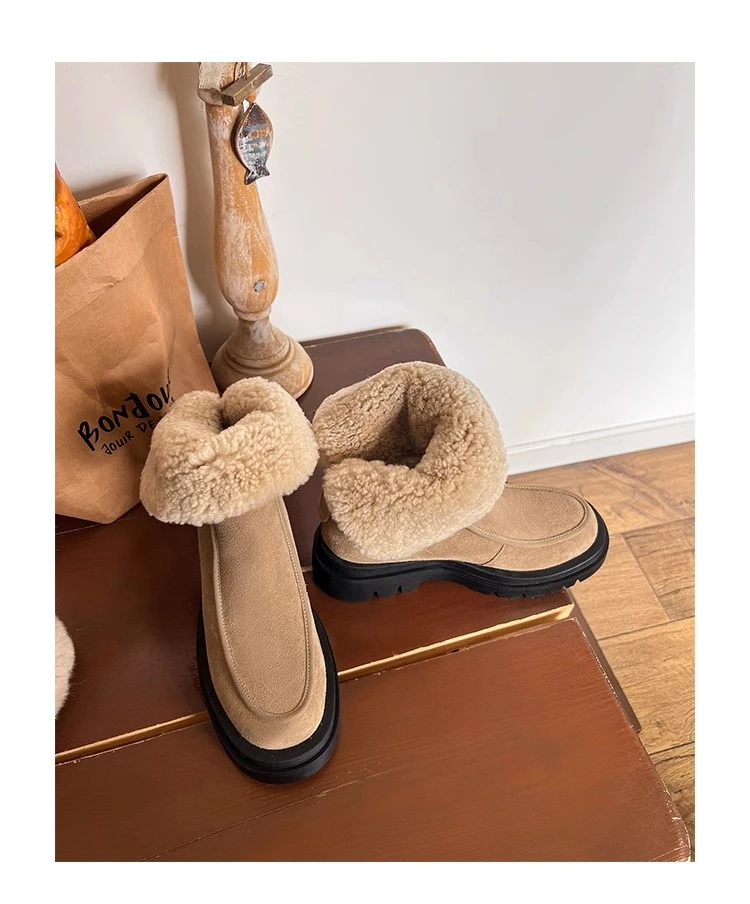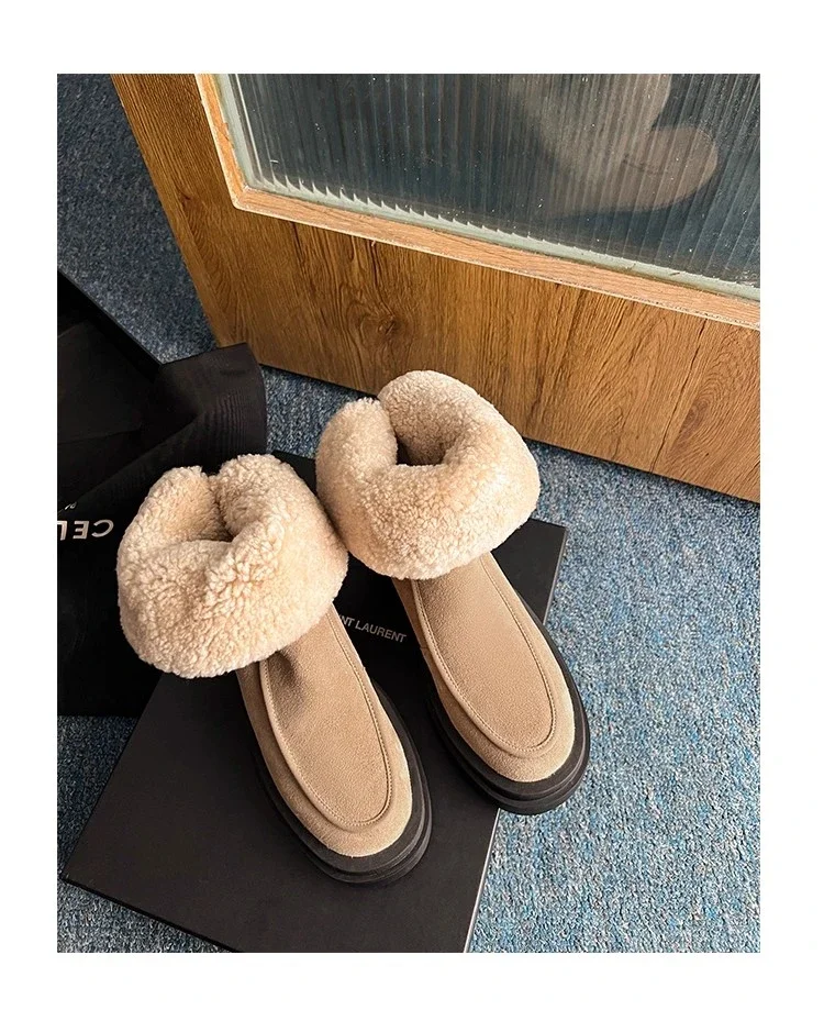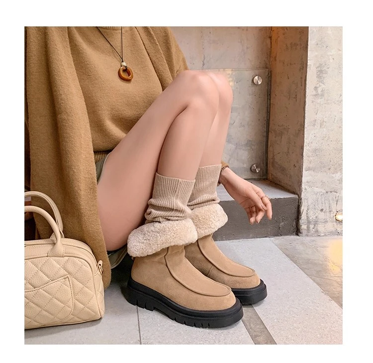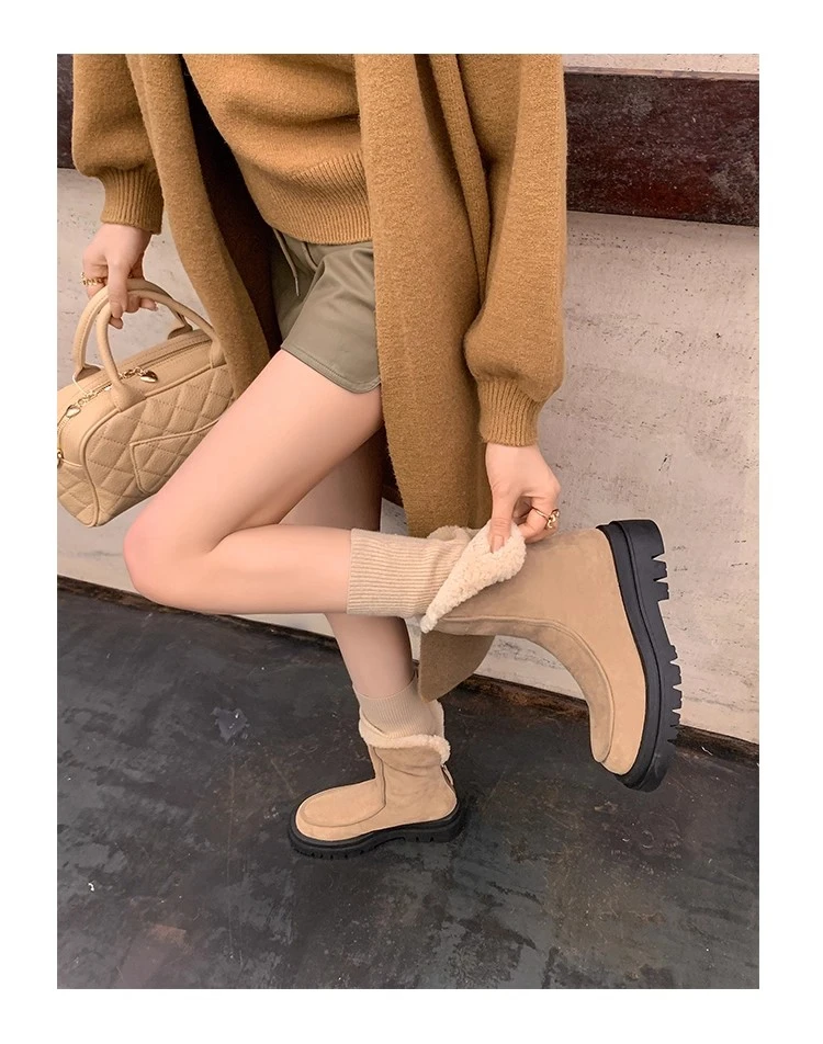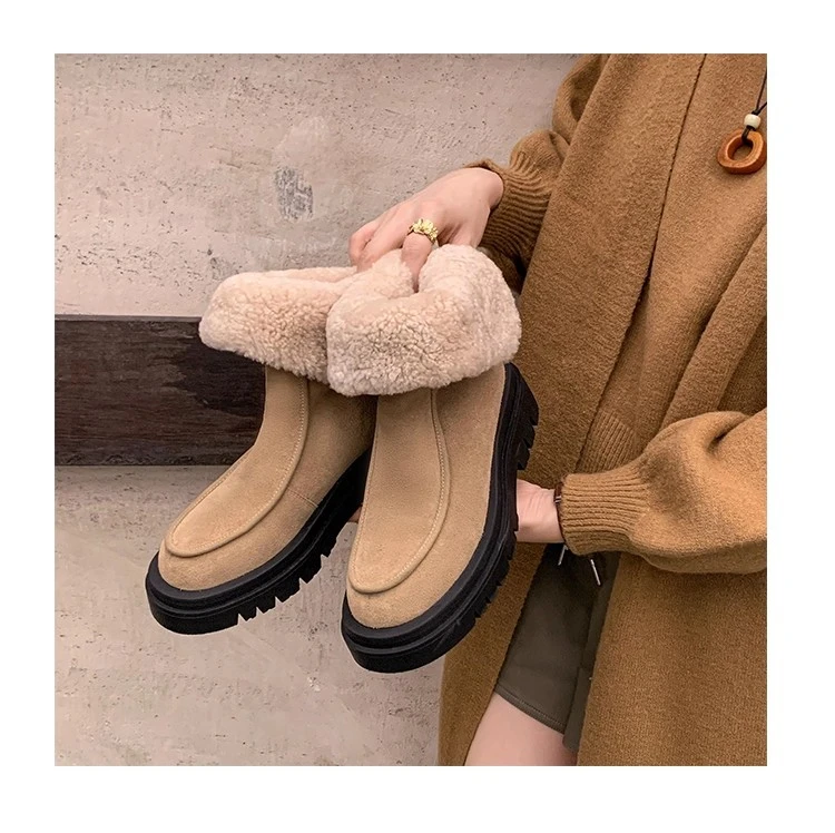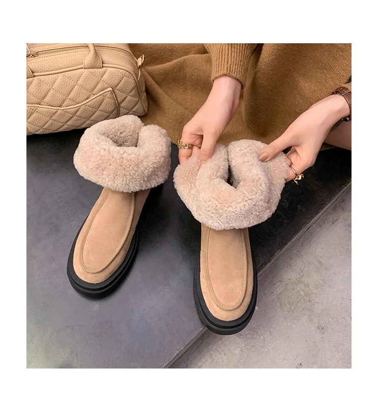 Botas de nieve para Mujer, zapatos planos de gamuza cálidos a la moda, zapatos de algodón a la moda, nuevas botas deportivas cómodas cortas de felpa para Mujer