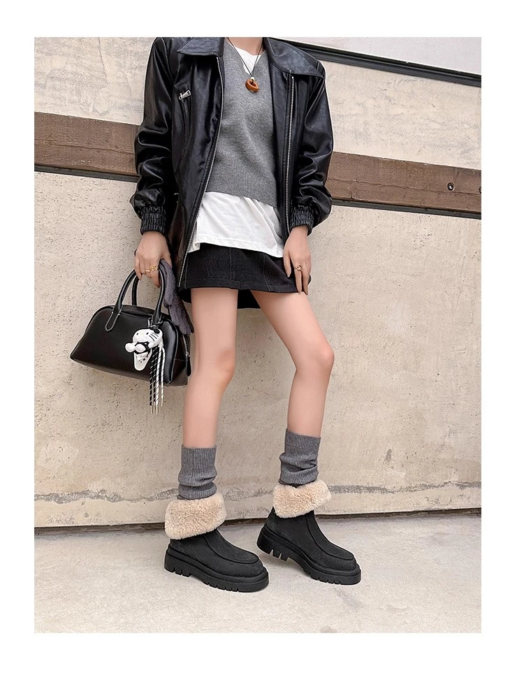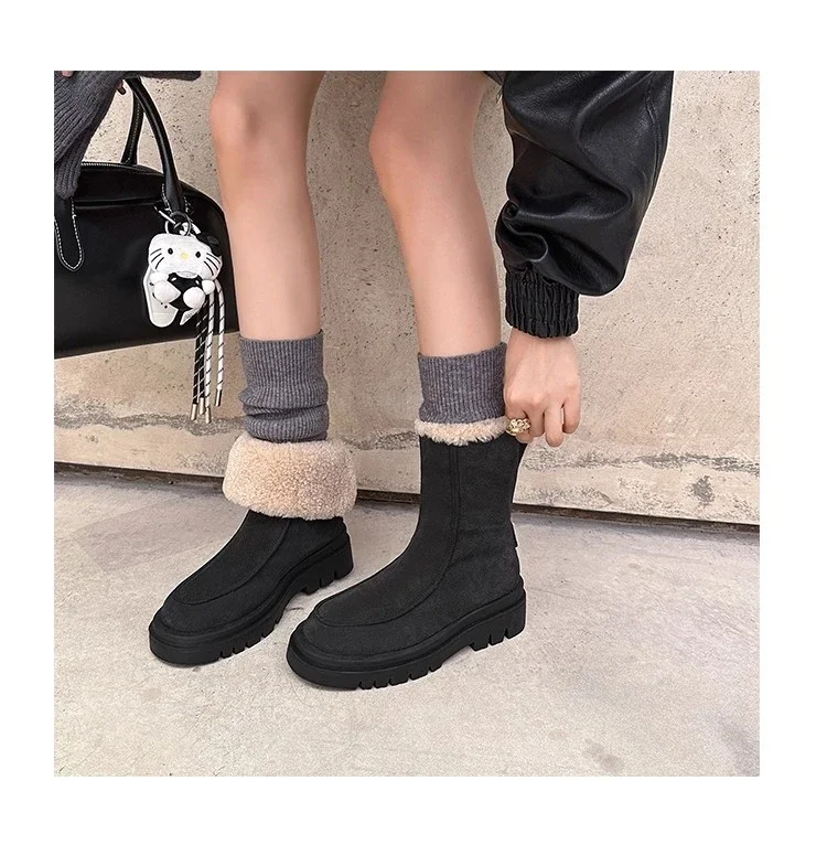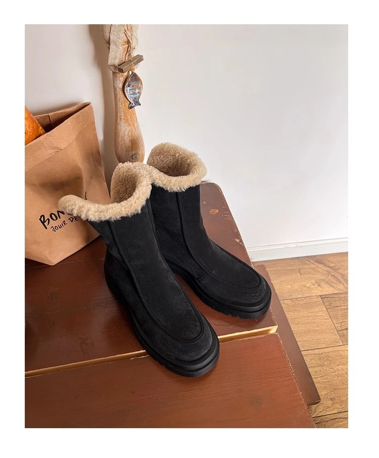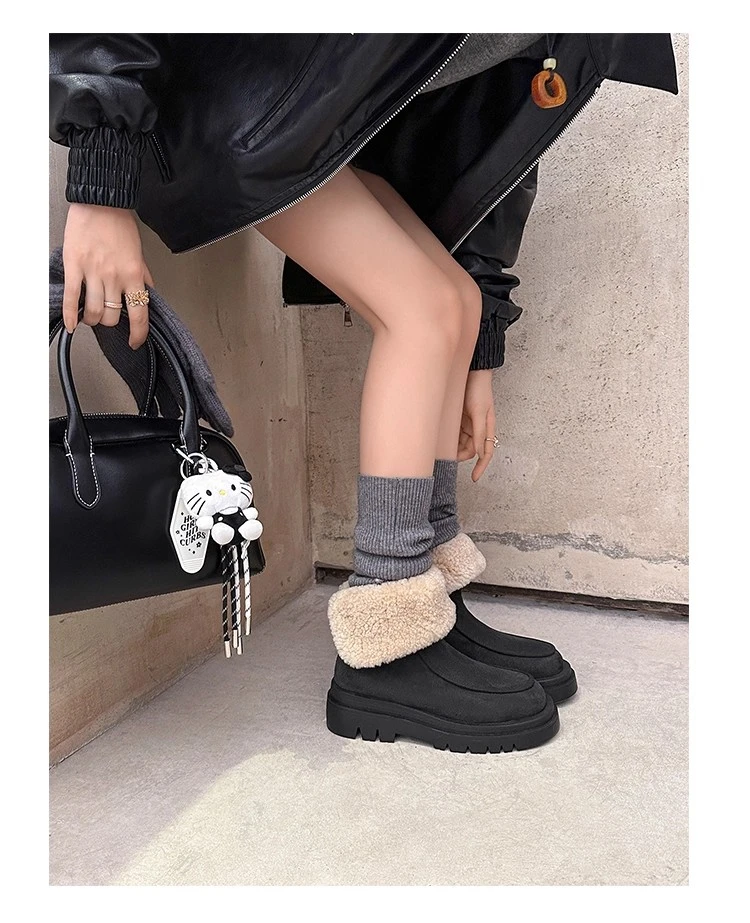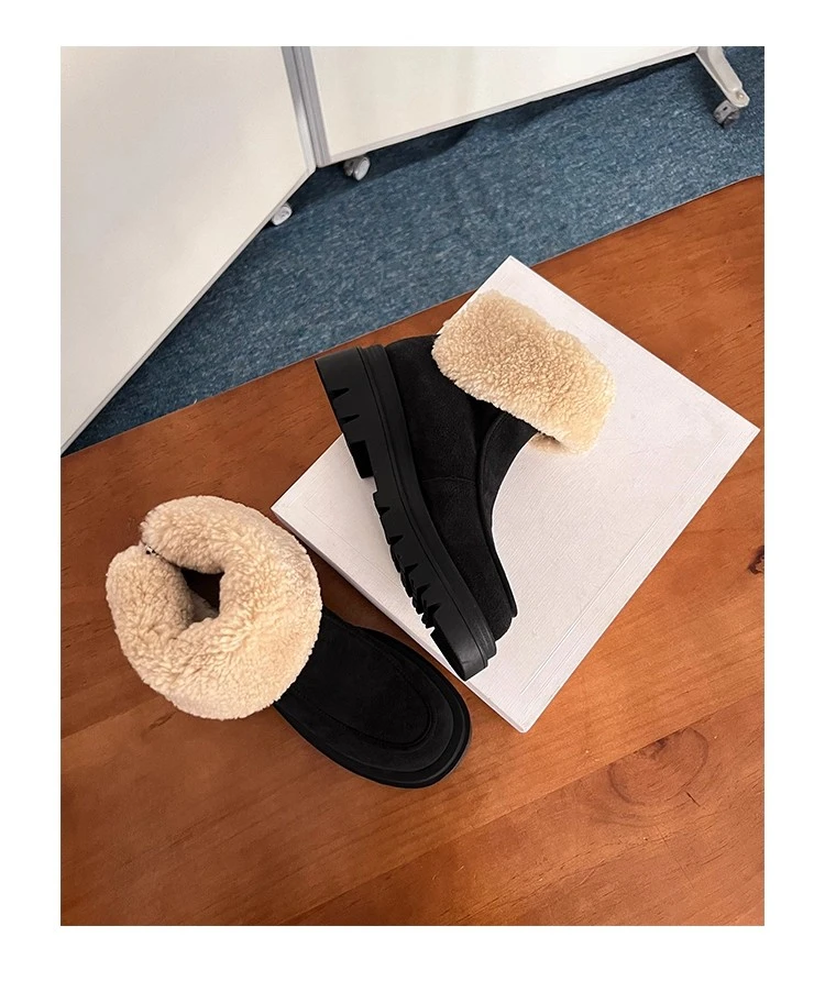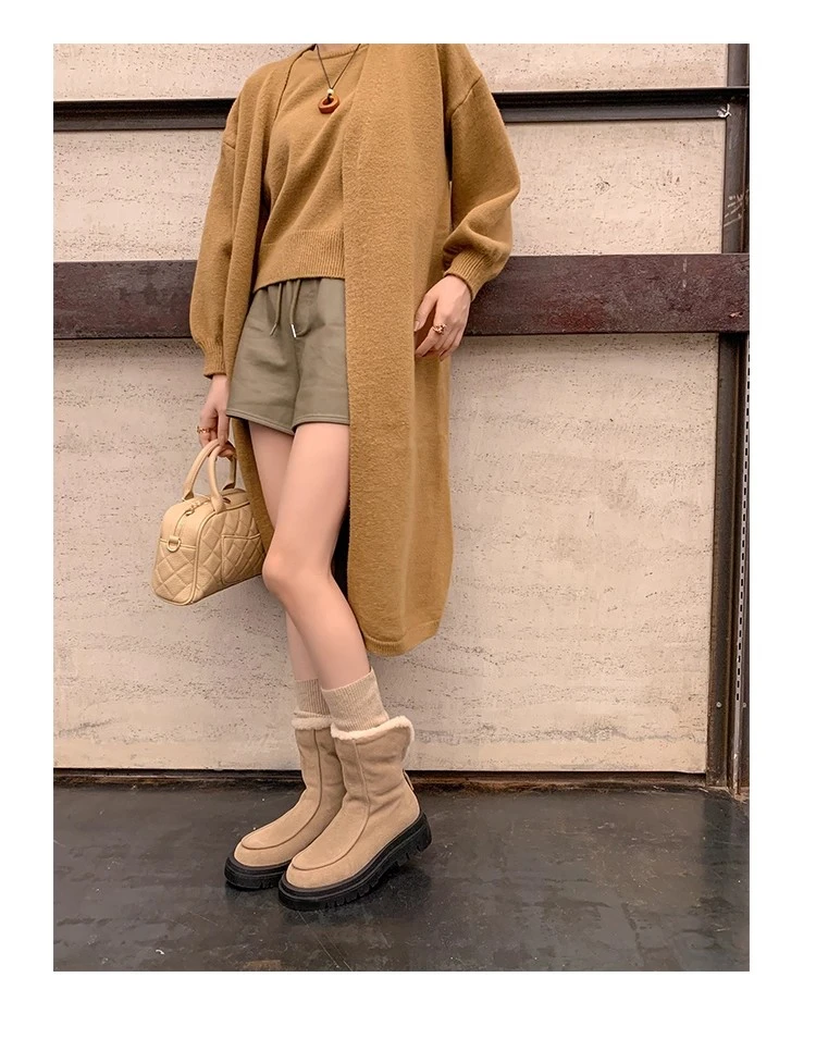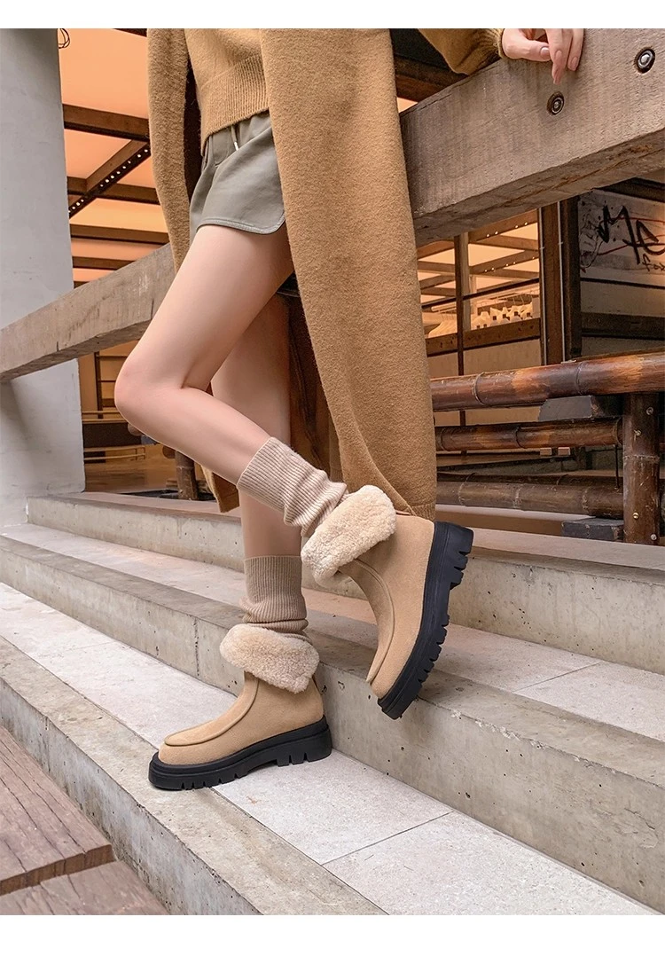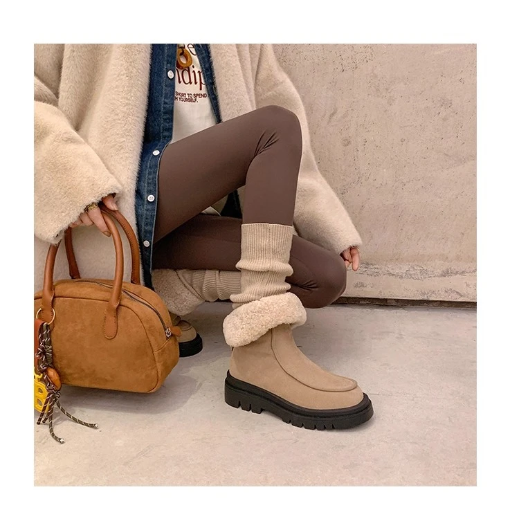 Botas de nieve para Mujer, zapatos planos de gamuza cálidos a la moda, zapatos de algodón a la moda, nuevas botas deportivas cómodas cortas de felpa para Mujer