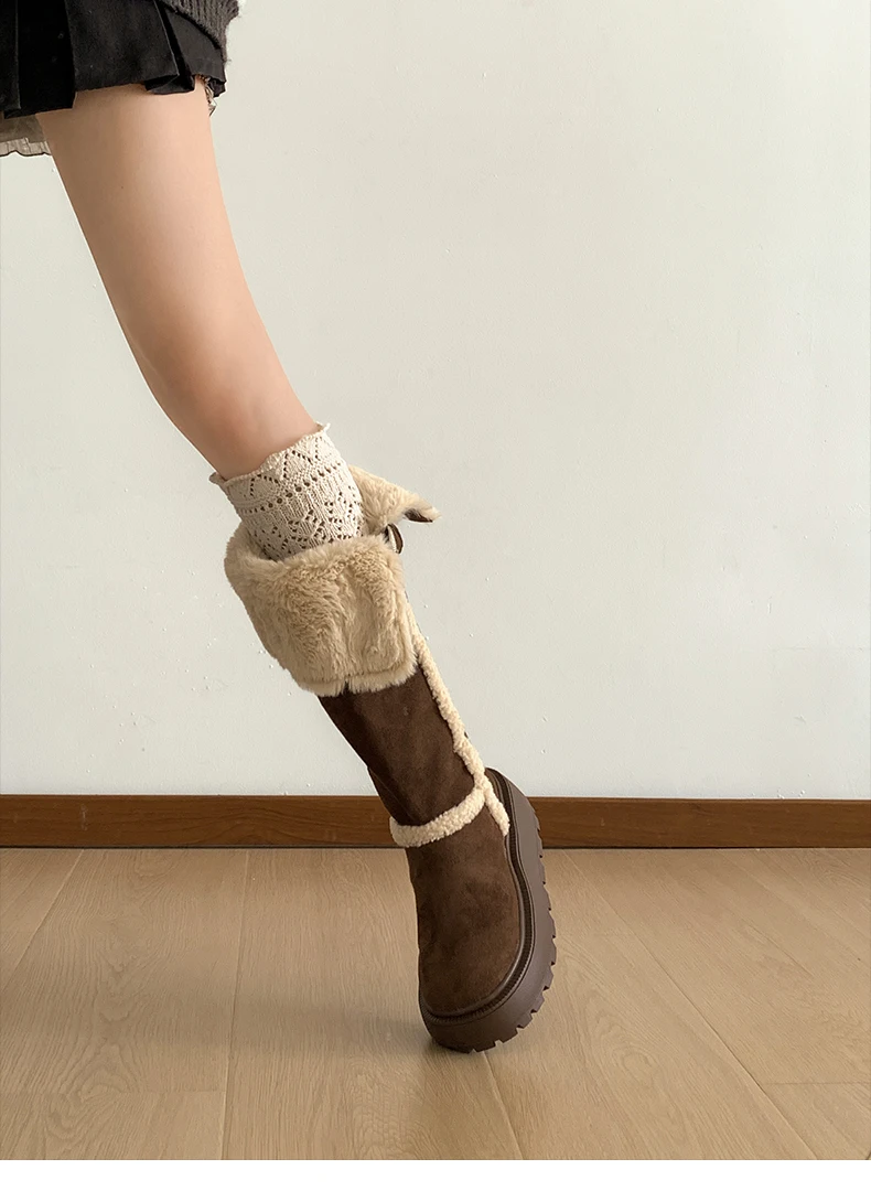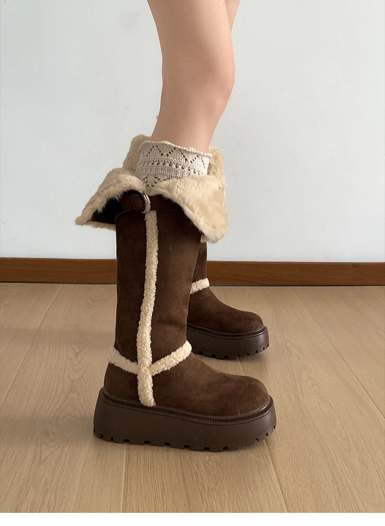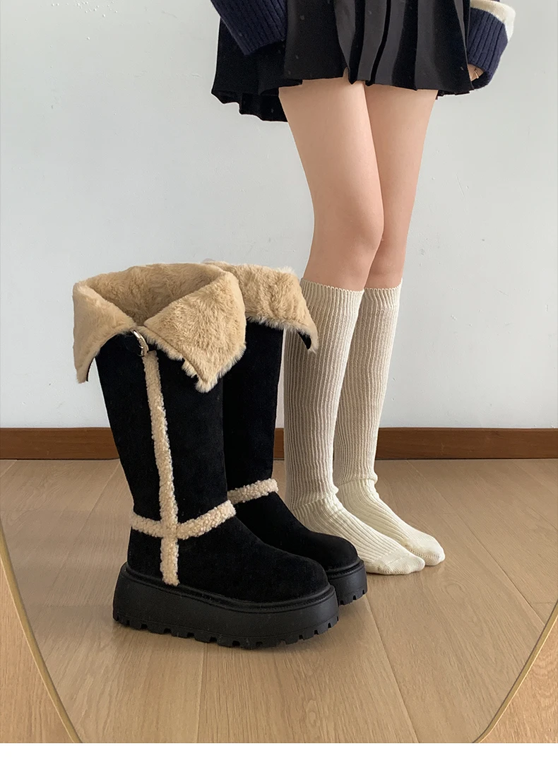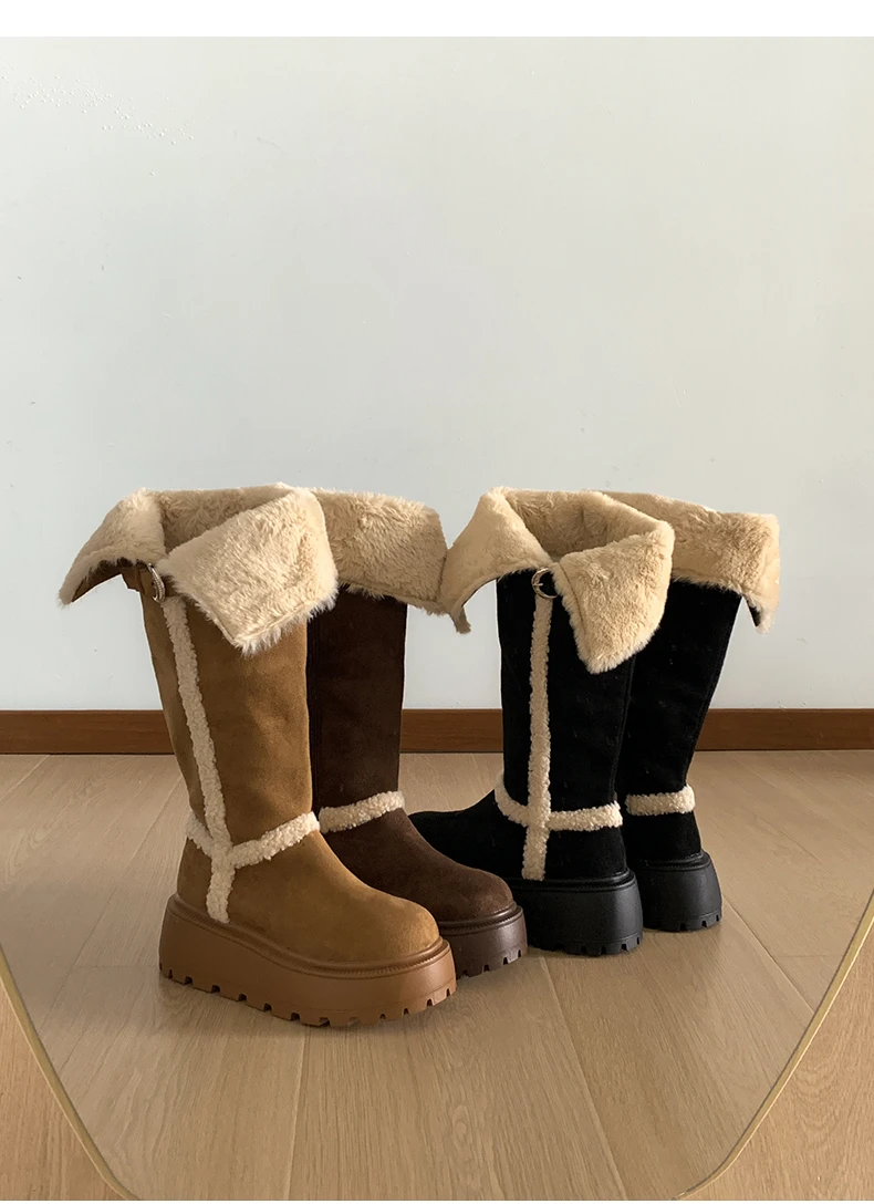 Botas De nieve De piel De algodón cálidas para Mujer, Zapatos planos con plataforma a la moda, botines largos De caballero Vintage para Mujer