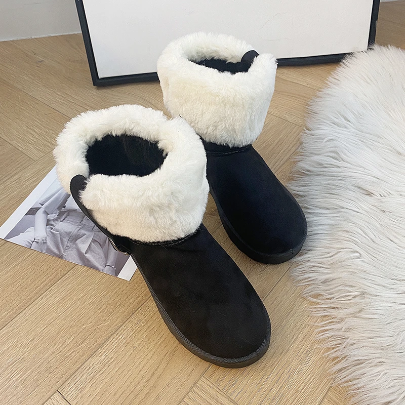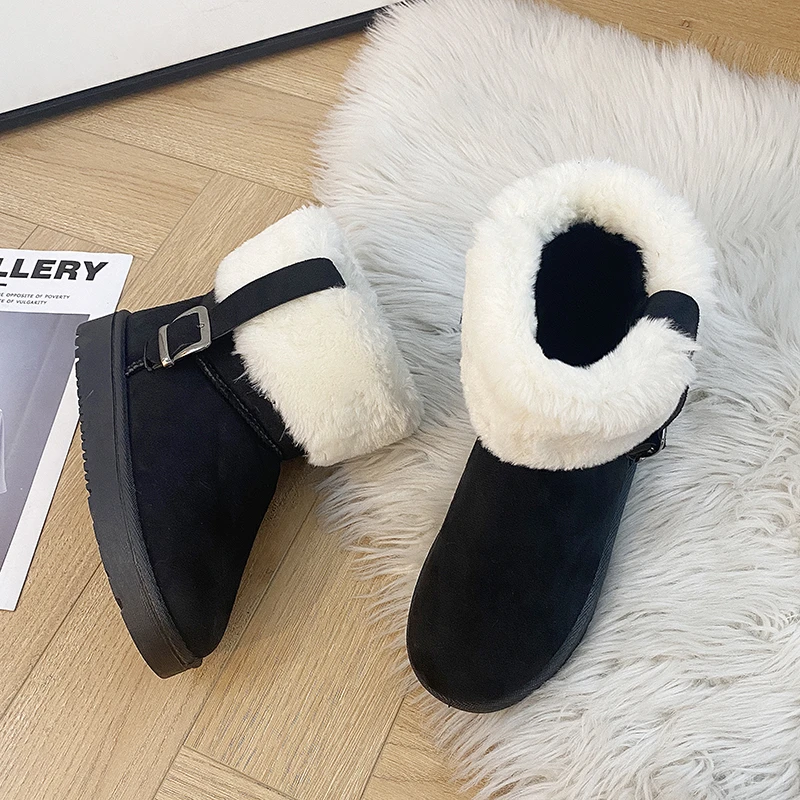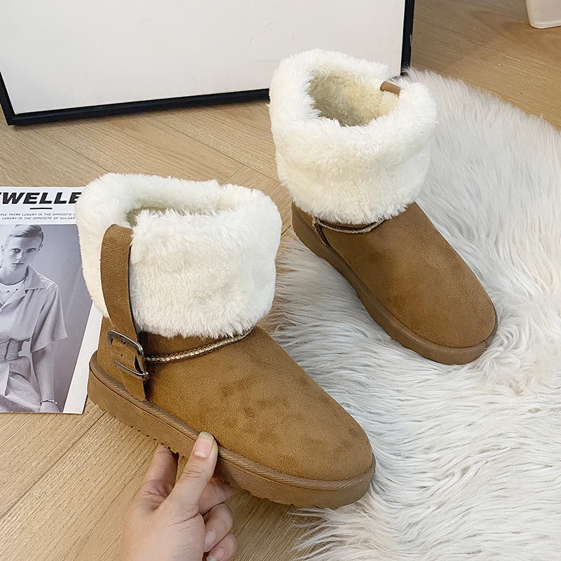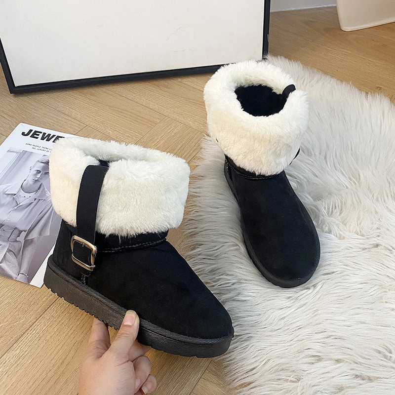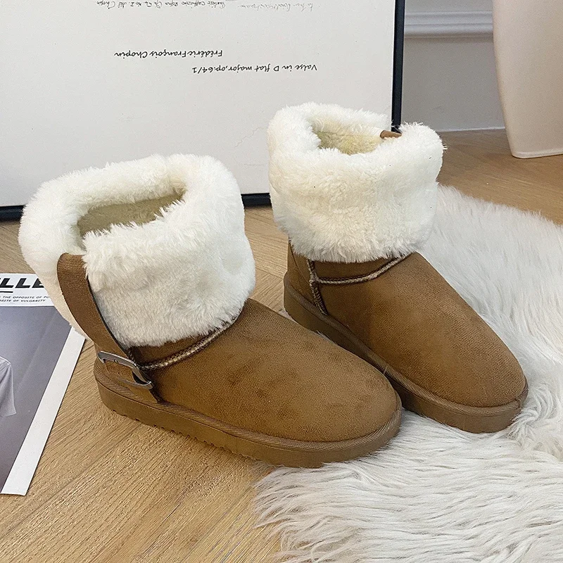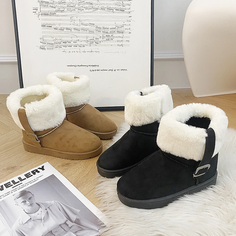 Botas de nieve planas para mujer, zapatos de algodón, cálidos y gruesos, antideslizantes, invierno, 2024