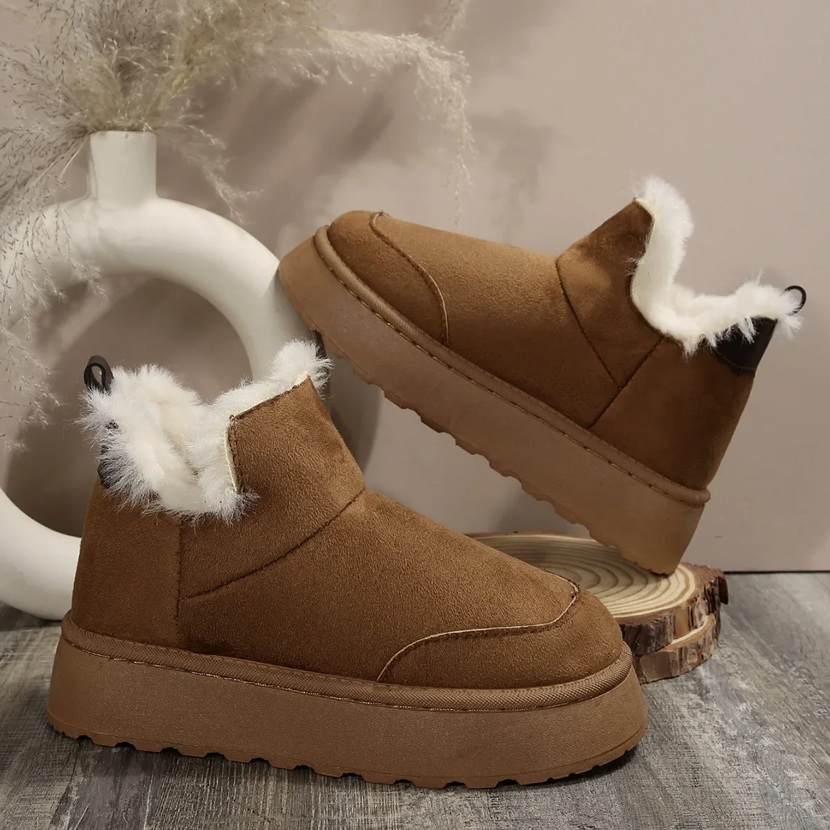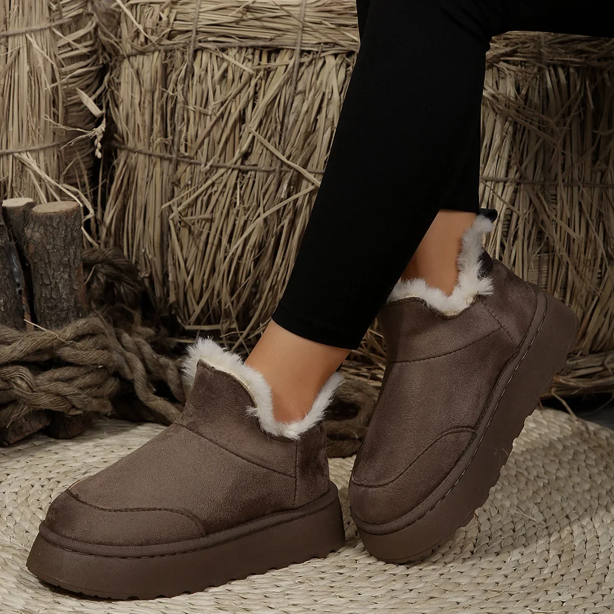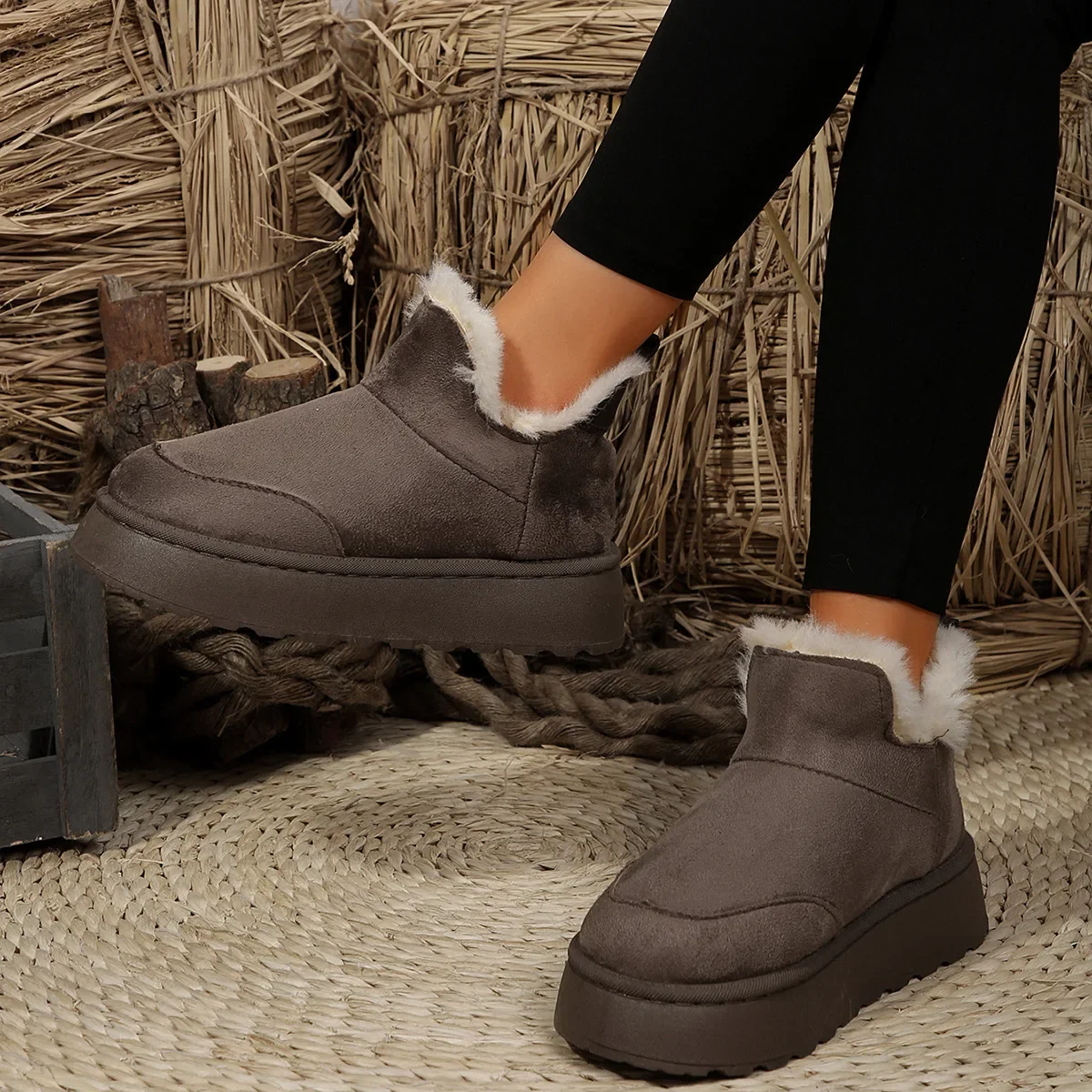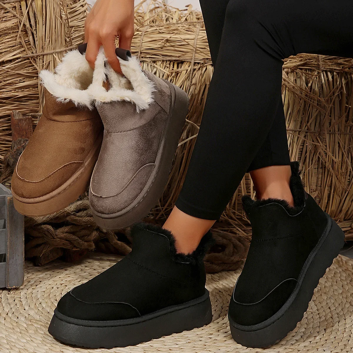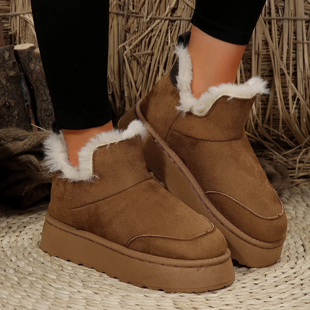 Botas de nieve con plataforma antideslizantes y cálidas para mujer, zapatos informales de algodón a la moda para invierno, botines aterciopelados de Color sólido para mujer