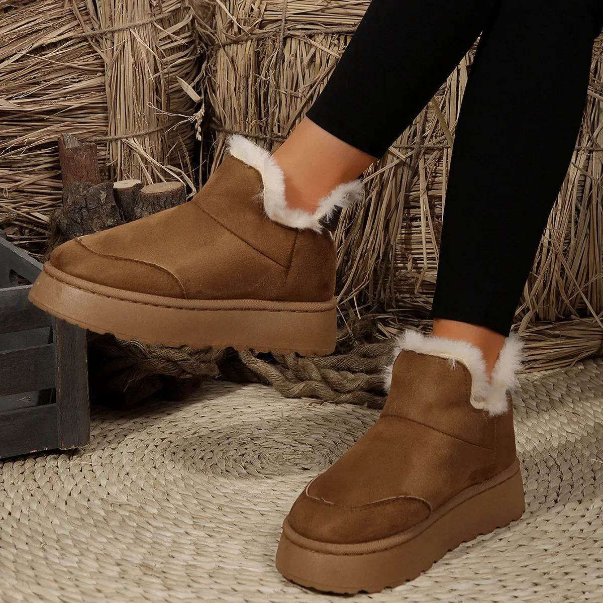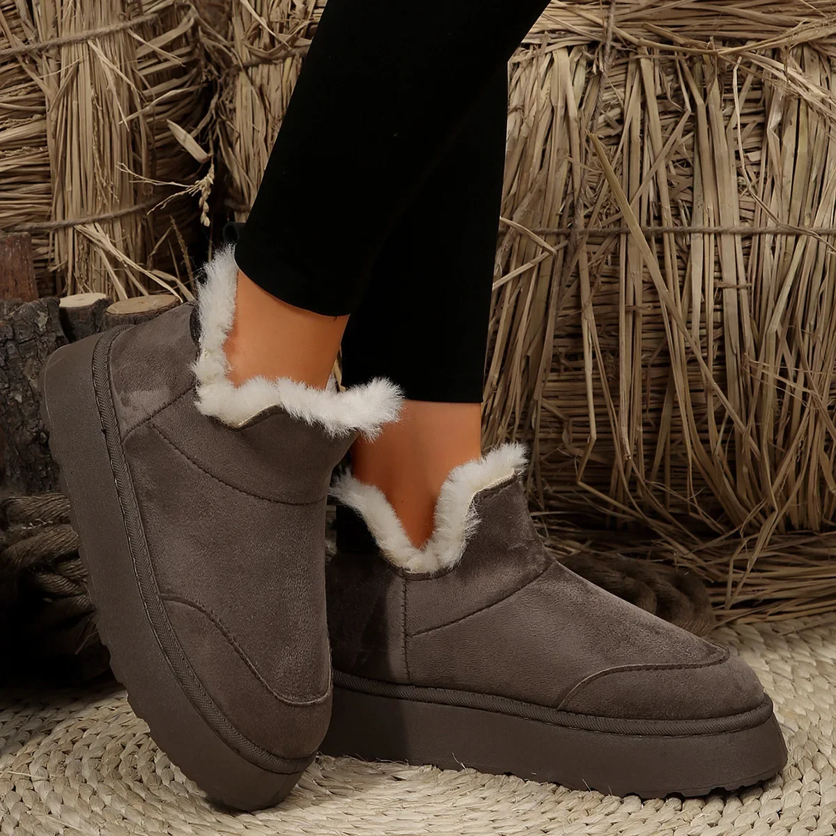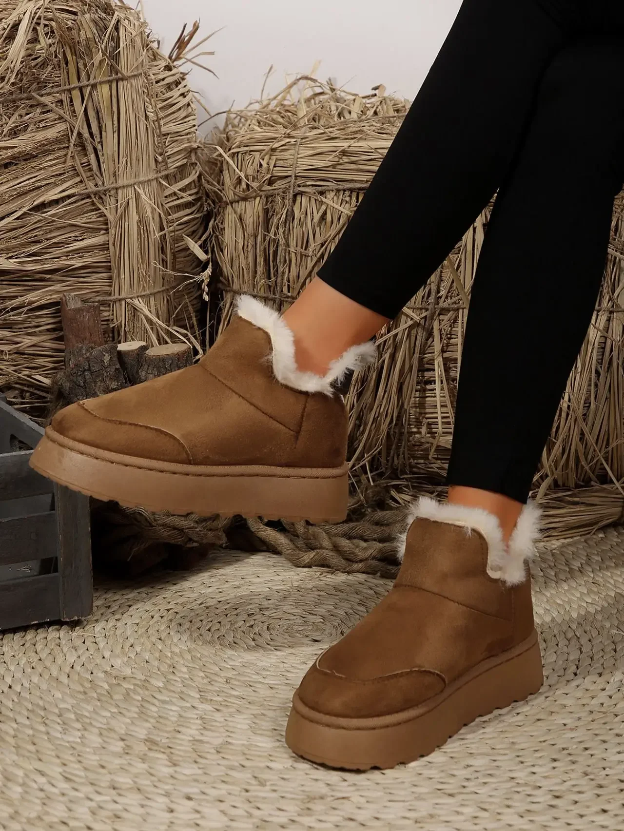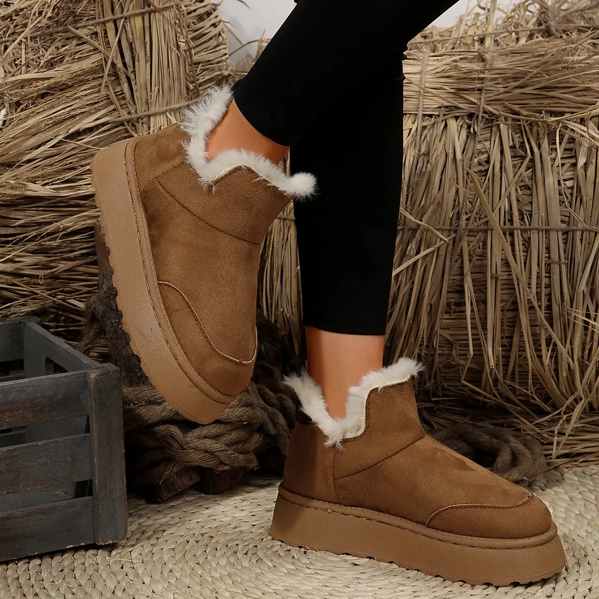 Botas de nieve con plataforma antideslizantes y cálidas para mujer, zapatos informales de algodón a la moda para invierno, botines aterciopelados de Color sólido para mujer