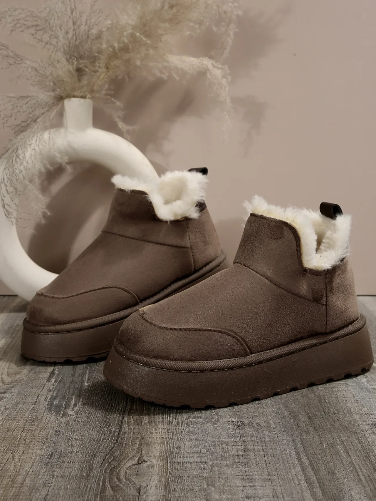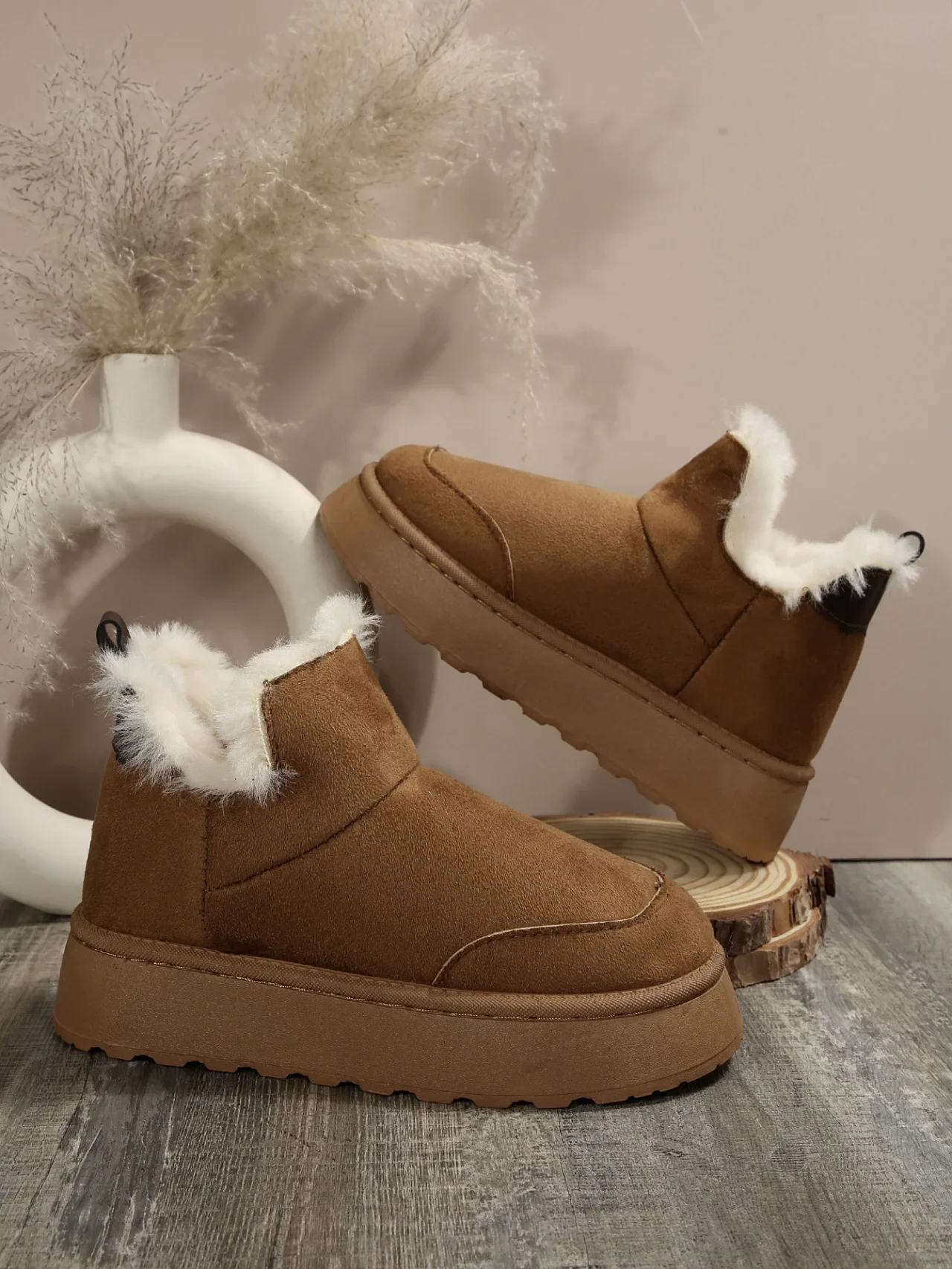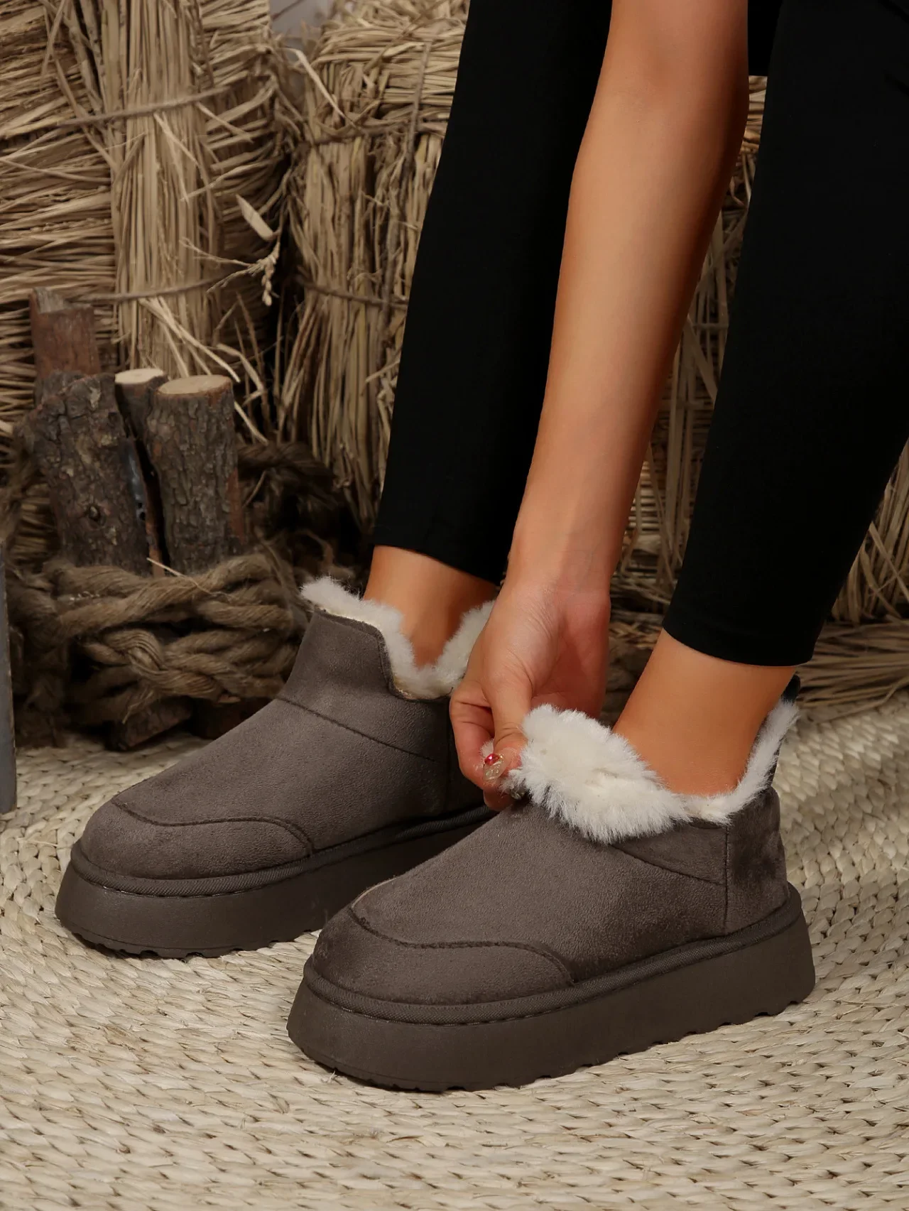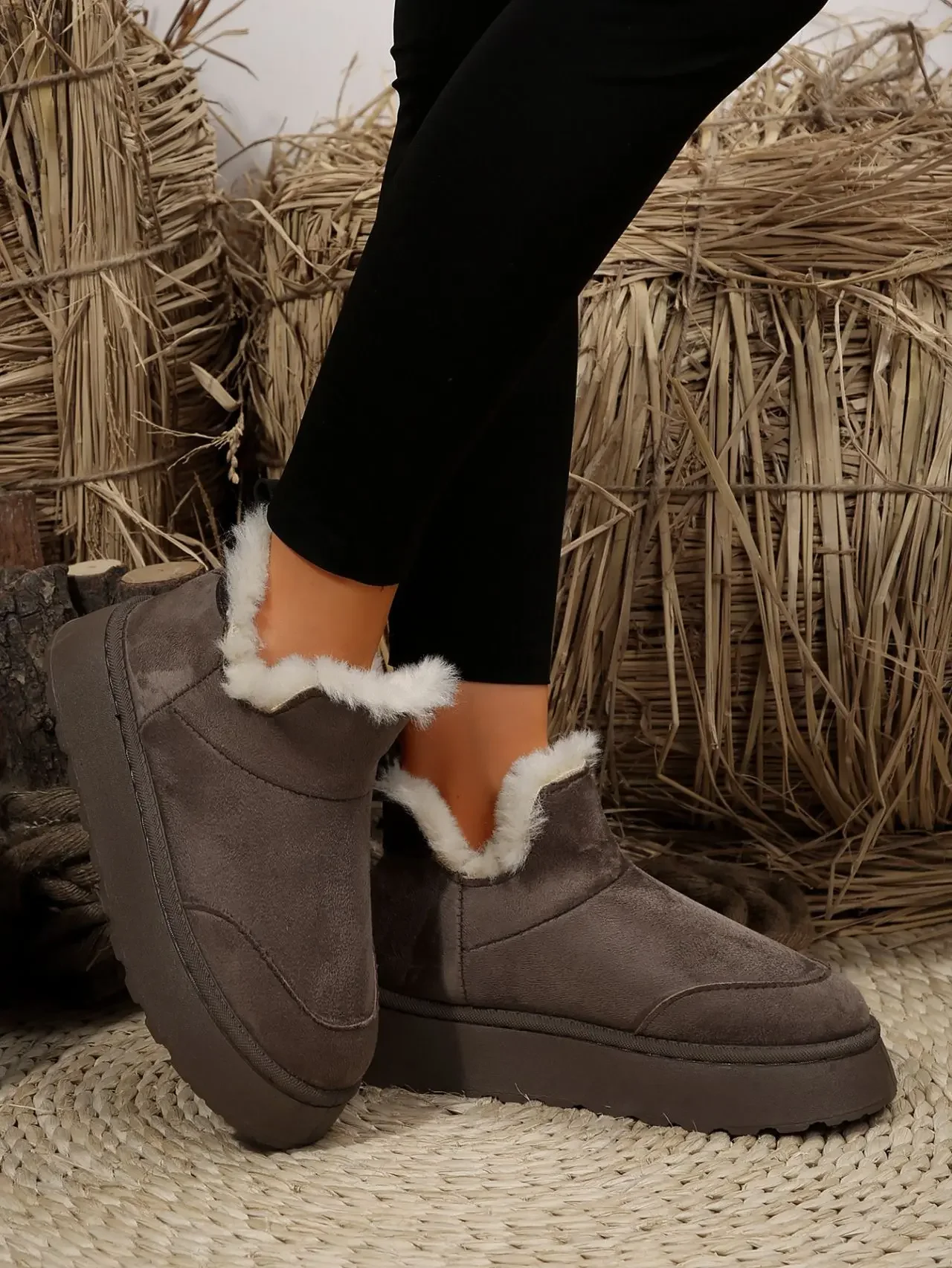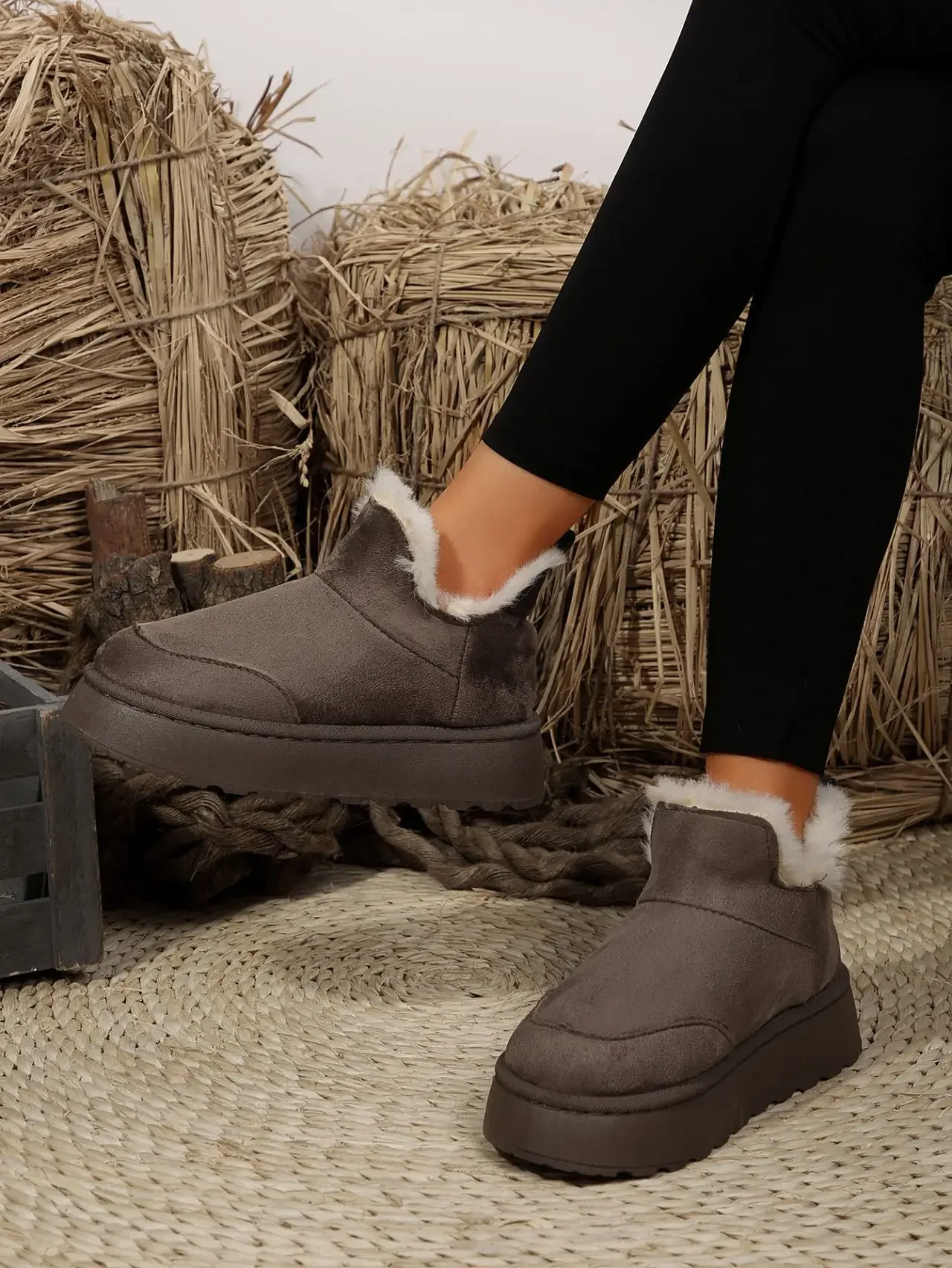 Botas de nieve con plataforma antideslizantes y cálidas para mujer, zapatos informales de algodón a la moda para invierno, botines aterciopelados de Color sólido para mujer