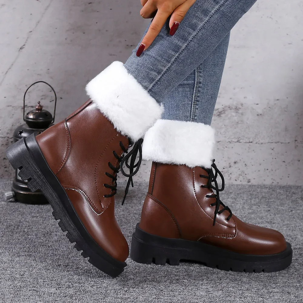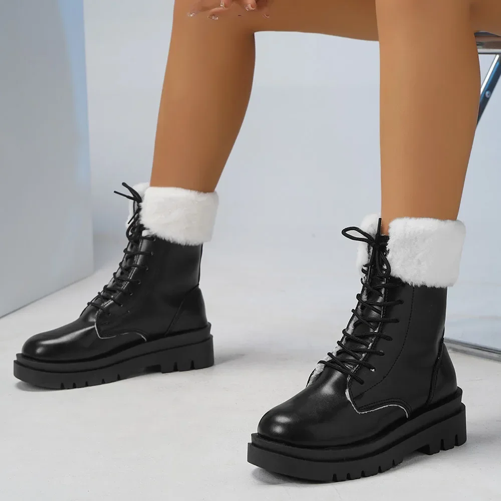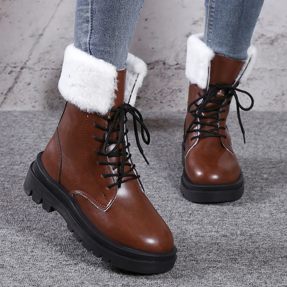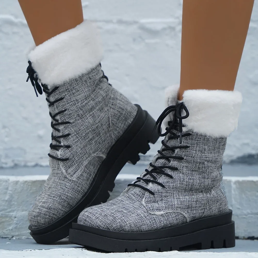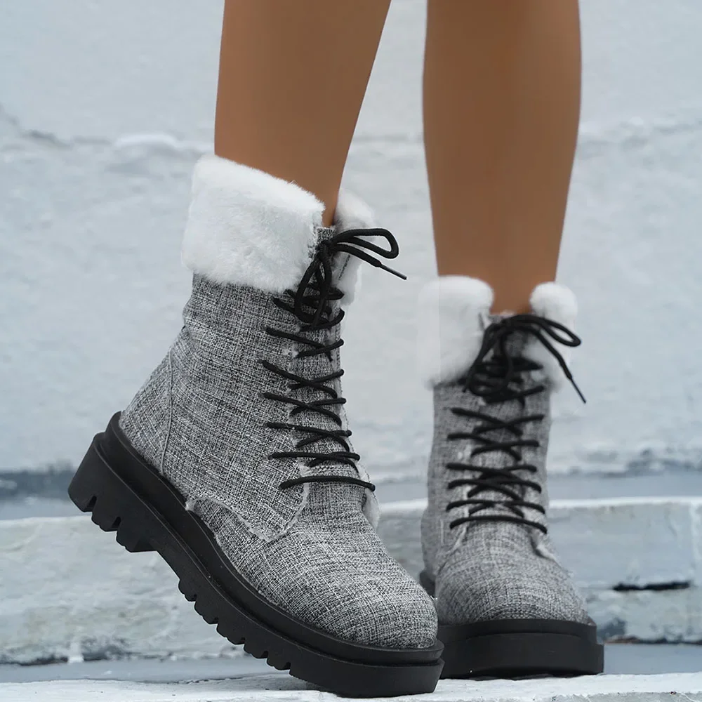 Botas de nieve con plataforma gruesa para mujer, botines para mantener el calor, cómodos para caminar, con cordones, talla grande 43, para invierno, 2024