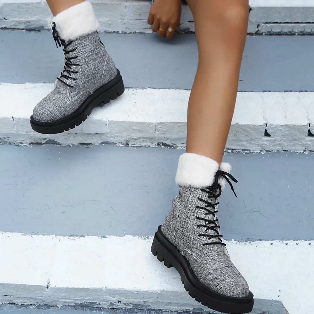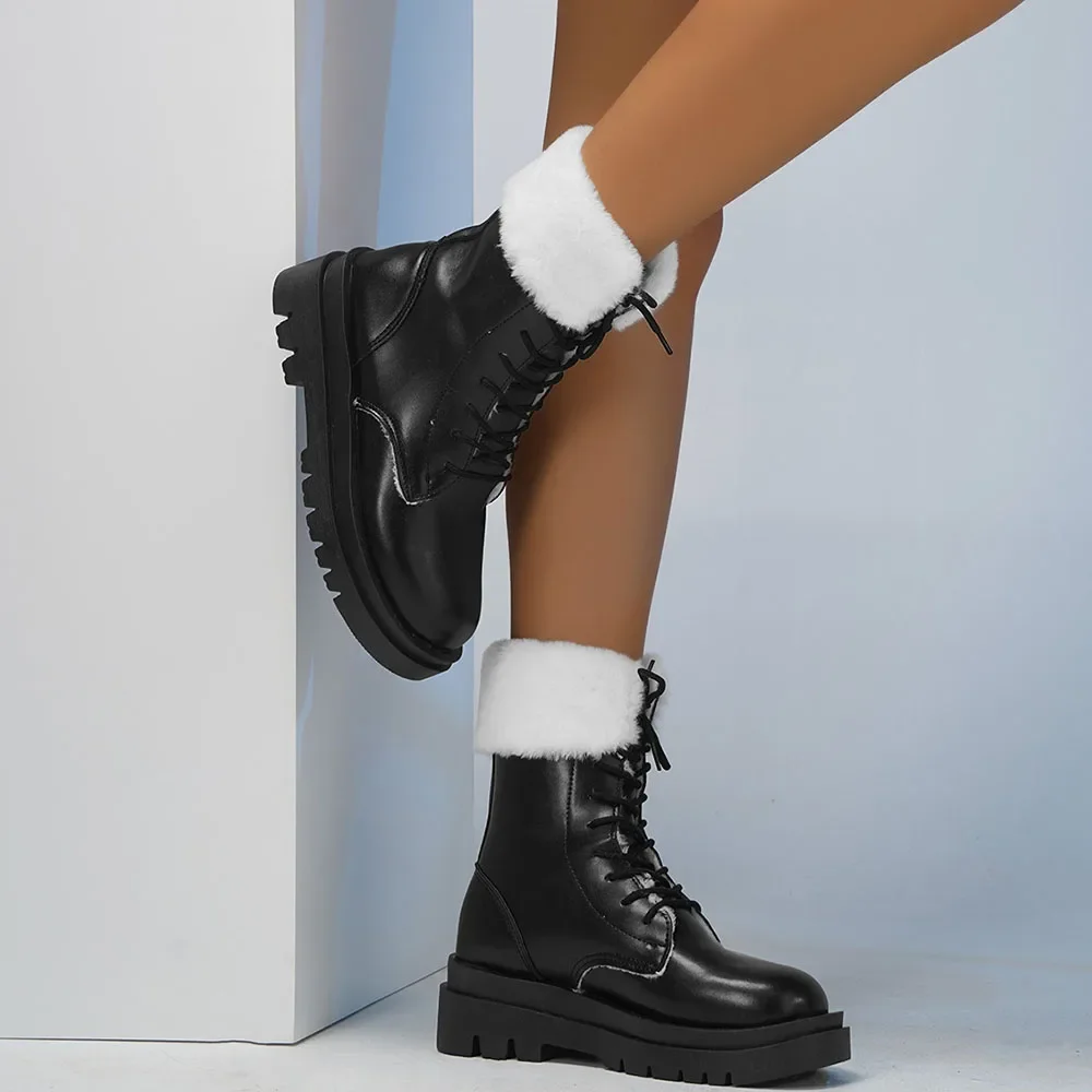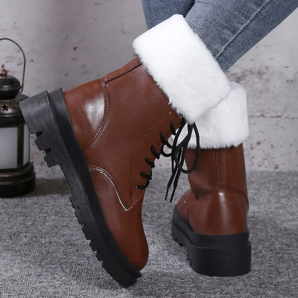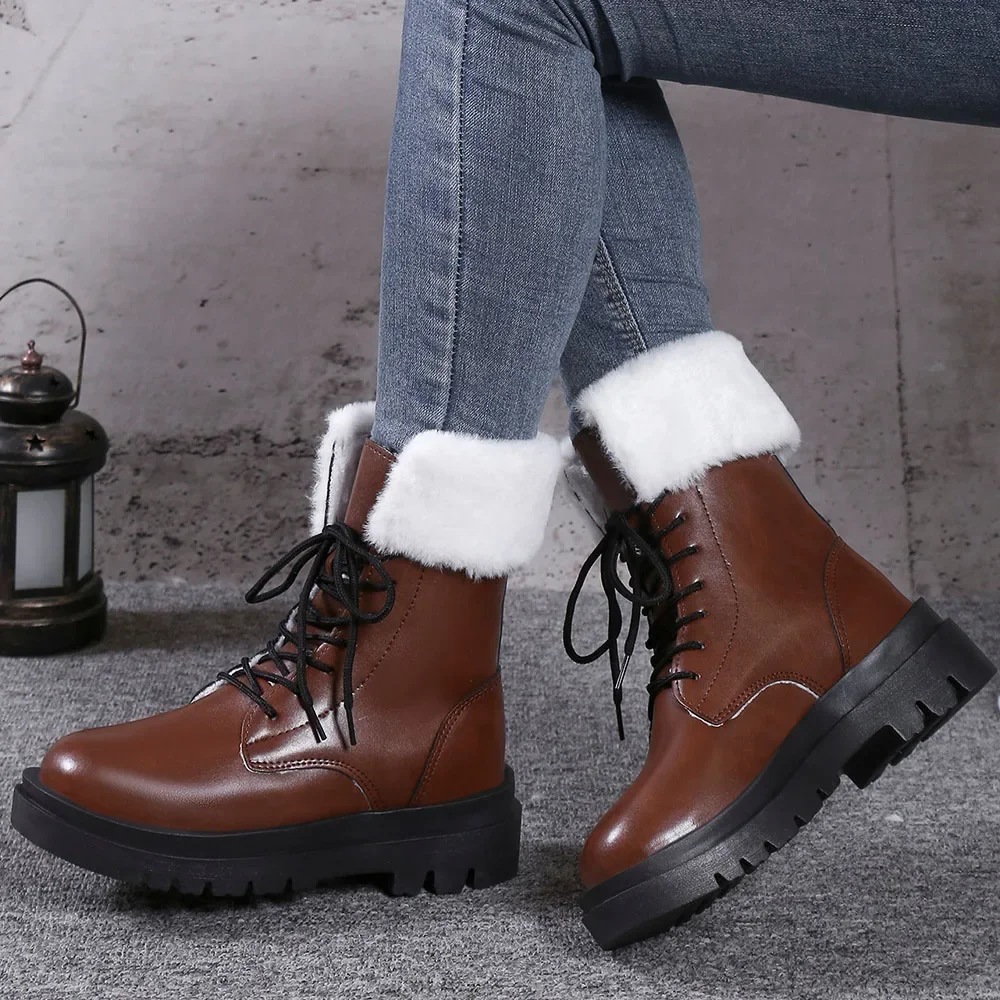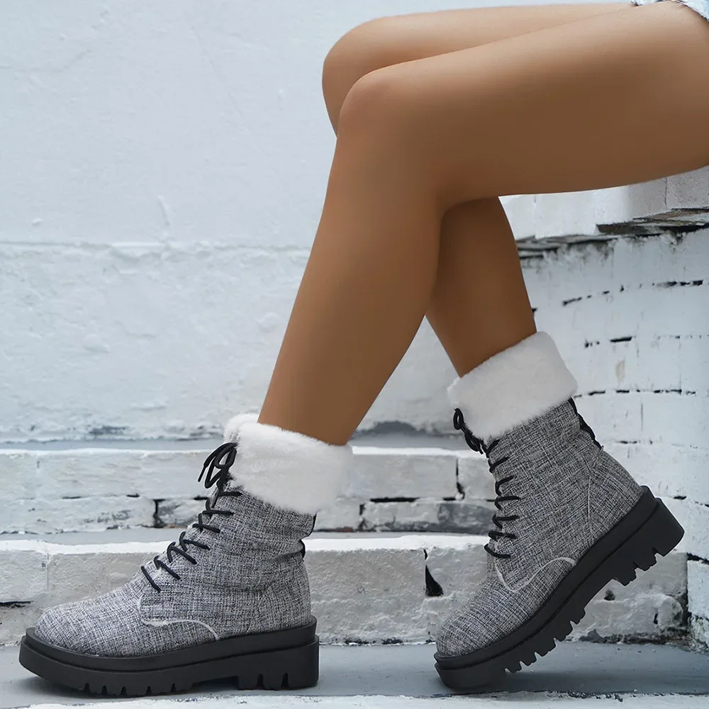 Botas de nieve con plataforma gruesa para mujer, botines para mantener el calor, cómodos para caminar, con cordones, talla grande 43, para invierno, 2024