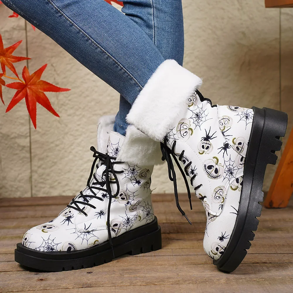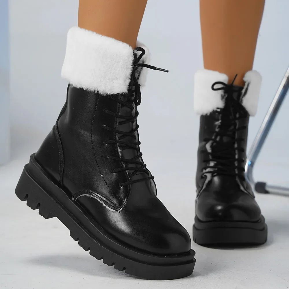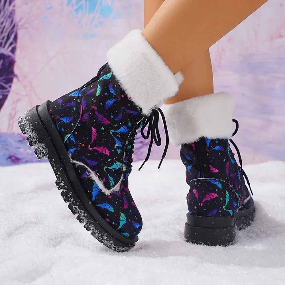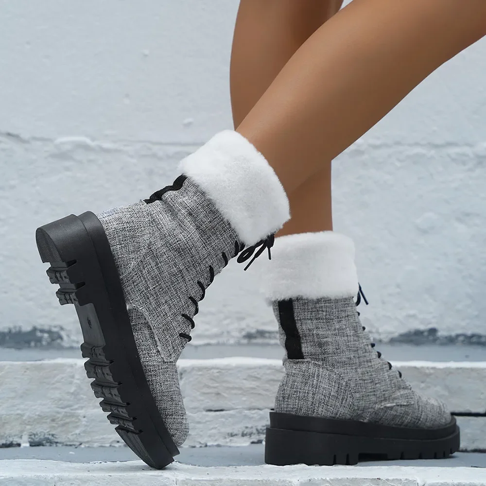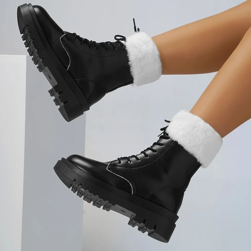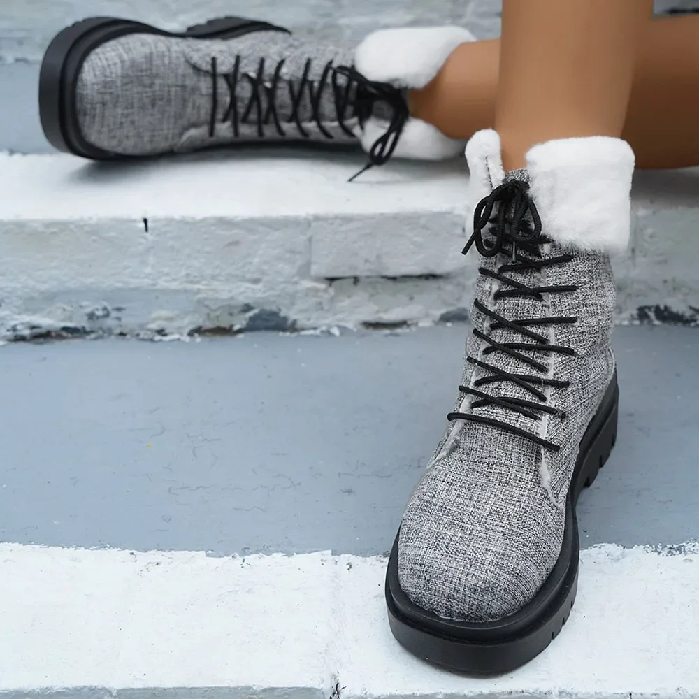 Botas de nieve con plataforma gruesa para mujer, botines para mantener el calor, cómodos para caminar, con cordones, talla grande 43, para invierno, 2024