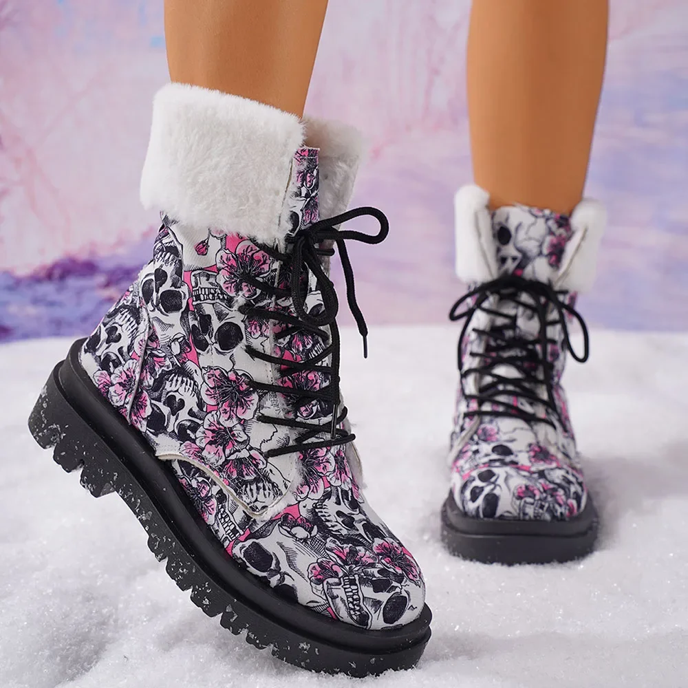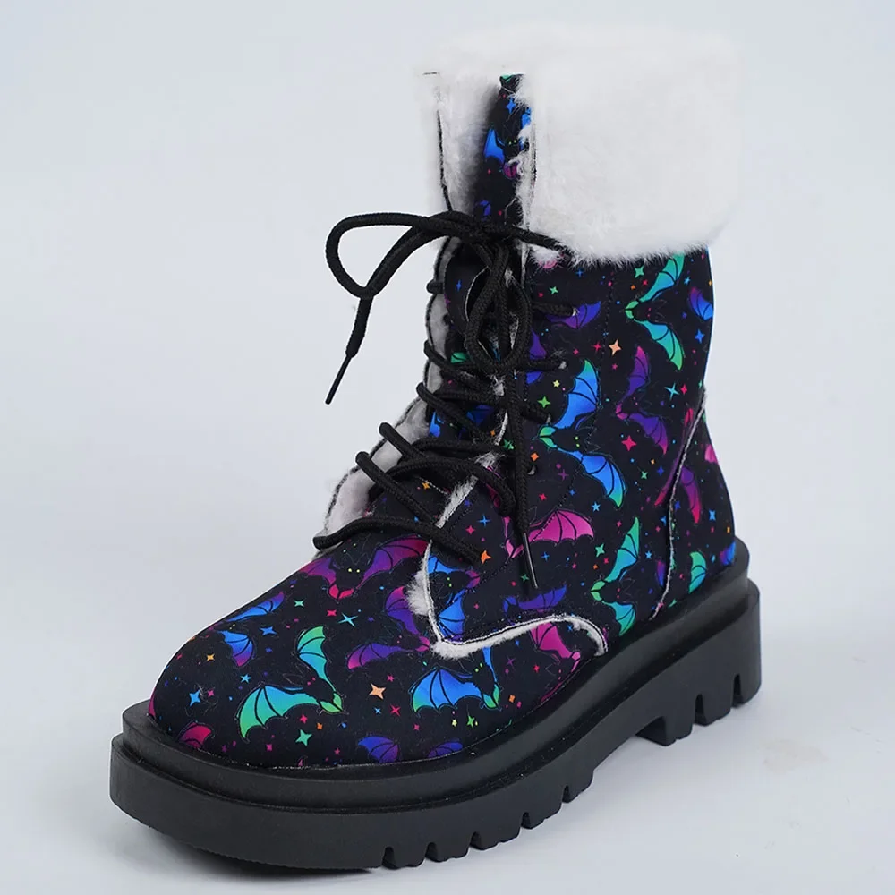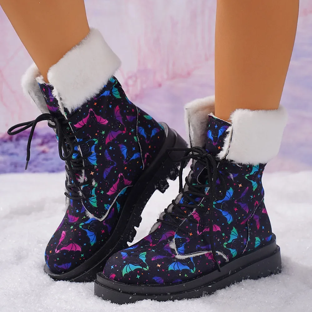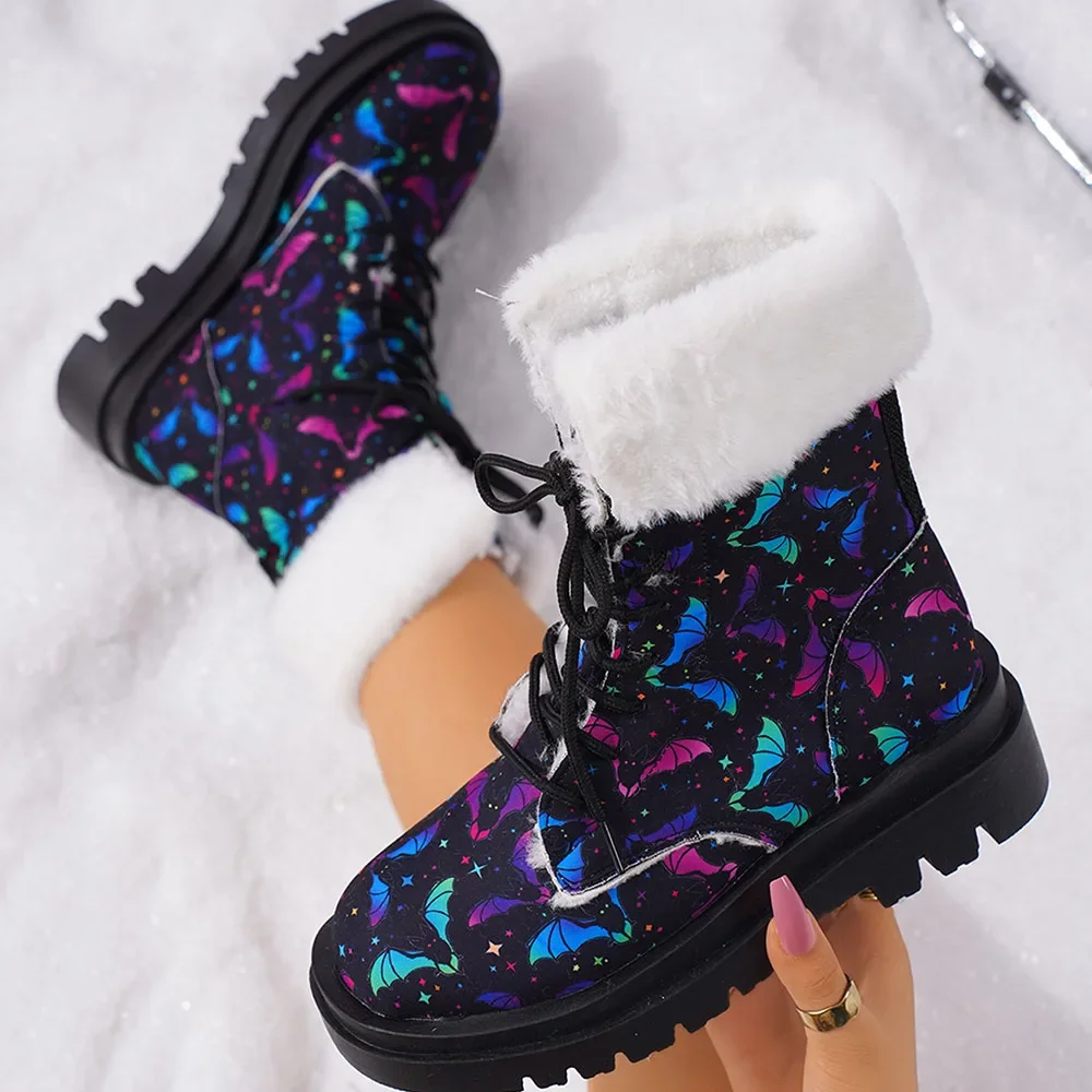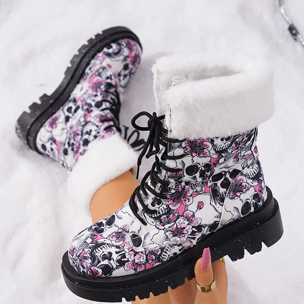 Botas de nieve con plataforma gruesa para mujer, botines para mantener el calor, cómodos para caminar, con cordones, talla grande 43, para invierno, 2024