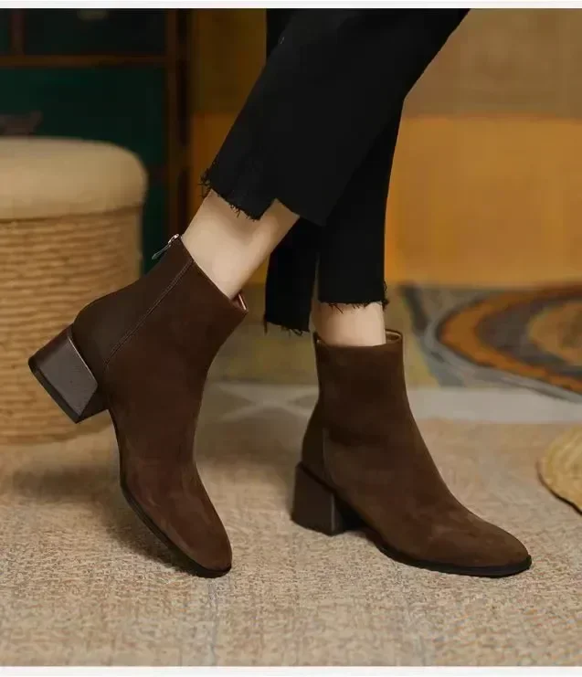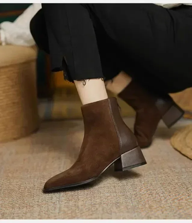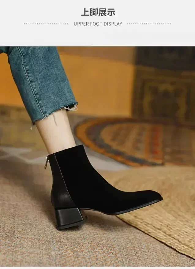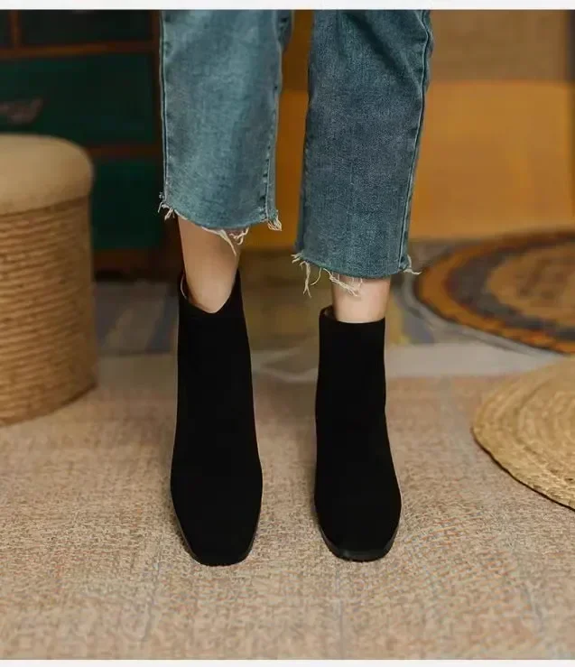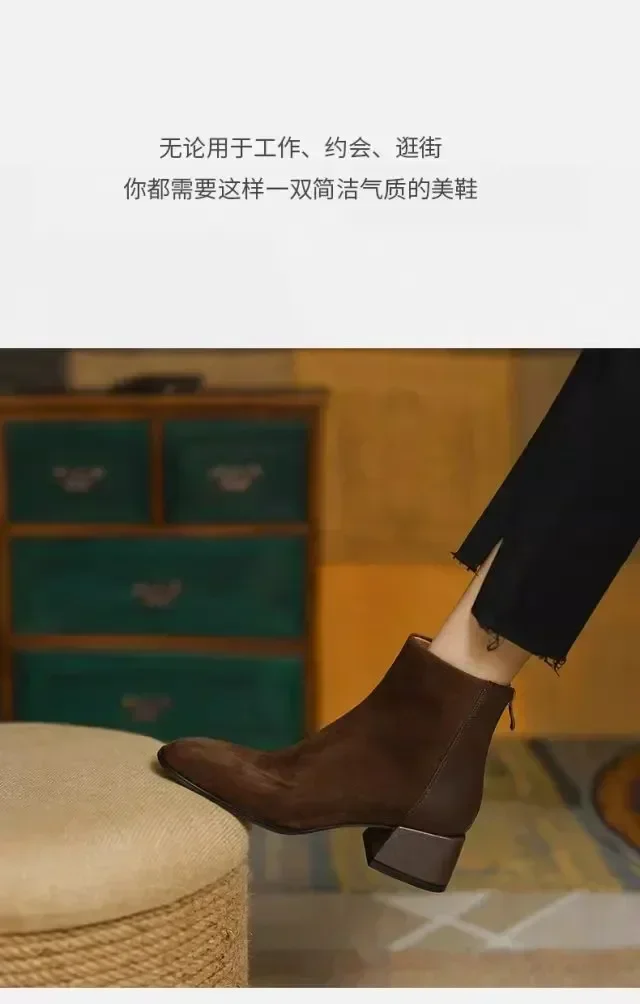 Botas de Otoño Invierno para mujer, Zapatos de tacón grueso con punta cuadrada, botines para mujer, Zapatos de gamuza con plataforma de invierno