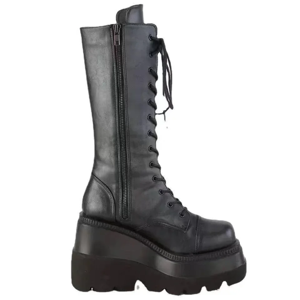 Botas de plataforma para mujer, botines militares de combate contra la lluvia, cuero corto negro, Rock, Punk, gótico, Lolita, Ofertas de liquidación, Invierno