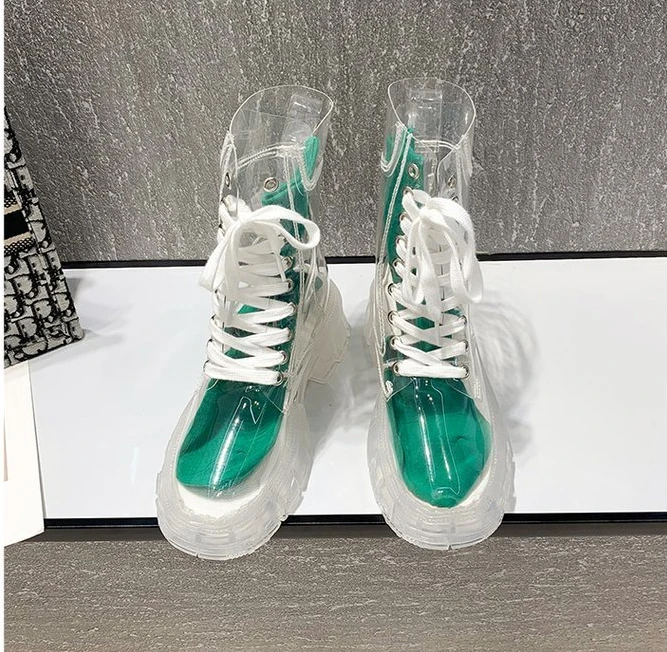 Botas de plataforma transparentes de Pu para mujer, botines impermeables, Botas de lluvia de fondo grueso transparente, zapatos sexys para mujer, moda 2022