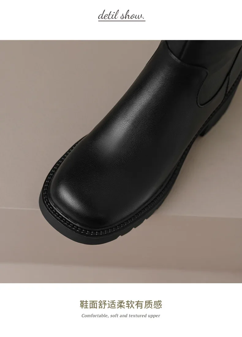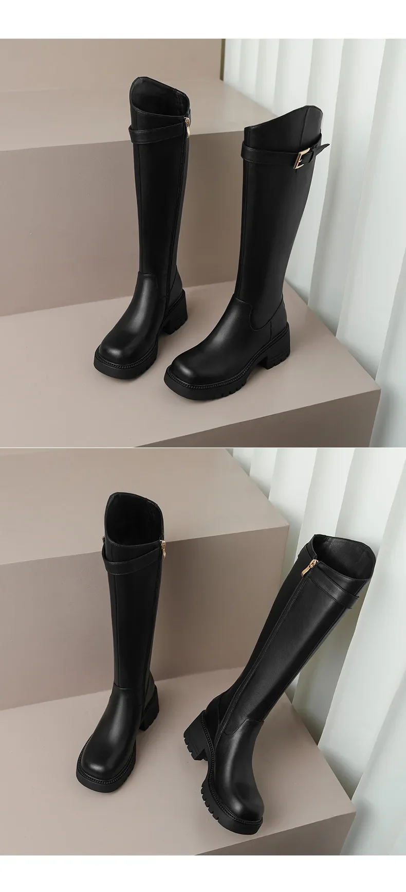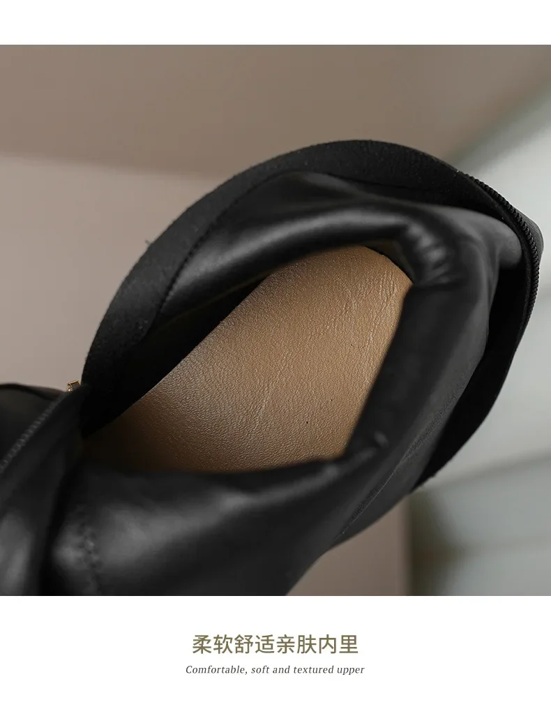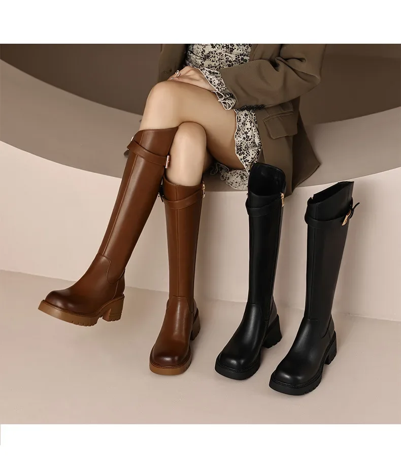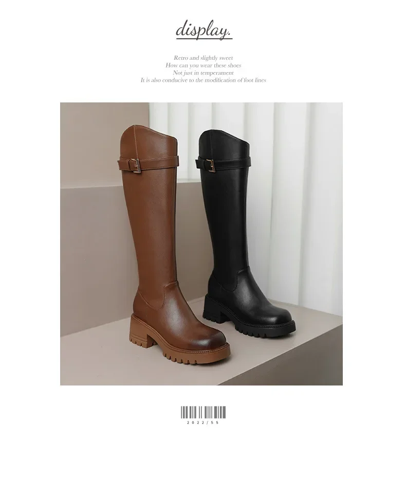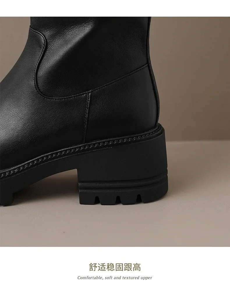 Botas hasta la rodilla para Mujer, botines clásicos cálidos con cremallera lateral, tacón grueso, ajustados, Otoño e Invierno