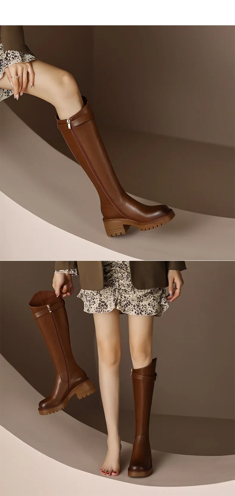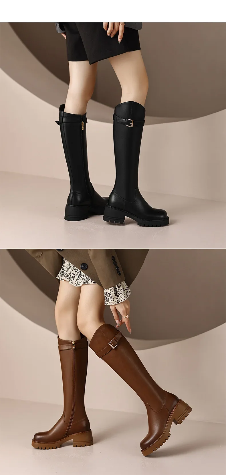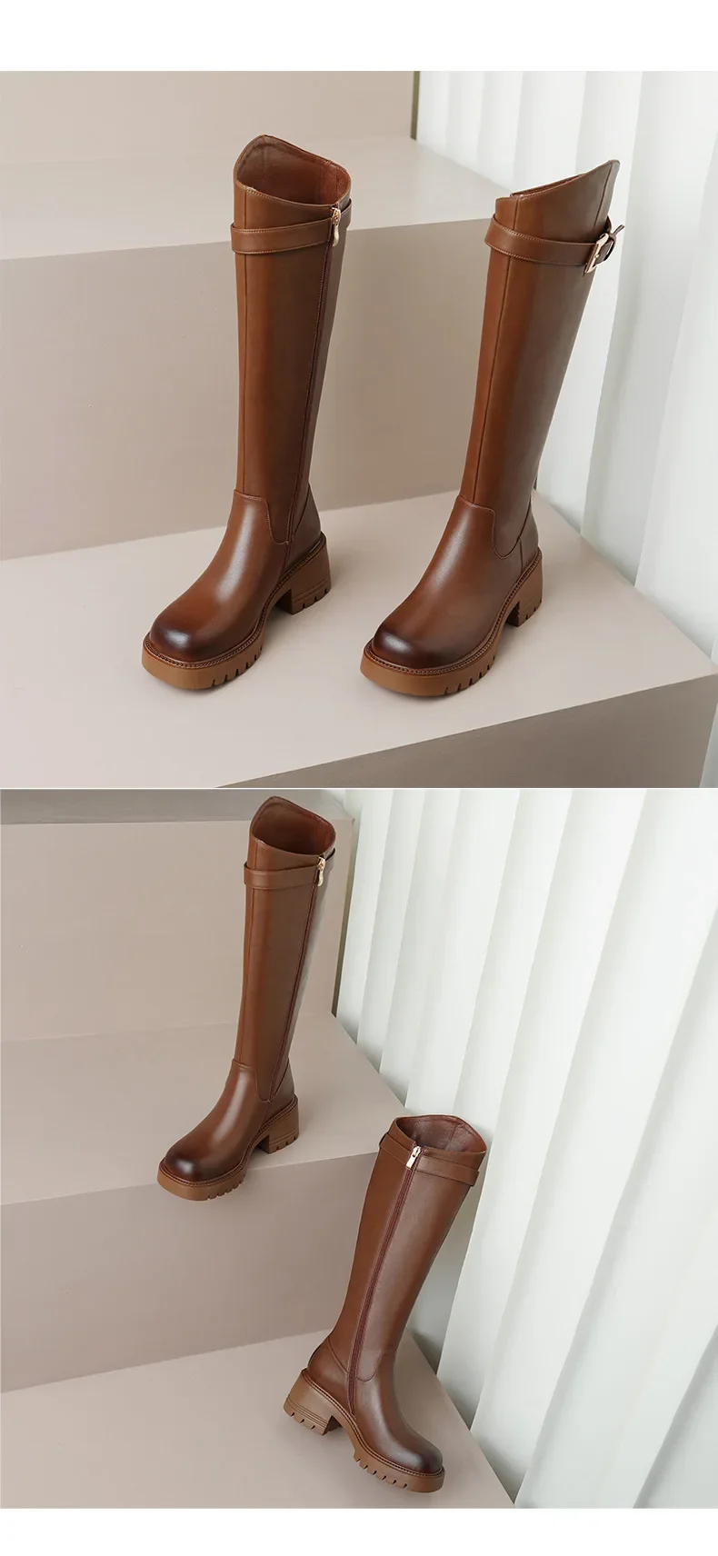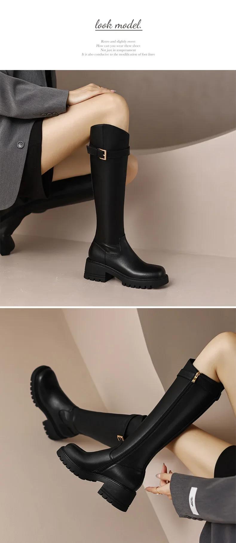 Botas hasta la rodilla para Mujer, botines clásicos cálidos con cremallera lateral, tacón grueso, ajustados, Otoño e Invierno