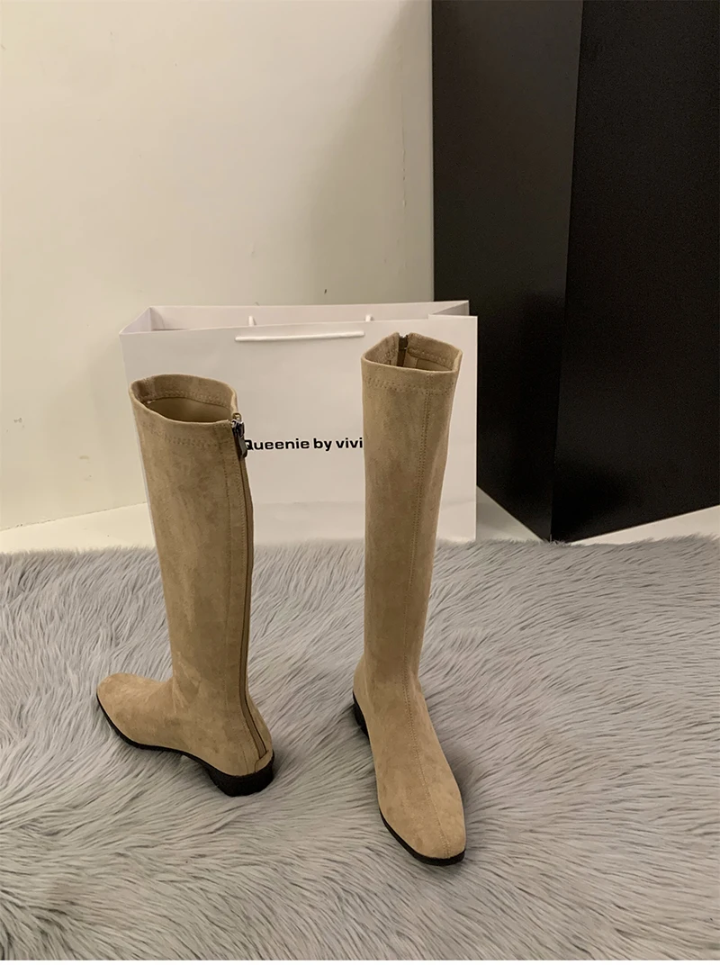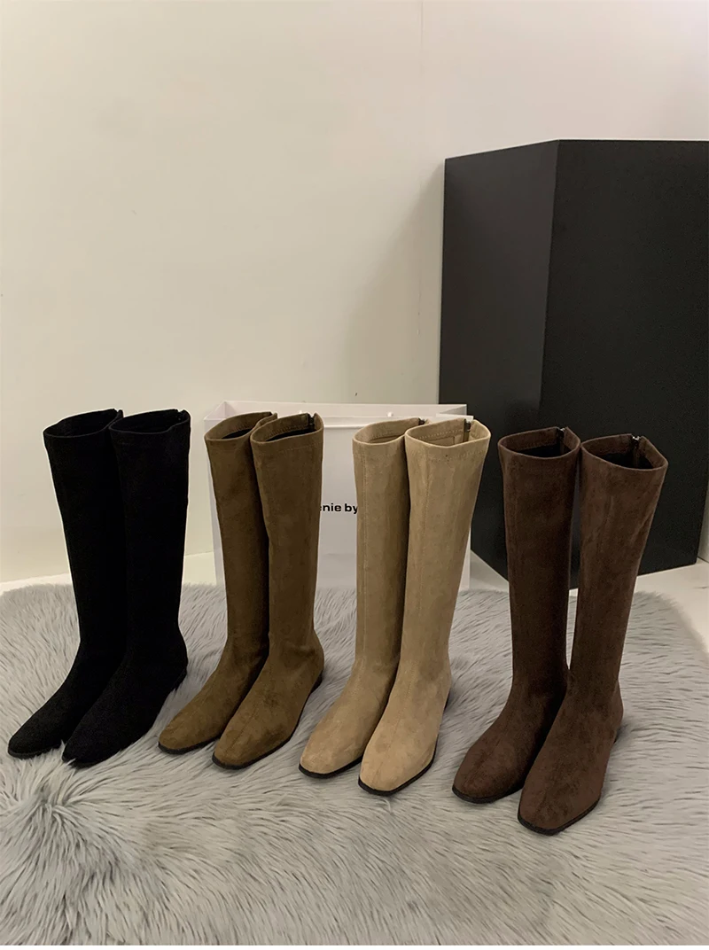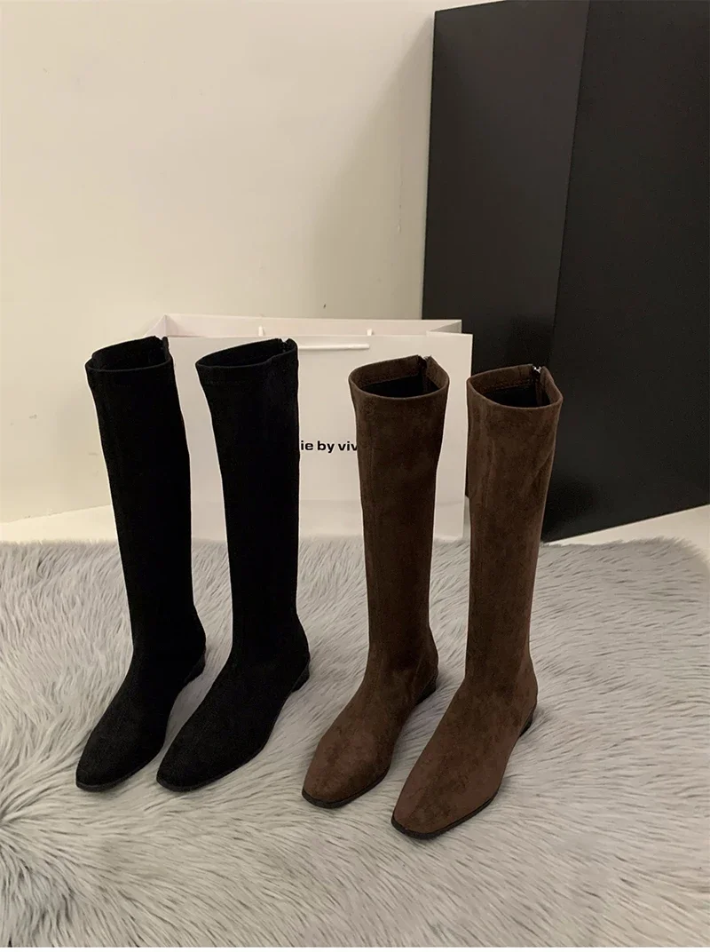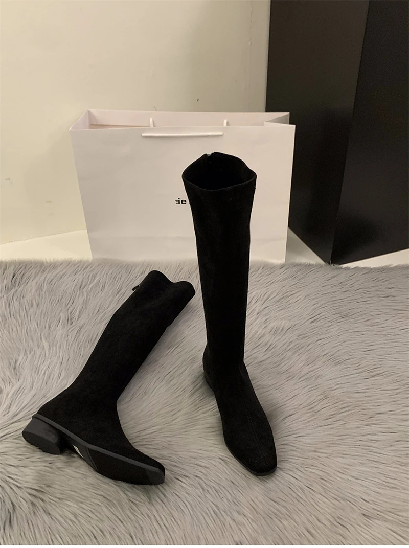 Botas hasta la rodilla Vintage De diseñador para Mujer, zapatos De tacón bajo cuadrados a la moda, Botas largas ajustadas y concisas para Mujer