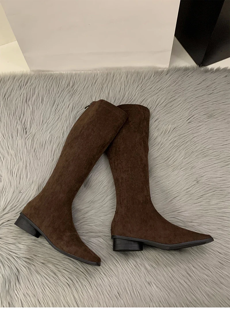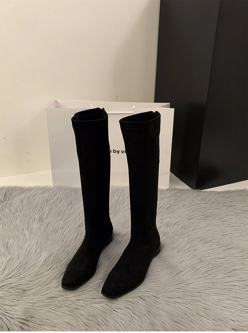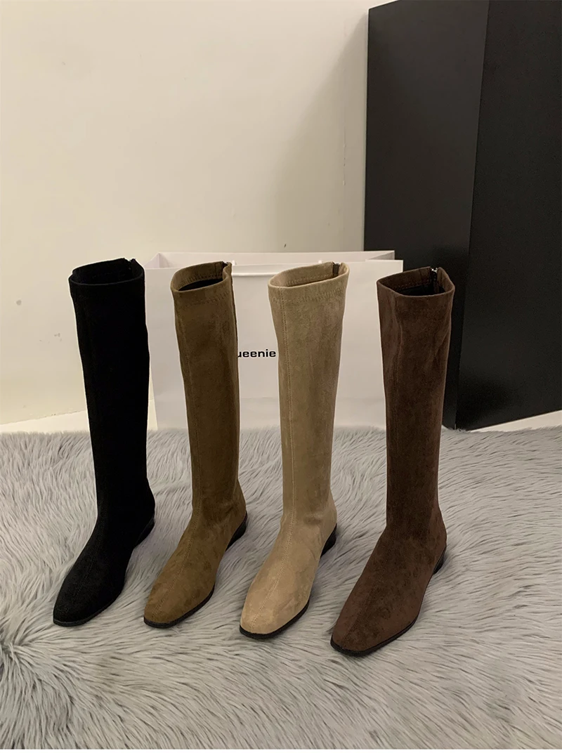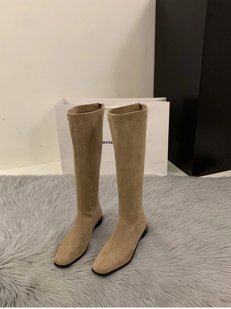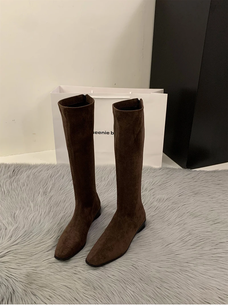 Botas hasta la rodilla Vintage De diseñador para Mujer, zapatos De tacón bajo cuadrados a la moda, Botas largas ajustadas y concisas para Mujer
