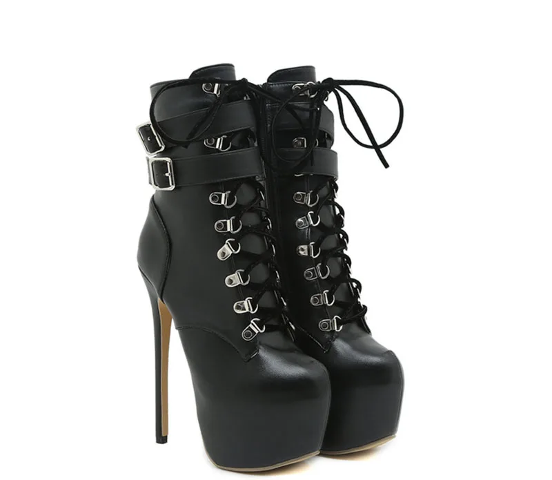 Botas sexis con plataforma y tacones extremadamente altos de 16,5 CM con correa y hebilla para mujer, zapatos de Stripper con cordones cruzados y punta redonda para fiesta y Club