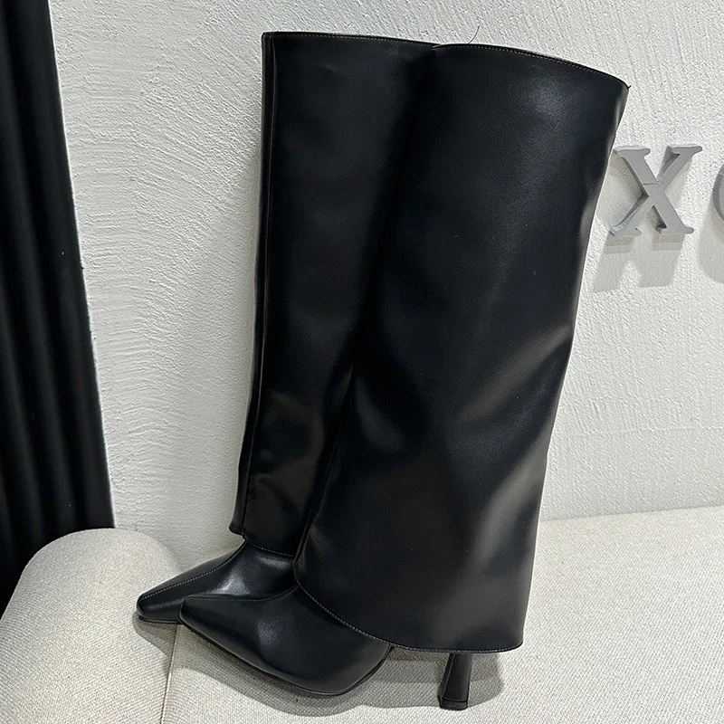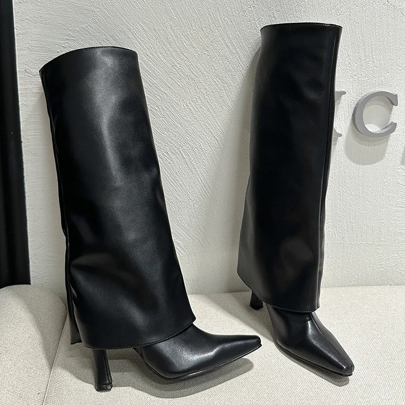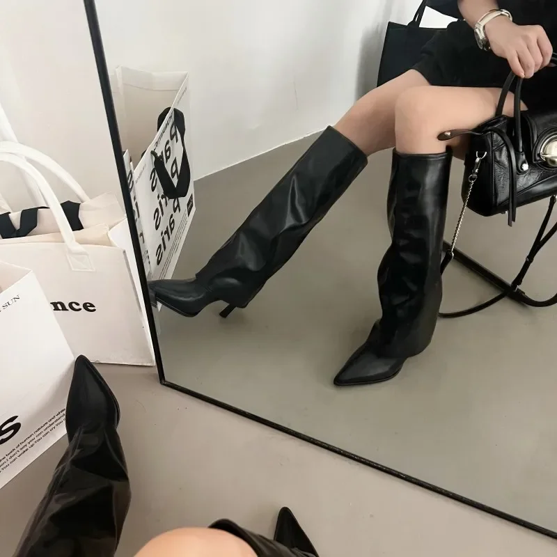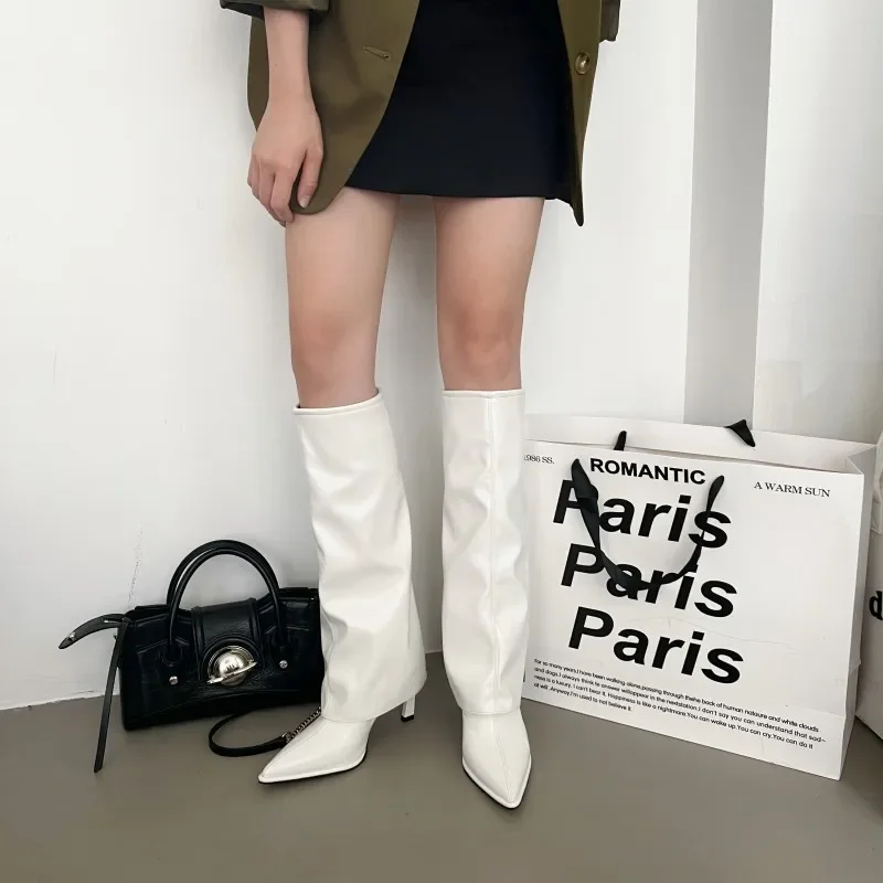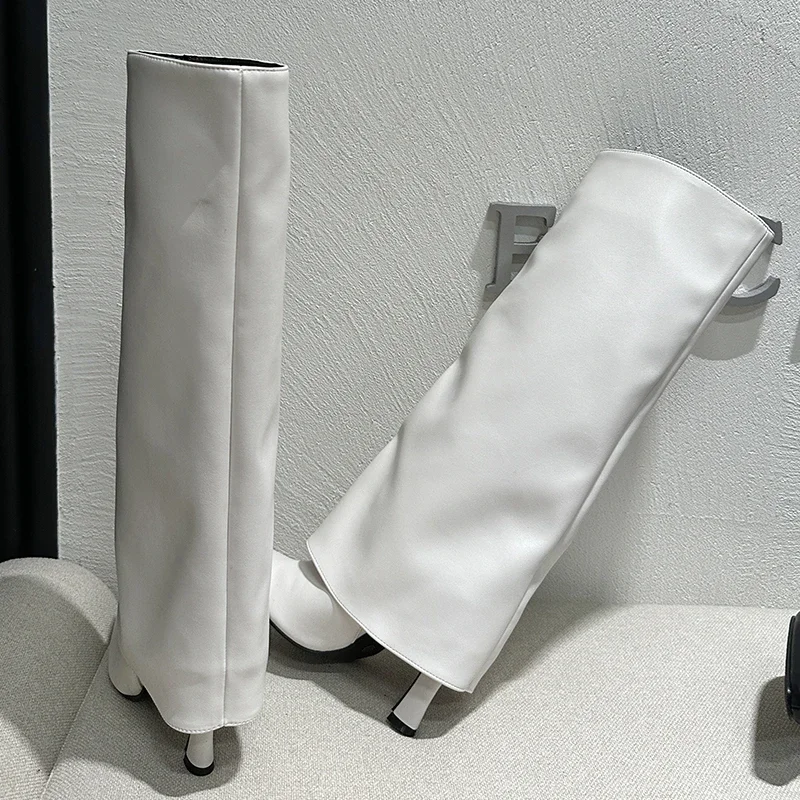 Botas de tacón alto hasta la rodilla para mujer, zapatos de tacón alto sin cordones, modernos, estilo occidental, otoño y primavera, novedad de 2024