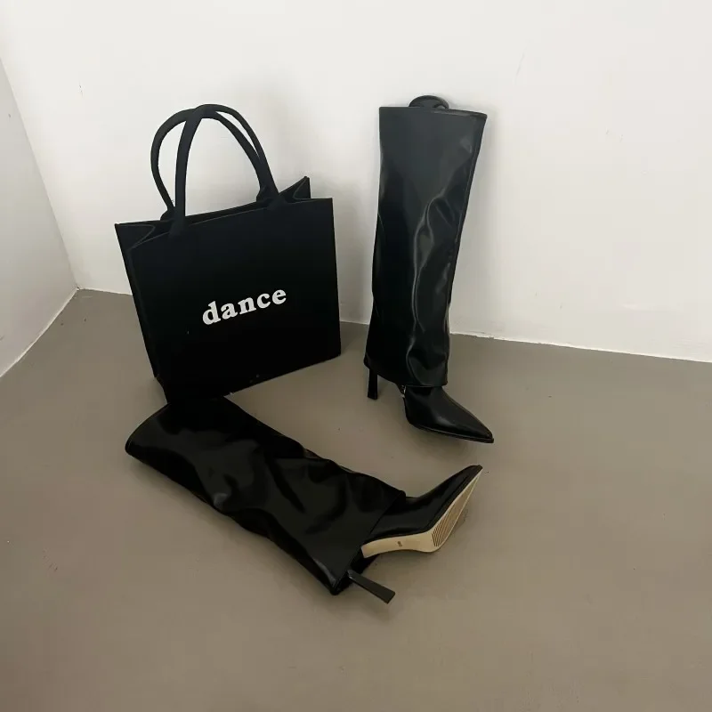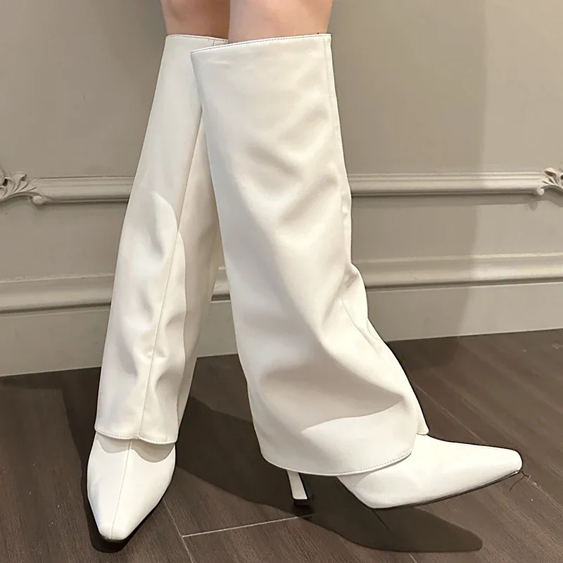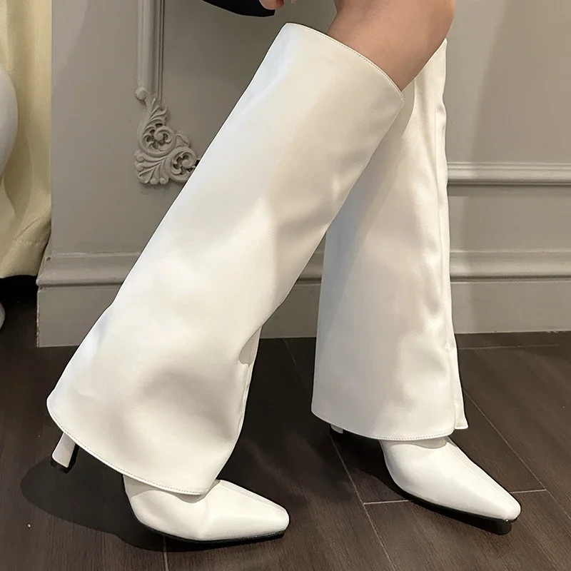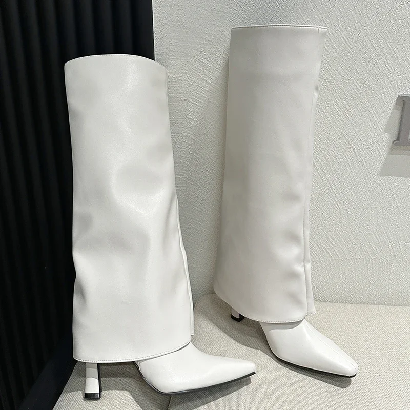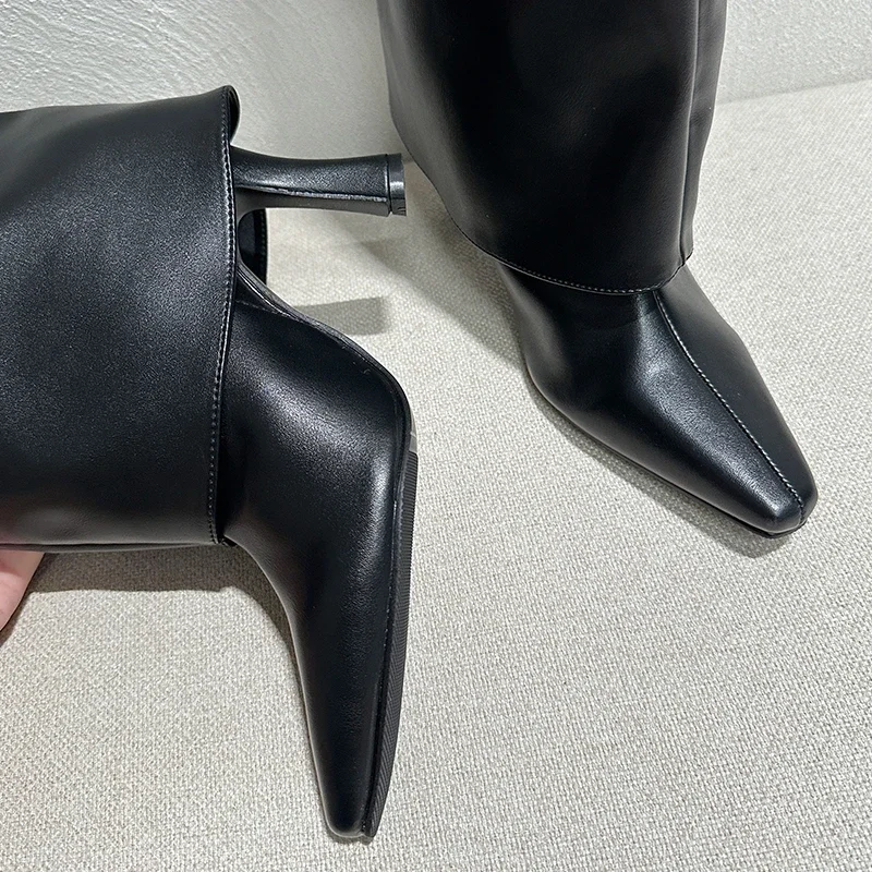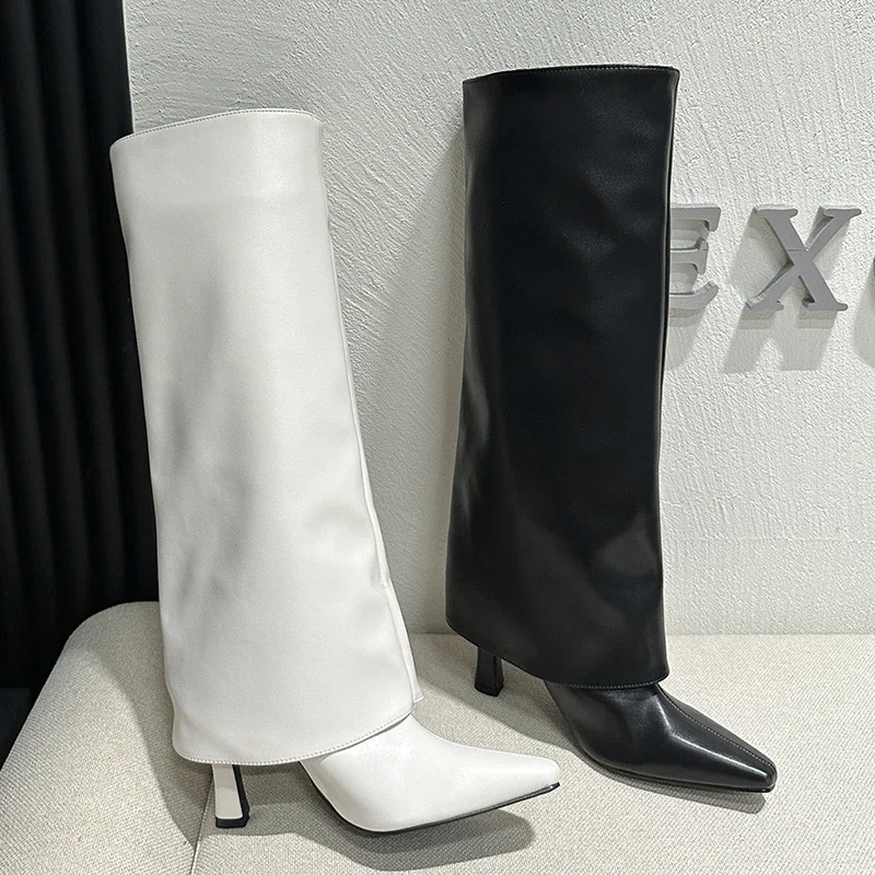 Botas de tacón alto hasta la rodilla para mujer, zapatos de tacón alto sin cordones, modernos, estilo occidental, otoño y primavera, novedad de 2024