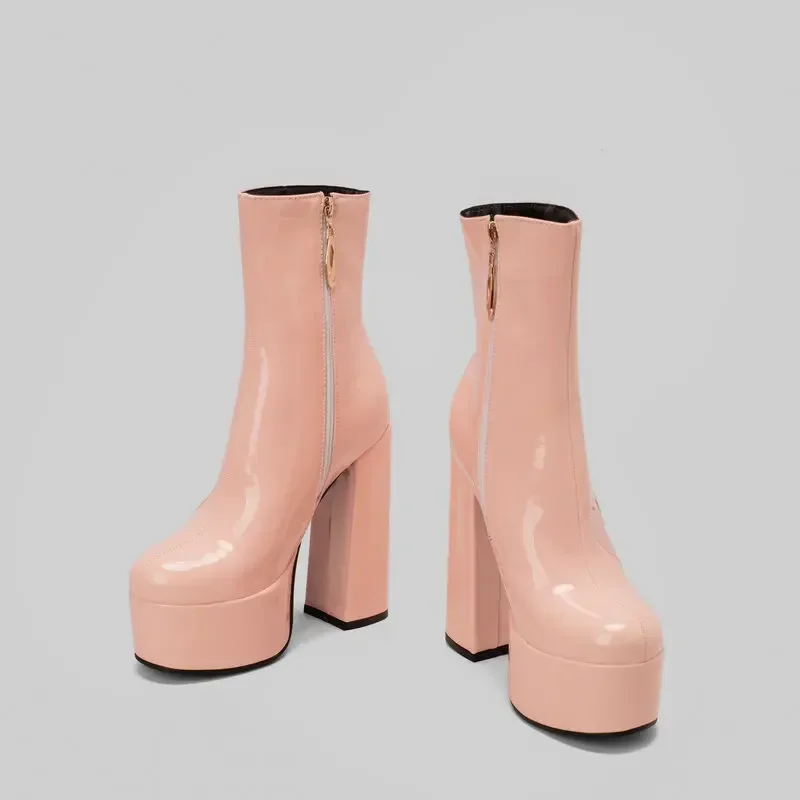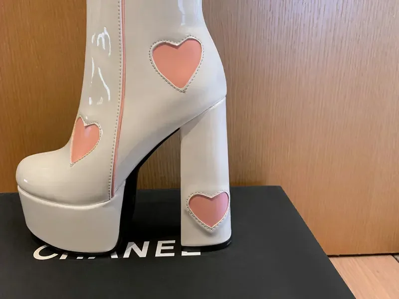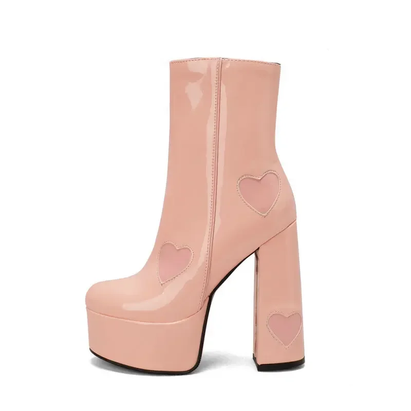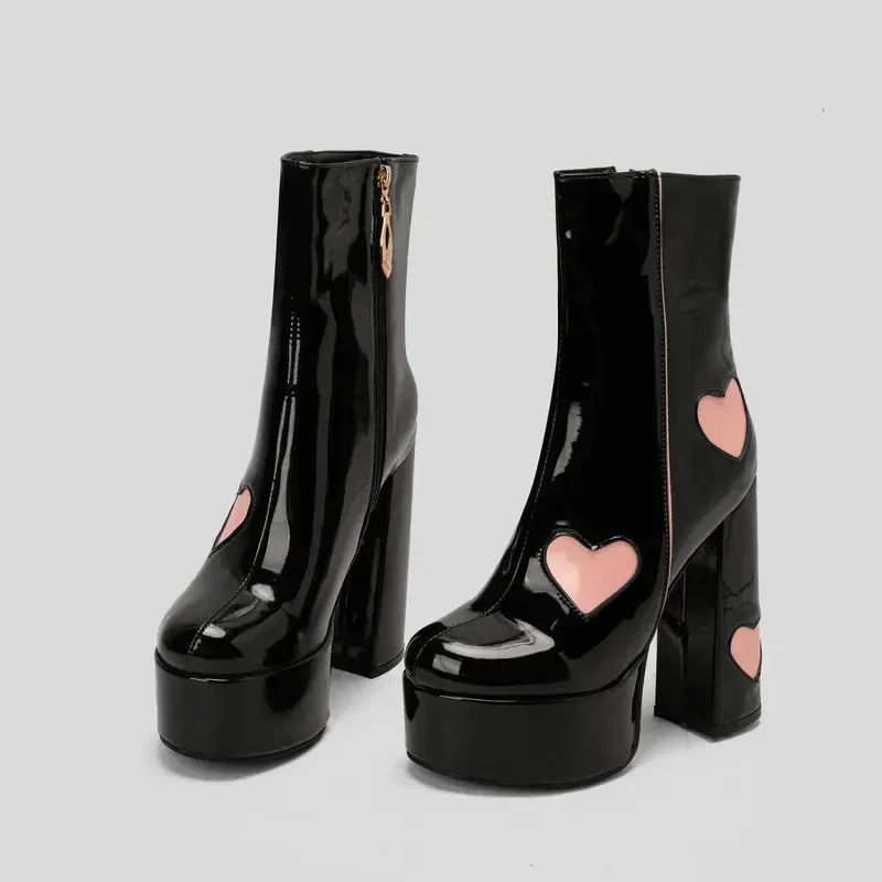 Botas de tacón alto con plataforma para mujer, botines con estampado de corazón grueso, moda Vintage, impermeables, cómodas, de estilo moderno, 2024