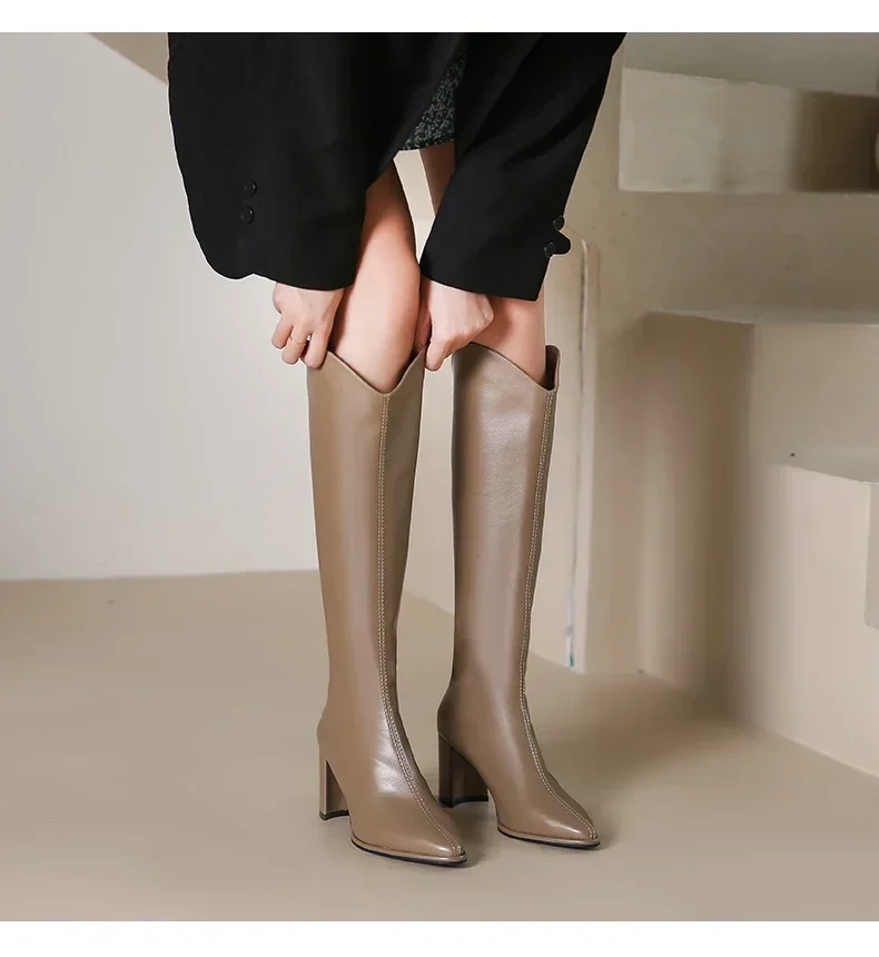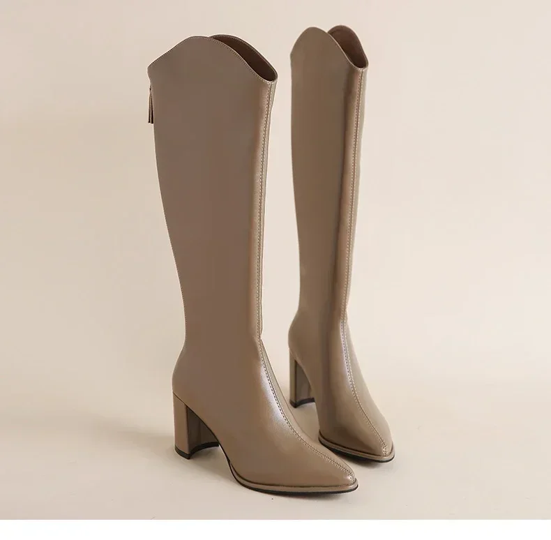 Botas de talla grande 34-43 nuevas para mujer, tacones altos gruesos con cremallera, tacones altos simples y gruesos, Botas hasta la rodilla para Otoño e Invierno