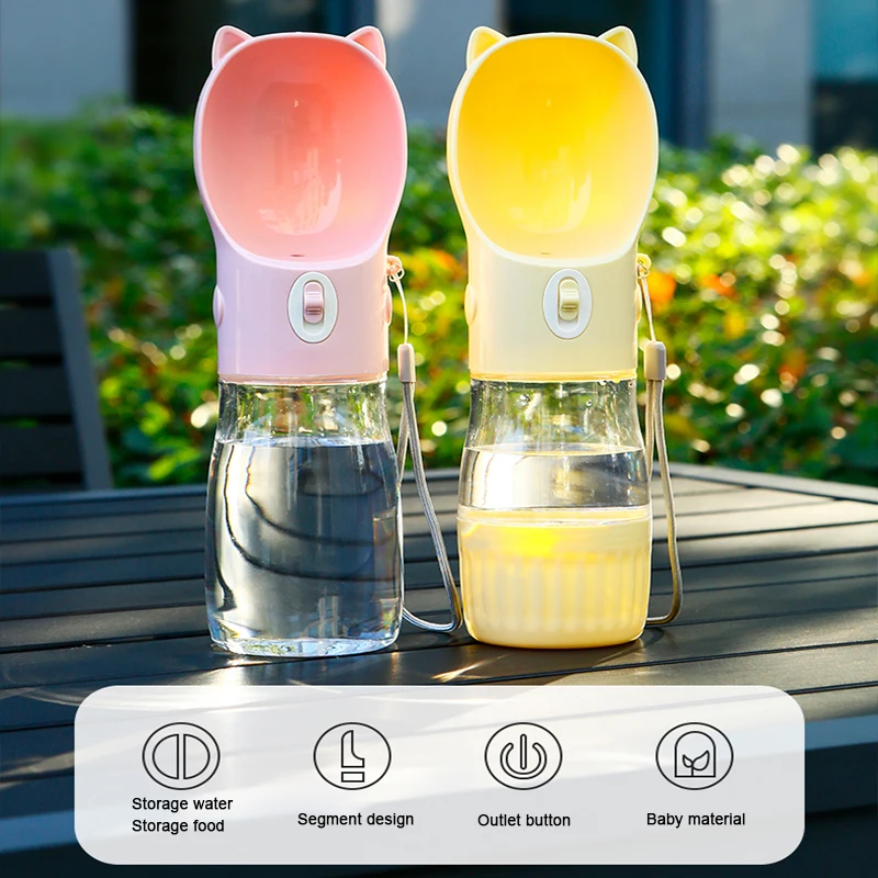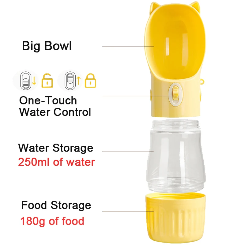 Botella de agua 2 en 1 para perros con recipiente para comida, cuenco portátil para beber para mascotas al aire libre para perros pequeños y grandes, taza alimentadora para cachorros y gatos, Yorkshire
