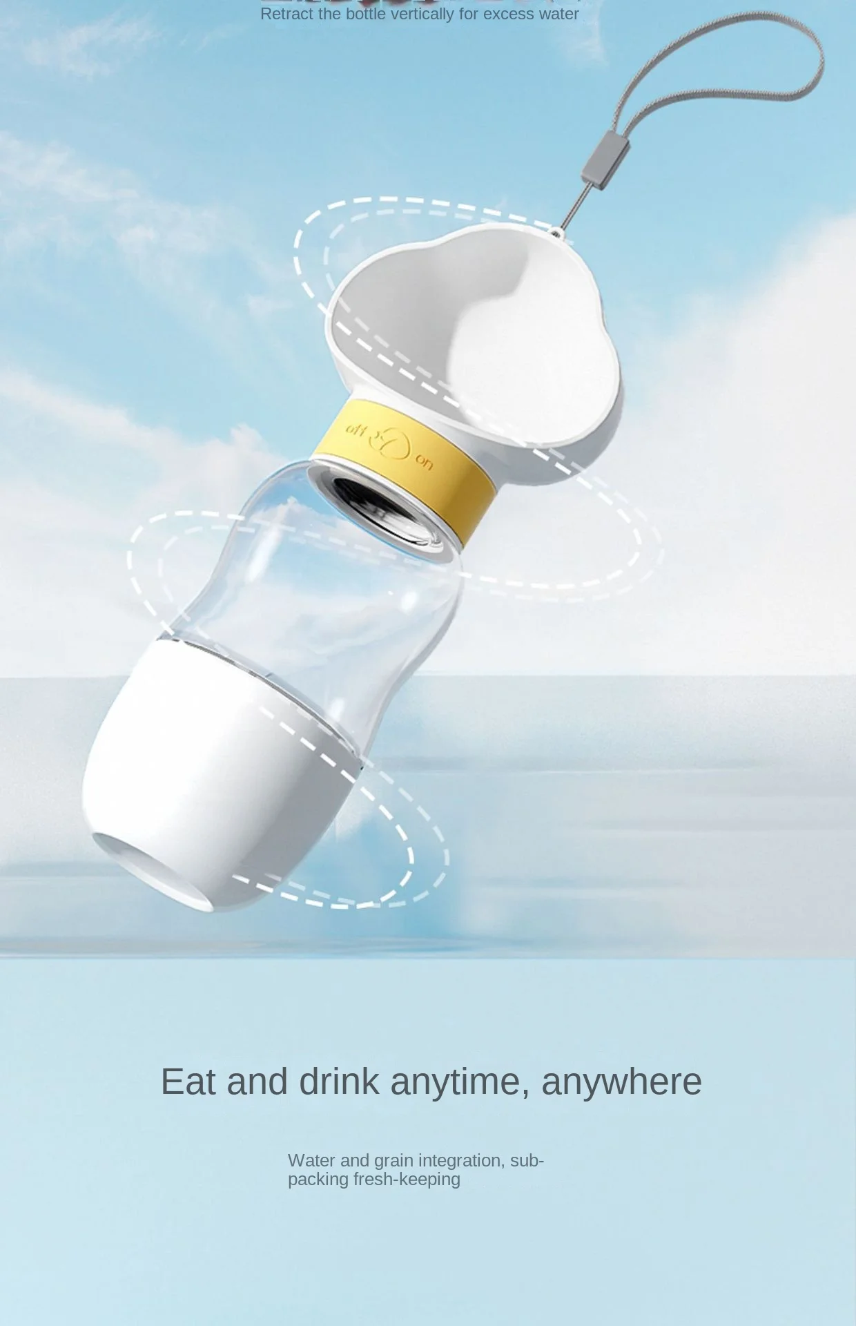 Botella de agua portátil 2 en 1 de material de calidad alimentaria para perros y gatos de viaje con dispensador de alimentos