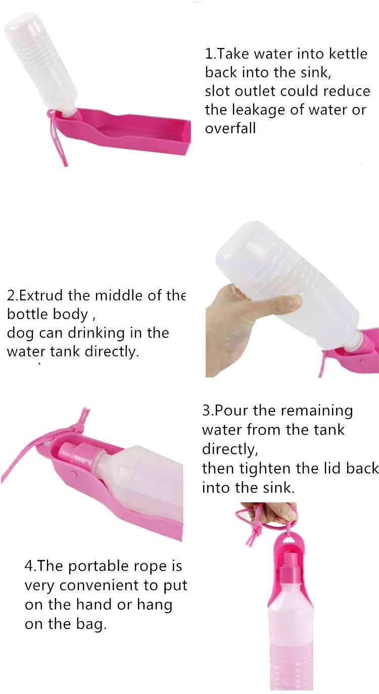 Botella de agua deportiva para perro y gato, dispensador automático de agua lenta, tazón de viaje de plástico, 250/500ML