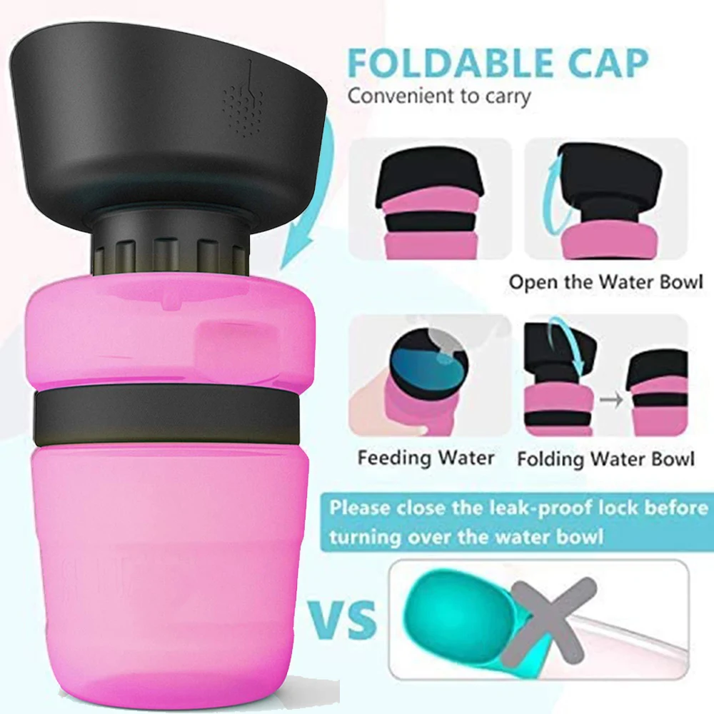 Botella de agua para perros de 500ML, tazón plegable a prueba de fugas, taza de comida de agua, tazón alimentador para mascotas, tazón portátil de gran capacidad para beber al aire libre para mascotas